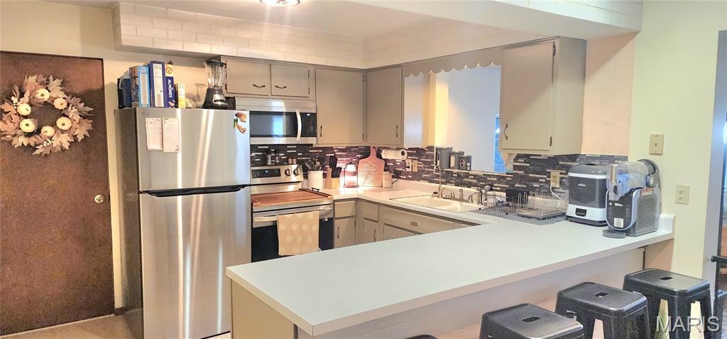 Welcome to your new ranch-style home! So much to talk about in this beauty! Kitchen has been updated with all new appliances and made more functional; new roof in 2024; sunroom in back has been updated and new flooring laid. The wood-burning fireplace in the big dining room is a great focal point! 2 large bedrooms, a big living room, and full bath on the main level. Downstairs, you will enjoy a big family/rec room (or make a big third bedroom) and a big full bath. The laundry room and a storage room are ample sized, and a sump pump with battery backup keeps the basement dry even in heavy rains. There is a walkout to the attached garage from the basement. The flat backyard and big front yard give lots of room to play and enjoy the outdoors. Come and see this one for yourself!