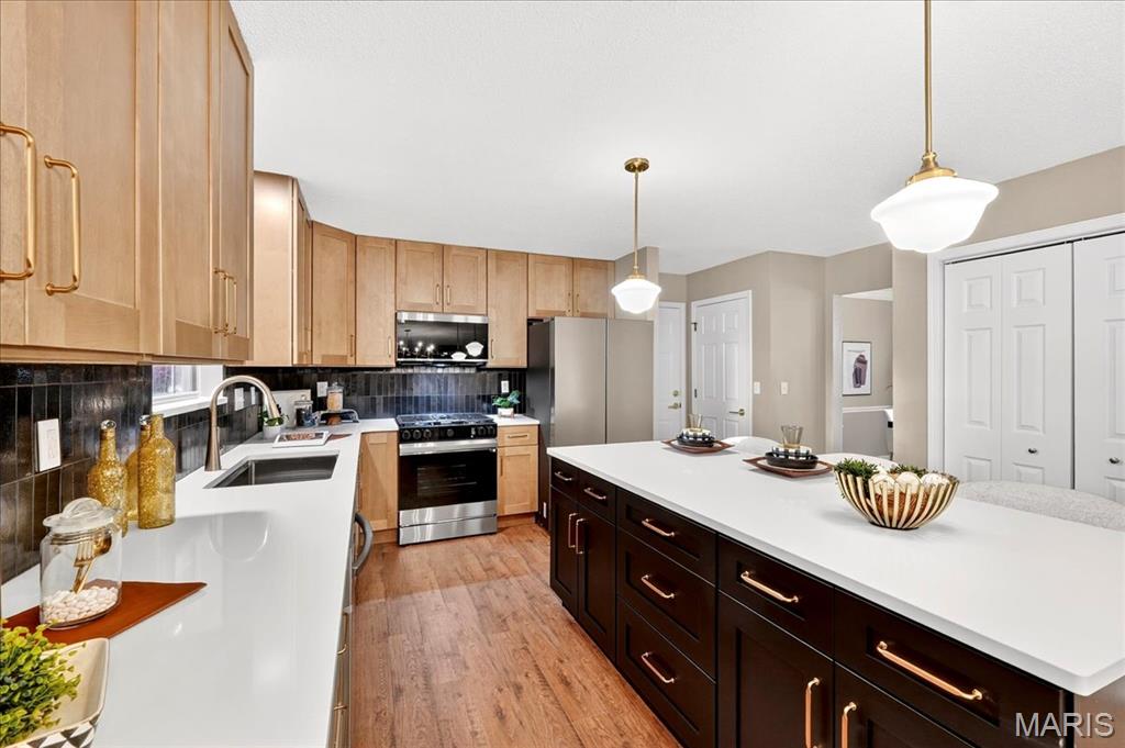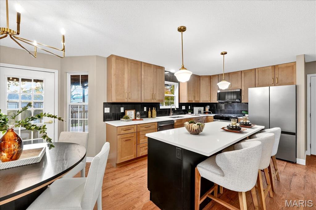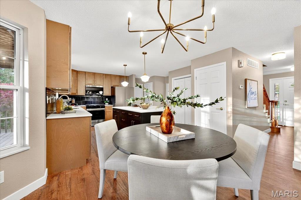 Welcome to 607 Shamrock Drive, a striking two-story brick home, fully renovated and ready for its new owner. As you arrive, the mature landscaping and classic exterior details create an inviting first impression. Inside, a bright foyer with wood flooring and an elegant staircase leads to a formal dining room with stylish lighting and crisp trim work and crown molding, as well as a front living room—also perfect as a home office—featuring French doors and abundant natural light. The spacious family room, highlighted by a stunning brick fireplace and large bay window, offers a warm and welcoming space. The kitchen wows with neutral cabinetry, center island with breakfast bar, stainless appliances, gas stove, and a gorgeous backsplash. The upper level features 4 well appointed bedrooms, including a large ensuite primary, with soaking tub and separate shower. Included are laundry hookups to make every day chores a breeze. Outside, the large fenced in back yard provides a beautifully designed outdoor seating space, featuring a circular brick patio, ideal for entertaining around a large fire pit. From indoor comfort to outdoor relaxation, this home delivers style, warmth, and plenty of space to enjoy every day. Agent Owned.