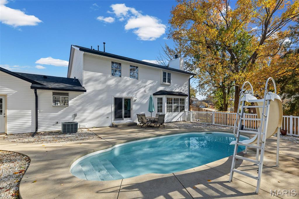 Welcome to 1205 Shadow Ridge Crossing in the desirable Northwoods subdivision! This updated 3 bed, 2.5 bath home features new siding, roof & soffit (2025), new main-level flooring, remodeled bathrooms, and new kitchen countertops. The main level offers two flexible rooms perfect for an office, playroom or dining. Enjoy the custom stone media wall with built-in accent lighting, plus a bright kitchen with bar seating overlooking the backyard. Upstairs is a spacious primary suite with walk-in closet, dual sinks & separate tub/shower. Outside you'll love the private in-ground pool with slide, patio space & privacy fence. Brick front, 2-car garage & move-in ready - perfect for everyday living & summer fun!