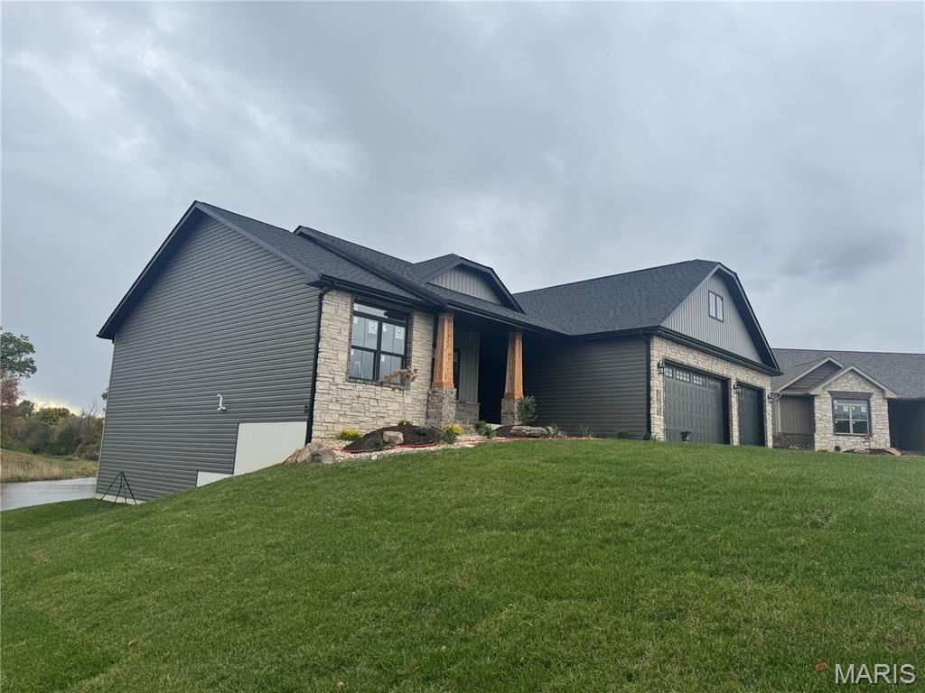 What a gem! New construction home on a nearly 2 acre lot with a pond and picturesque waterfront views!! Nestled in the rear of the desirable Remington community, this home is tucked away on a quiet culdesac lot. You will love the upgraded, designer inspired finishes, neutral color palette and THOSE VIEWS! Great room is truly the heart of the home and perfect for entertaining, flowing seamlessly into the kitchen finished with custom cabinetry, gleaming quartz countertops and stainless steel appliances. Relax on the covered deck constructed of low maintenance materials and enjoy the views of the fully stocked pond. Primary bedroom with the same gorgeous views featuring an en-suite with expansive marble surround shower, dual showerheads and walk-in closet. 2 additional bedrooms, full bath and convenient main floor laundry. Walk-out basement adds additional space for entertaining, hosting, or just the right amount of separation from the rest of the house! Large family room/rec room space, 4th bedroom and full bath. Nice sized patio adding a second outdoor entertaining space. Plenty of unfinished space for all of your storage needs. Home is under construction and more photos to come, but don't wait! Call today for your personal tour.