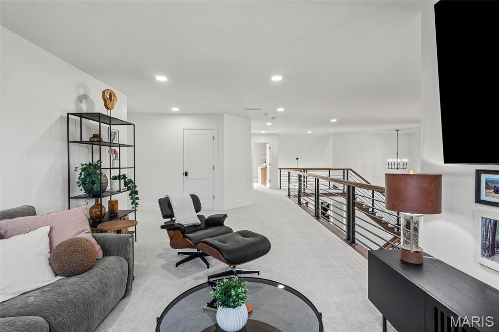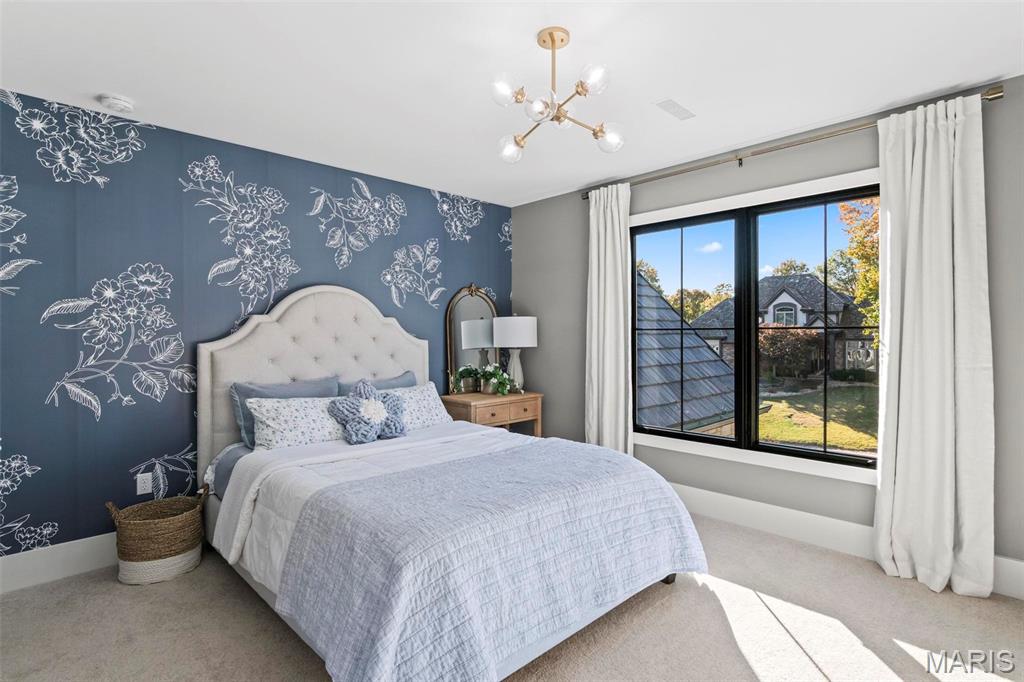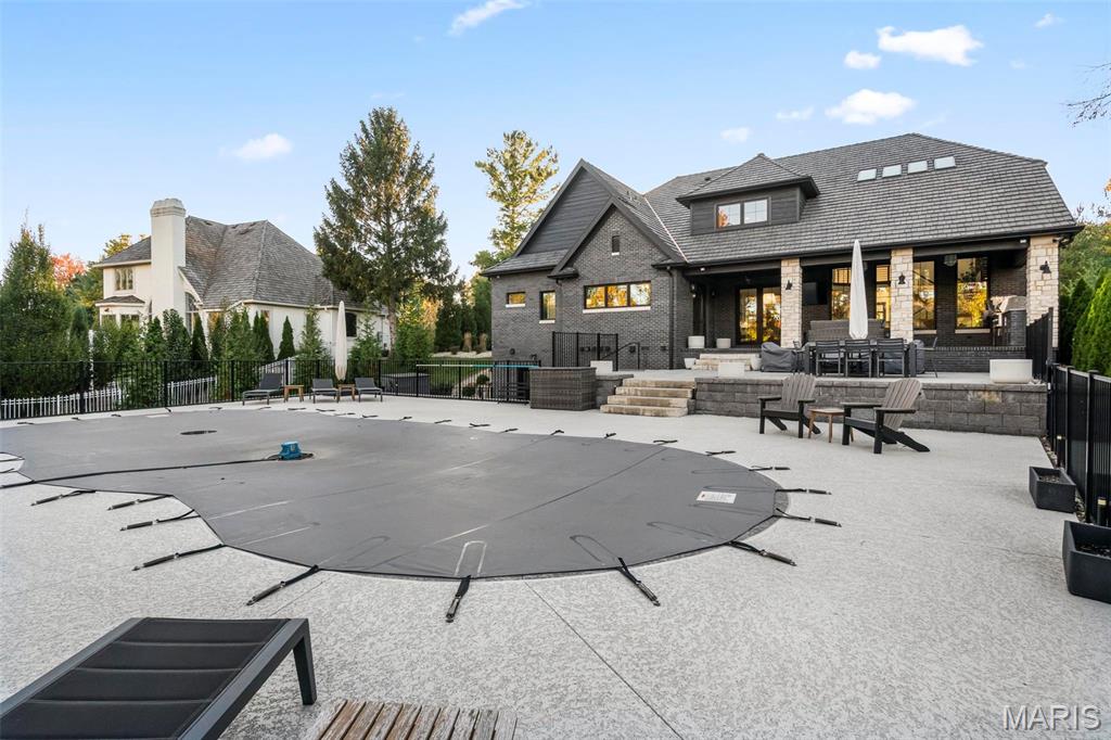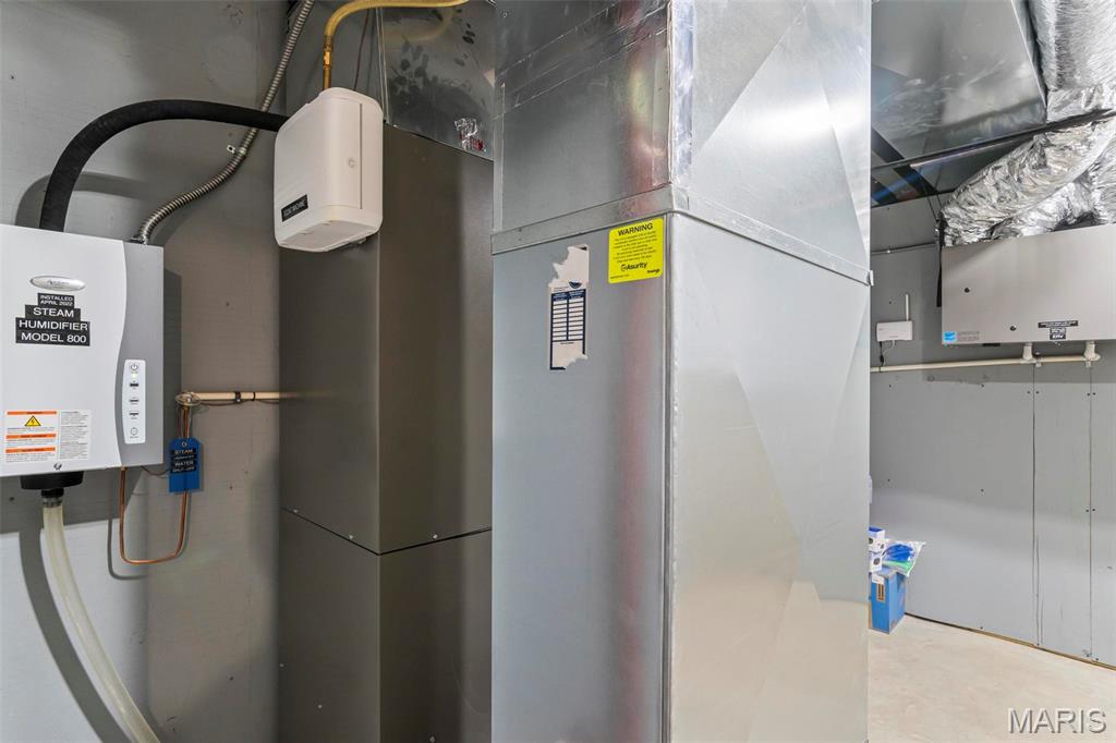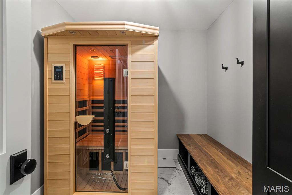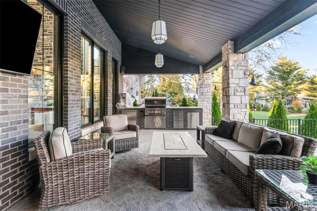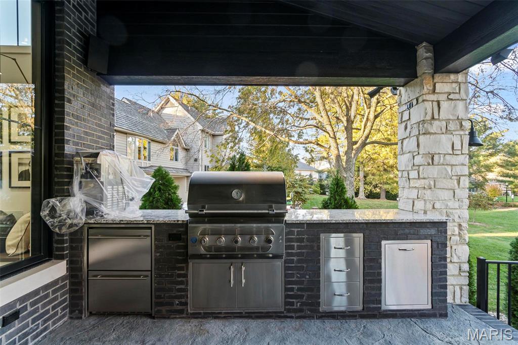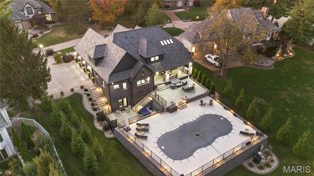 Welcome to 22 Southbridge Ln, a rare opportunity to own one of the most custom and luxurious homes in Edwardsville’s prestigious Stonebridge subdivision. Newer construction, built in 2022, and perfectly situated on nearly an acre, this estate blends timeless sophistication, advanced technology, and impeccable craftsmanship. From the moment you enter, the quality is unmistakable. The main level showcases wide-plank engineered hardwood floors, architectural ceilings, designer lighting, and a spacious open floor plan. The chef’s kitchen features custom cabinetry, an oversized island, and a high-end Dacor appliance package, all finished with exceptional detail. Adjacent to the kitchen is a formal dining room, ideal for entertaining, and a dedicated office with custom built-ins, providing a refined workspace that complements today’s lifestyle. The primary suite offers a true spa-like retreat with heated bathroom floors, heated shower floor, and a heated towel rack, along with peaceful views overlooking the backyard and pool area. Upstairs, you’ll find two large bedrooms connected by a stylish Jack-and-Jill bathroom, plus a versatile loft area perfect for a study nook, playroom, or additional lounge space—providing flexibility for family and guests. The finished lower level is built for entertainment and leisure, featuring a theater area, full bar, and immersive audio system. Hidden design elements elevate the space: a custom bookshelf conceals the home’s advanced mechanicals—including the HVAC, ERV, and scent diffusion system—while another hidden door leads to a private storage area and a reinforced safe room that is both tornado- and fire-rated. Behind the luxury finishes lies a foundation of engineering excellence. The home is equipped with 400-amp electrical service, a full-house generator with automatic transfer switch, whole-house water filtration system with app-monitored flow, dual backup sump pumps, dual water supply, steam humidifier, and MERV-16 air filtration for unmatched comfort and air quality. Every system was selected for reliability, efficiency, and long-term performance. The outdoor living space is truly resort-caliber. The four-layer anti-slip patio, covered entertaining area, and luxury outdoor kitchen complete the backyard oasis—featuring a hybrid grill, built-in refrigerator, generous counter space, and integrated lighting. Whether hosting a party or enjoying a quiet evening poolside, this outdoor space is second to none. Built with precision, maintained with care, and finished to perfection, 22 Southbridge Lane stands as one of Edwardsville’s most impressive residences. With unmatched quality, innovative systems, and exquisite design throughout, this home defines modern luxury living.
