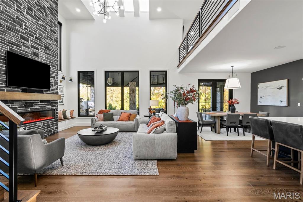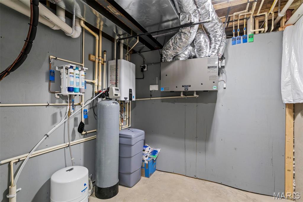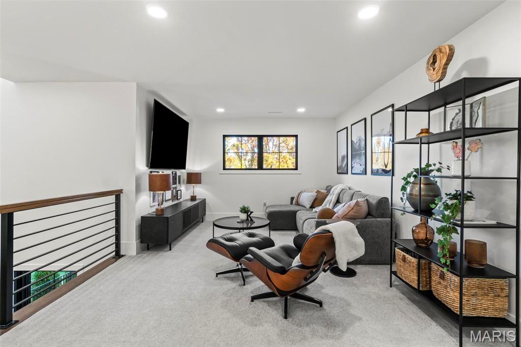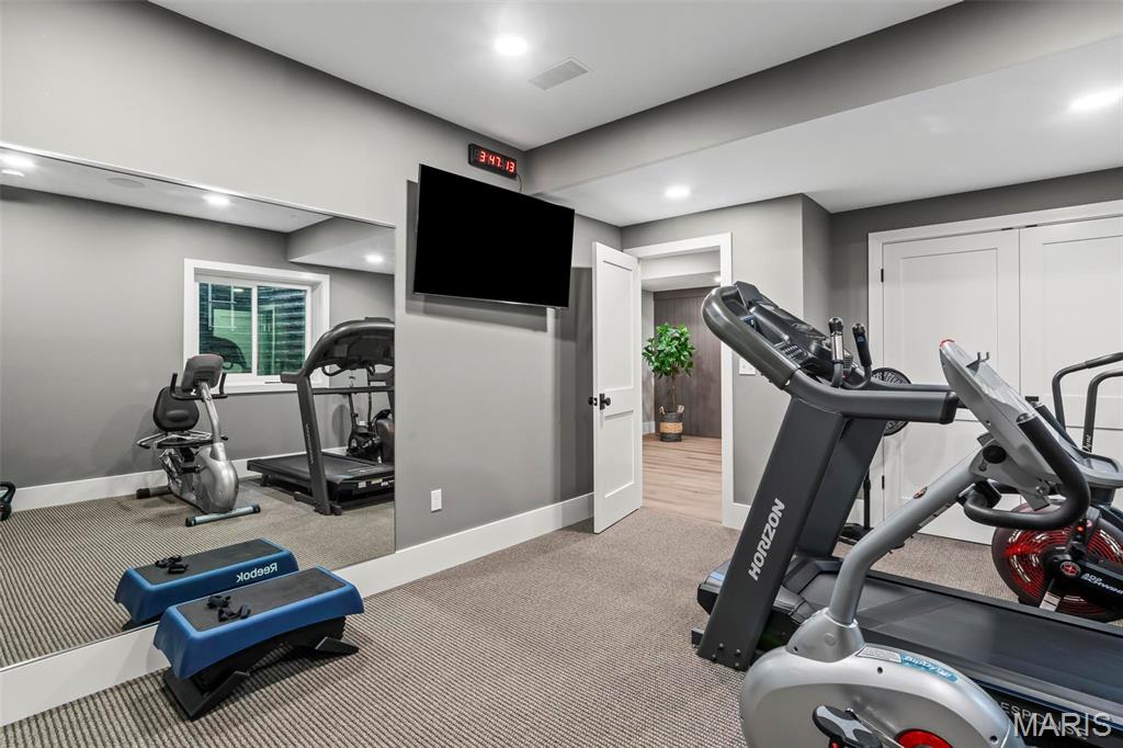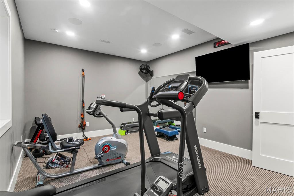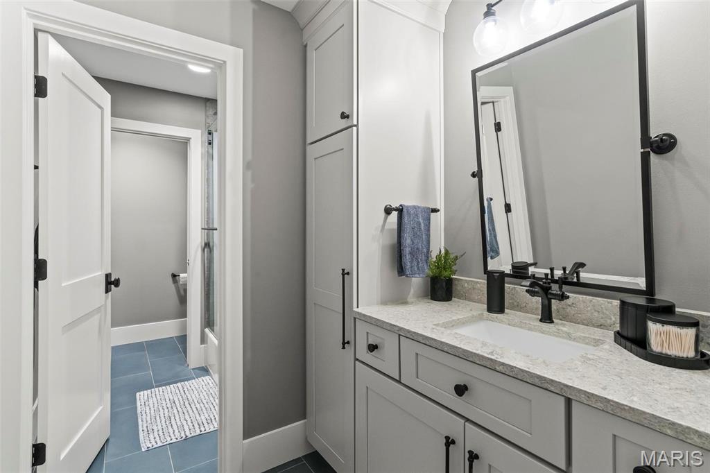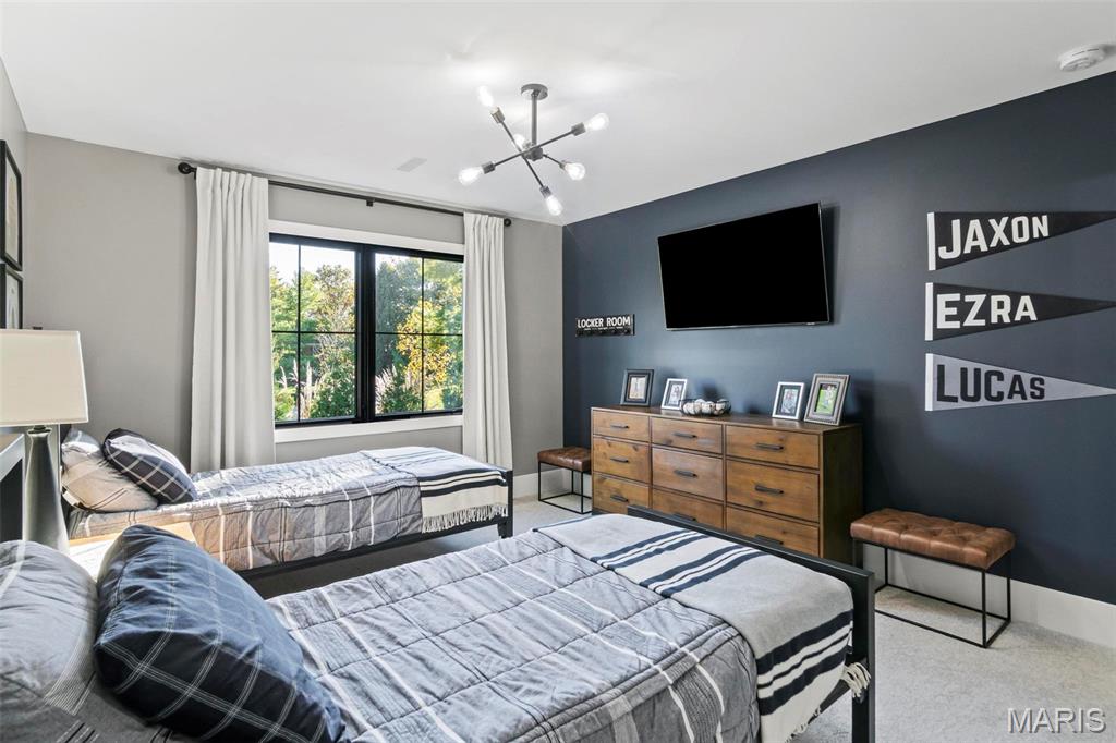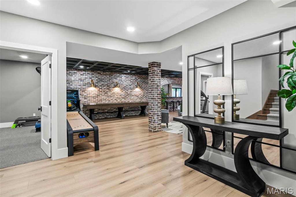 Welcome to 22 Southbridge Ln, a rare opportunity to own one of the most custom and luxurious homes in Edwardsville’s prestigious Stonebridge subdivision. Newer construction, built in 2022, and perfectly situated on nearly an acre, this estate blends timeless sophistication, advanced technology, and impeccable craftsmanship. From the moment you enter, the quality is unmistakable. The main level showcases wide-plank engineered hardwood floors, architectural ceilings, designer lighting, and a spacious open floor plan. The chef’s kitchen features custom cabinetry, an oversized island, and a high-end Dacor appliance package, all finished with exceptional detail. Adjacent to the kitchen is a formal dining room, ideal for entertaining, and a dedicated office with custom built-ins, providing a refined workspace that complements today’s lifestyle. The primary suite offers a true spa-like retreat with heated bathroom floors, heated shower floor, and a heated towel rack, along with peaceful views overlooking the backyard and pool area. Upstairs, you’ll find two large bedrooms connected by a stylish Jack-and-Jill bathroom, plus a versatile loft area perfect for a study nook, playroom, or additional lounge space—providing flexibility for family and guests. The finished lower level is built for entertainment and leisure, featuring a theater area, full bar, and immersive audio system. Hidden design elements elevate the space: a custom bookshelf conceals the home’s advanced mechanicals—including the HVAC, ERV, and scent diffusion system—while another hidden door leads to a private storage area and a reinforced safe room that is both tornado- and fire-rated. Behind the luxury finishes lies a foundation of engineering excellence. The home is equipped with 400-amp electrical service, a full-house generator with automatic transfer switch, whole-house water filtration system with app-monitored flow, dual backup sump pumps, dual water supply, steam humidifier, and MERV-16 air filtration for unmatched comfort and air quality. Every system was selected for reliability, efficiency, and long-term performance. The outdoor living space is truly resort-caliber. The four-layer anti-slip patio, covered entertaining area, and luxury outdoor kitchen complete the backyard oasis—featuring a hybrid grill, built-in refrigerator, generous counter space, and integrated lighting. Whether hosting a party or enjoying a quiet evening poolside, this outdoor space is second to none. Built with precision, maintained with care, and finished to perfection, 22 Southbridge Lane stands as one of Edwardsville’s most impressive residences. With unmatched quality, innovative systems, and exquisite design throughout, this home defines modern luxury living.