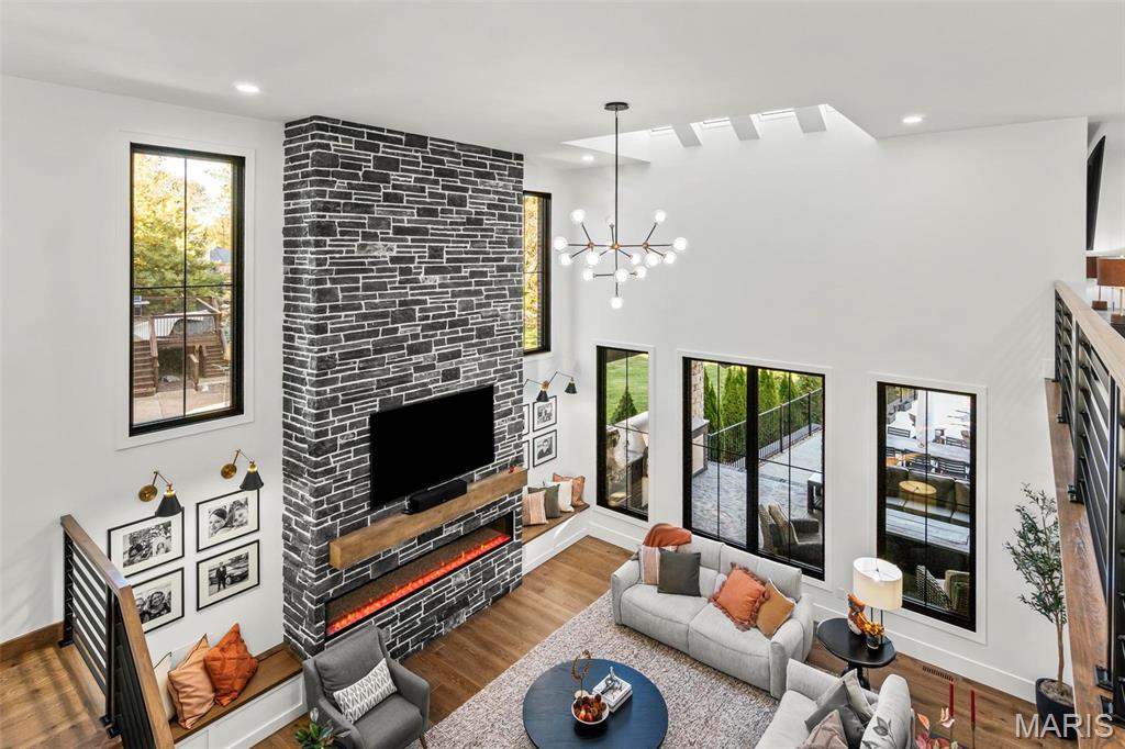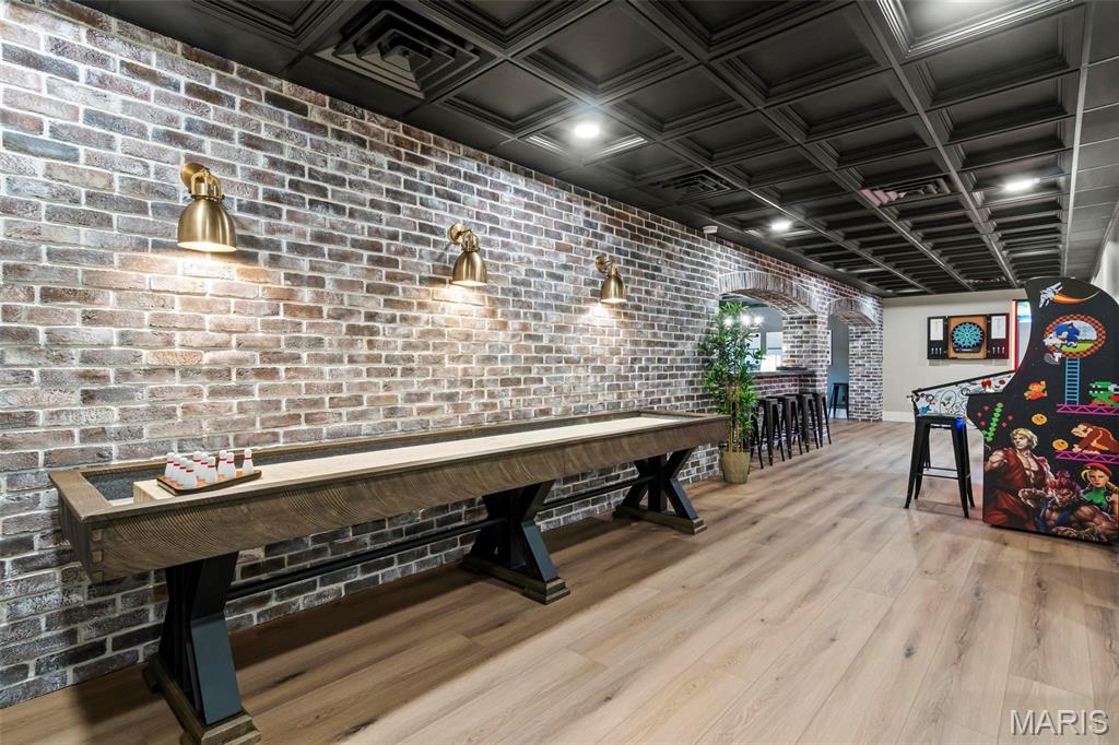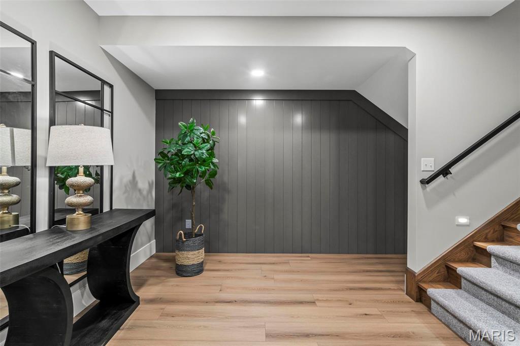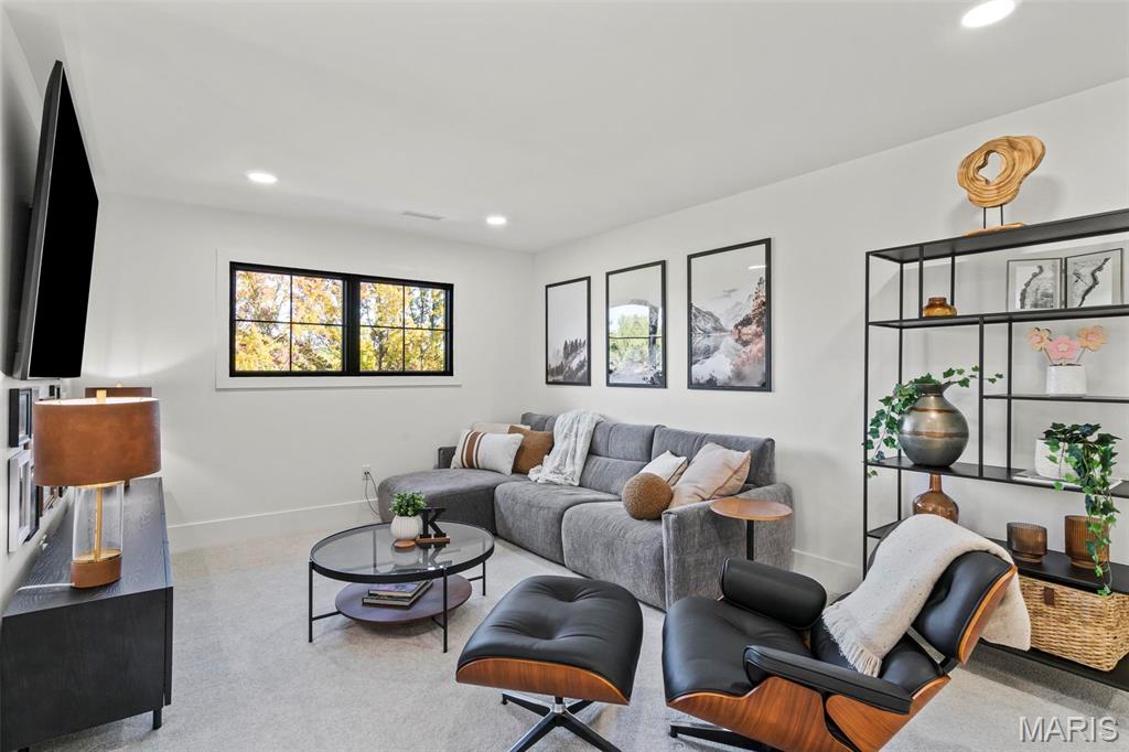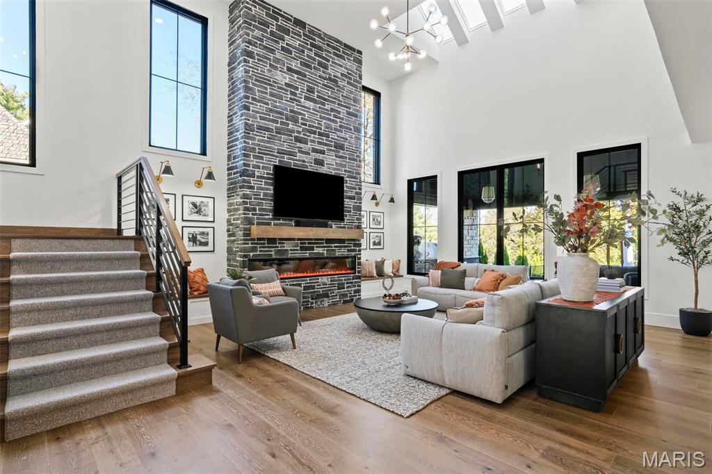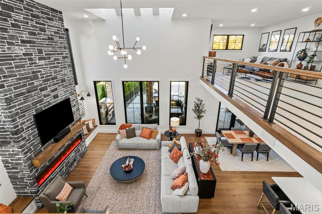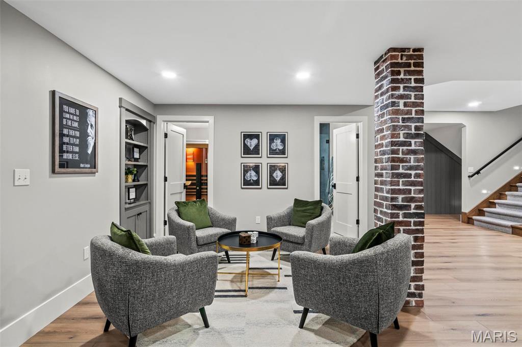 Welcome to 22 Southbridge Ln, a rare opportunity to own one of the most custom and luxurious homes in Edwardsville’s prestigious Stonebridge subdivision. Newer construction, built in 2022, and perfectly situated on nearly an acre, this estate blends timeless sophistication, advanced technology, and impeccable craftsmanship. From the moment you enter, the quality is unmistakable. The main level showcases wide-plank engineered hardwood floors, architectural ceilings, designer lighting, and a spacious open floor plan. The chef’s kitchen features custom cabinetry, an oversized island, and a high-end Dacor appliance package, all finished with exceptional detail. Adjacent to the kitchen is a formal dining room, ideal for entertaining, and a dedicated office with custom built-ins, providing a refined workspace that complements today’s lifestyle. The primary suite offers a true spa-like retreat with heated bathroom floors, heated shower floor, and a heated towel rack, along with peaceful views overlooking the backyard and pool area. Upstairs, you’ll find two large bedrooms connected by a stylish Jack-and-Jill bathroom, plus a versatile loft area perfect for a study nook, playroom, or additional lounge space—providing flexibility for family and guests. The finished lower level is built for entertainment and leisure, featuring a theater area, full bar, and immersive audio system. Hidden design elements elevate the space: a custom bookshelf conceals the home’s advanced mechanicals—including the HVAC, ERV, and scent diffusion system—while another hidden door leads to a private storage area and a reinforced safe room that is both tornado- and fire-rated. Behind the luxury finishes lies a foundation of engineering excellence. The home is equipped with 400-amp electrical service, a full-house generator with automatic transfer switch, whole-house water filtration system with app-monitored flow, dual backup sump pumps, dual water supply, steam humidifier, and MERV-16 air filtration for unmatched comfort and air quality. Every system was selected for reliability, efficiency, and long-term performance. The outdoor living space is truly resort-caliber. The four-layer anti-slip patio, covered entertaining area, and luxury outdoor kitchen complete the backyard oasis—featuring a hybrid grill, built-in refrigerator, generous counter space, and integrated lighting. Whether hosting a party or enjoying a quiet evening poolside, this outdoor space is second to none. Built with precision, maintained with care, and finished to perfection, 22 Southbridge Lane stands as one of Edwardsville’s most impressive residences. With unmatched quality, innovative systems, and exquisite design throughout, this home defines modern luxury living.