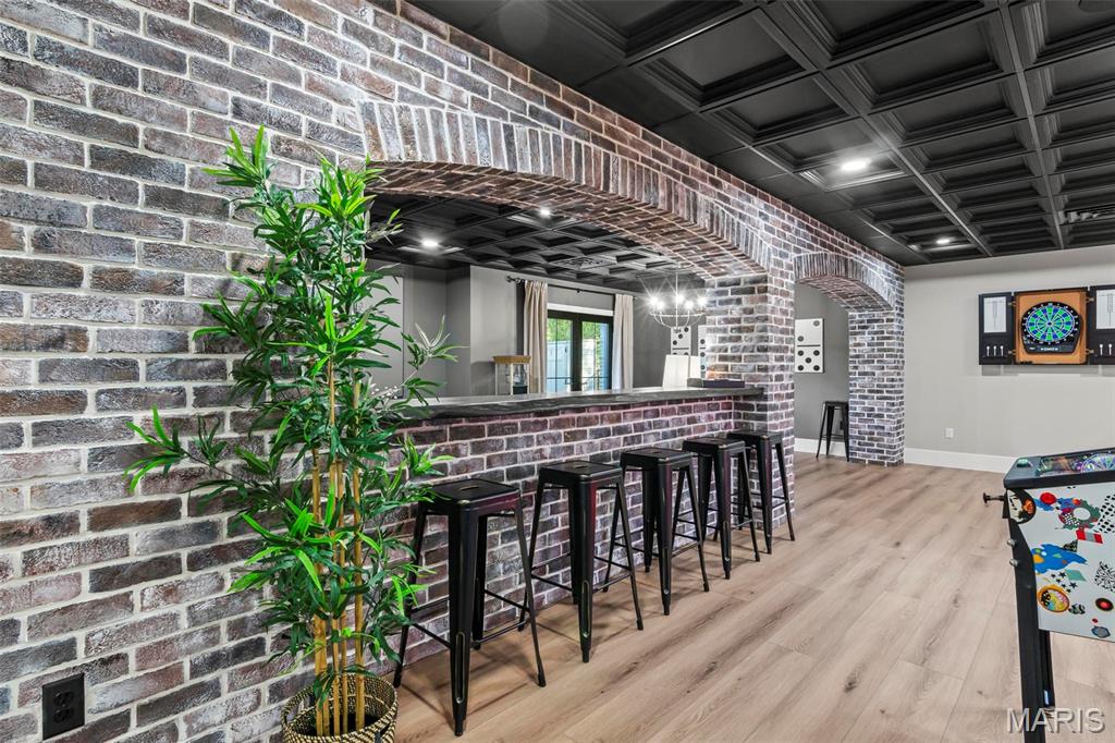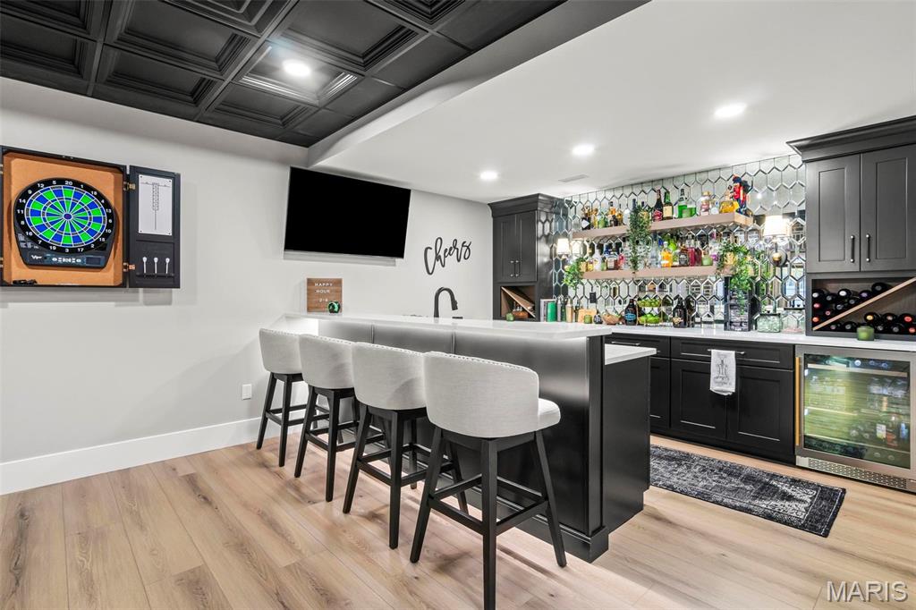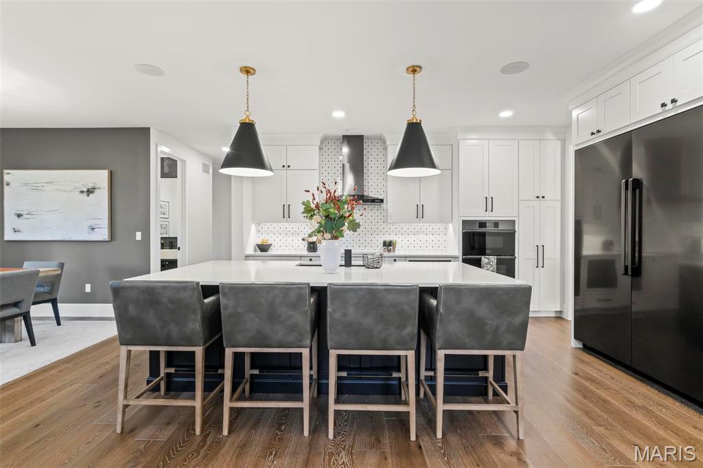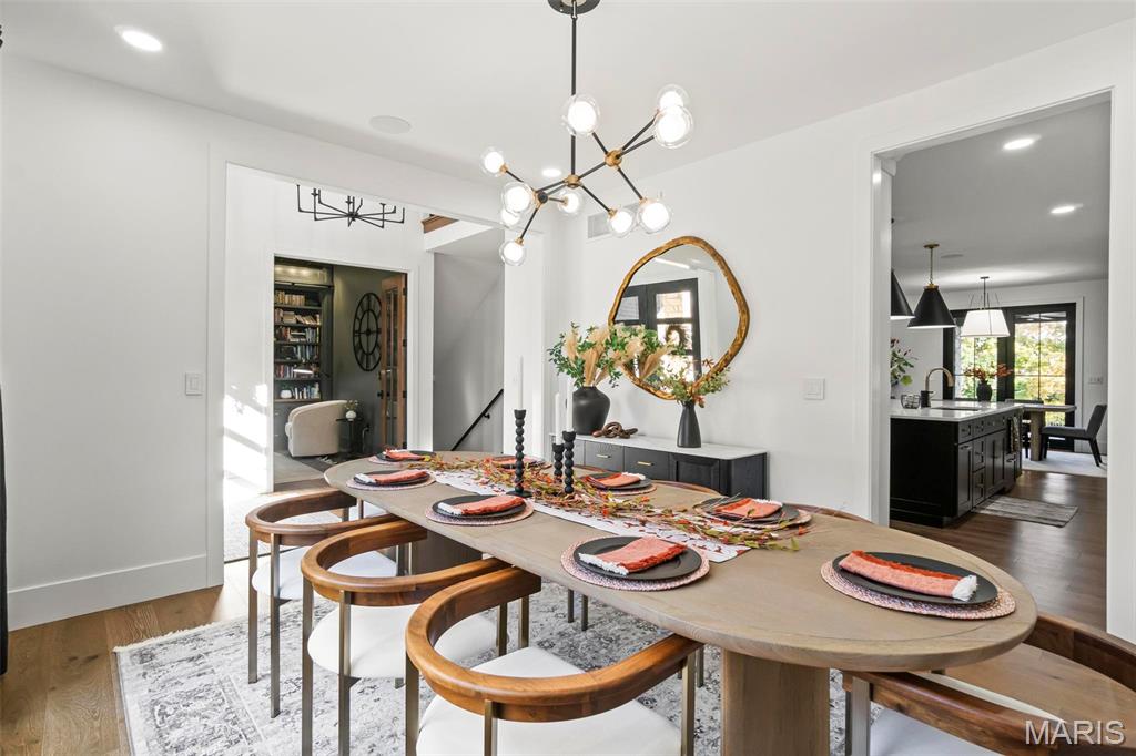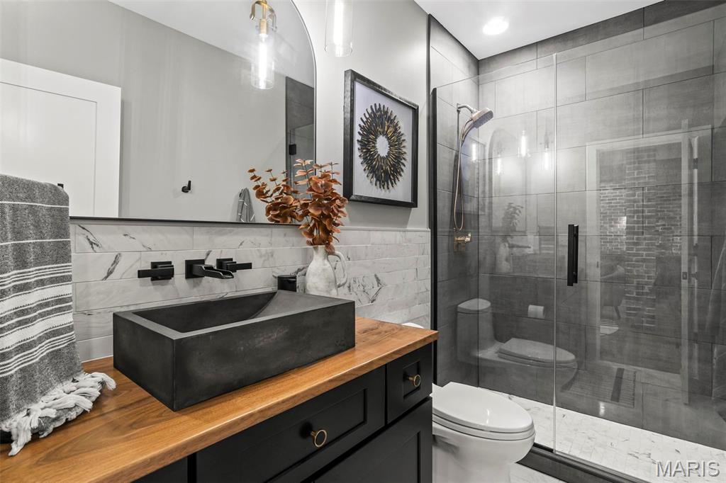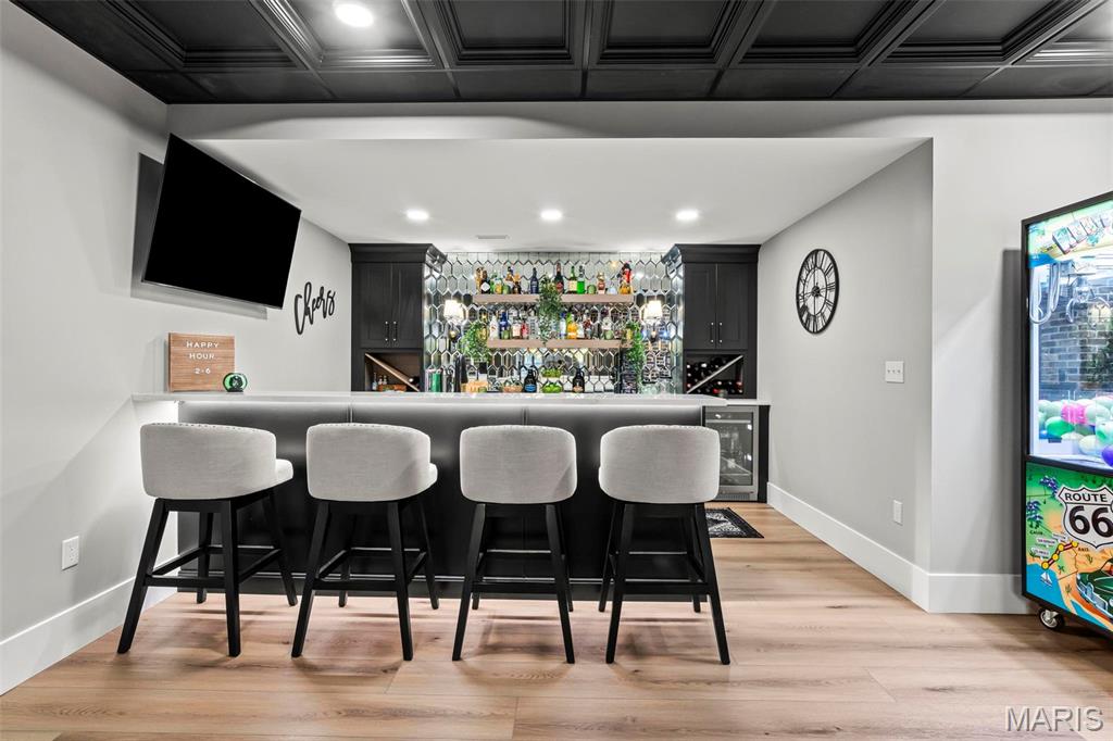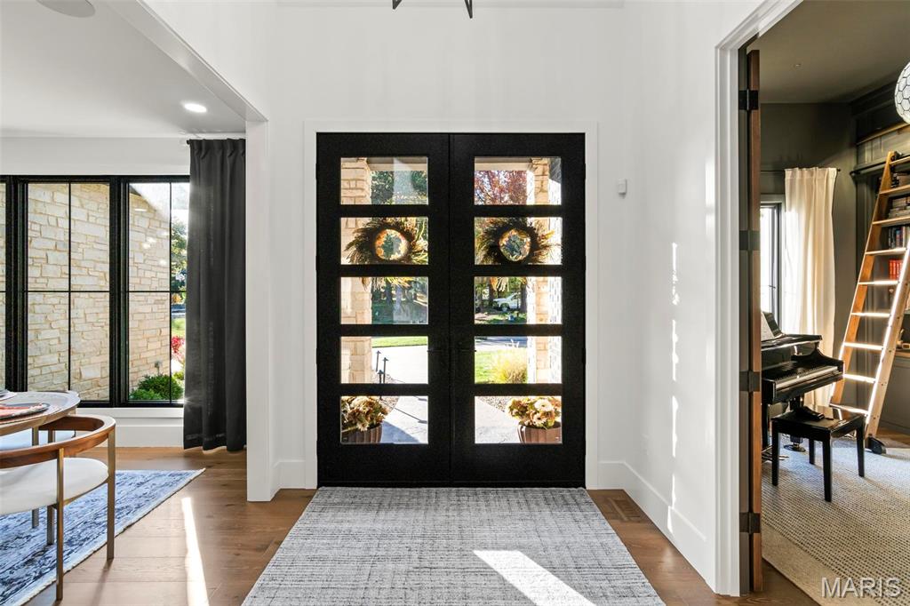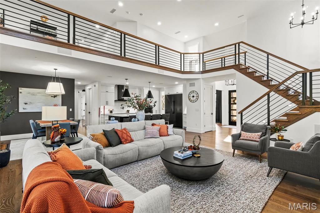 Welcome to 22 Southbridge Ln, a rare opportunity to own one of the most custom and luxurious homes in Edwardsville’s prestigious Stonebridge subdivision. Newer construction, built in 2022, and perfectly situated on nearly an acre, this estate blends timeless sophistication, advanced technology, and impeccable craftsmanship. From the moment you enter, the quality is unmistakable. The main level showcases wide-plank engineered hardwood floors, architectural ceilings, designer lighting, and a spacious open floor plan. The chef’s kitchen features custom cabinetry, an oversized island, and a high-end Dacor appliance package, all finished with exceptional detail. Adjacent to the kitchen is a formal dining room, ideal for entertaining, and a dedicated office with custom built-ins, providing a refined workspace that complements today’s lifestyle. The primary suite offers a true spa-like retreat with heated bathroom floors, heated shower floor, and a heated towel rack, along with peaceful views overlooking the backyard and pool area. Upstairs, you’ll find two large bedrooms connected by a stylish Jack-and-Jill bathroom, plus a versatile loft area perfect for a study nook, playroom, or additional lounge space—providing flexibility for family and guests. The finished lower level is built for entertainment and leisure, featuring a theater area, full bar, and immersive audio system. Hidden design elements elevate the space: a custom bookshelf conceals the home’s advanced mechanicals—including the HVAC, ERV, and scent diffusion system—while another hidden door leads to a private storage area and a reinforced safe room that is both tornado- and fire-rated. Behind the luxury finishes lies a foundation of engineering excellence. The home is equipped with 400-amp electrical service, a full-house generator with automatic transfer switch, whole-house water filtration system with app-monitored flow, dual backup sump pumps, dual water supply, steam humidifier, and MERV-16 air filtration for unmatched comfort and air quality. Every system was selected for reliability, efficiency, and long-term performance. The outdoor living space is truly resort-caliber. The four-layer anti-slip patio, covered entertaining area, and luxury outdoor kitchen complete the backyard oasis—featuring a hybrid grill, built-in refrigerator, generous counter space, and integrated lighting. Whether hosting a party or enjoying a quiet evening poolside, this outdoor space is second to none. Built with precision, maintained with care, and finished to perfection, 22 Southbridge Lane stands as one of Edwardsville’s most impressive residences. With unmatched quality, innovative systems, and exquisite design throughout, this home defines modern luxury living.