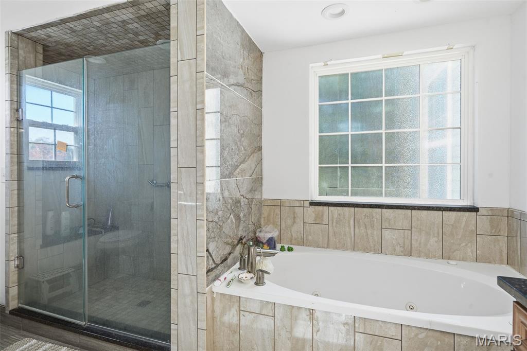 This stunning home offers a perfect balance of luxury and functionality with four bedrooms and four and a half bathrooms, including a main-level primary suite and en suite baths in every upstairs bedroom for ultimate privacy and comfort. Step inside to a grand two-story great room featuring a cozy fireplace and beautiful hardwood floors that flow throughout the main living areas. The open layout creates an inviting atmosphere ideal for entertaining or relaxing with family. The fully finished basement provides even more living space, complete with an additional bedroom and full bath, perfect for guests, a home office, or a private retreat. Outside, enjoy the convenience of a two-car attached garage and a location that combines comfort, space, and style.