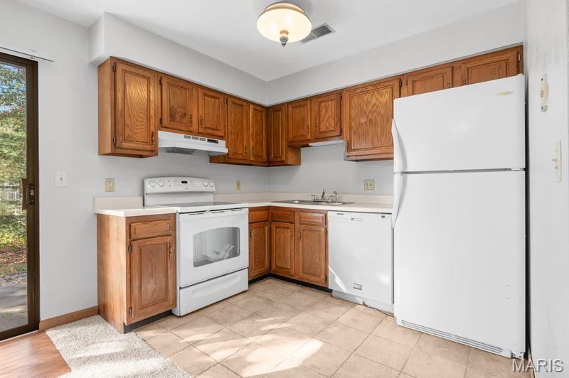 Welcome to this charming 2-bedroom, 1-bathroom half-duplex nestled in Shiloh. Offering 960 square feet of well-appointed living space, this delightful home is perfect for first-time homebuyers, empty nesters, or anyone seeking a comfortable, low-maintenance lifestyle. The spacious living room provides plenty of space for relaxation and entertaining guests. The eat-in kitchen features appliances that stay with the home and access to the backyard. You'll love the generously sized bedrooms offering ample space for your furnishings and a restful retreat at the end of the day. The bathroom is conveniently located and well-maintained. This home also boasts new carpet in 2025 and a new roof installed in 2023 ensuring peace of mind for years to come. Outside, you'll find a quaint yard and carport with additional storage ensures your vehicle and belongings are kept safe and secure. Don't miss the chance to make this lovely, move-in ready home your own. Schedule a showing today and discover all that this Shiloh gem has to offer! Close to SAFB, shopping, restaurants and within 30 minutes of downtown St. Louis. Buyer to verify all information prior to making an offer and preapproved buyers only please.