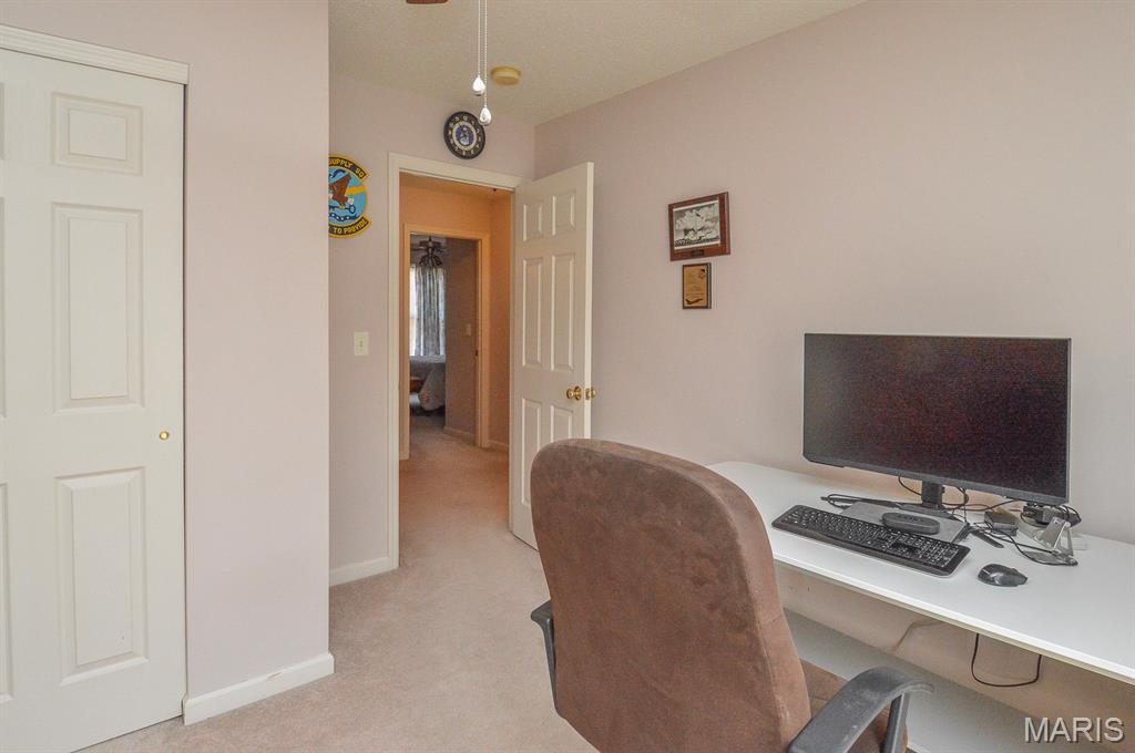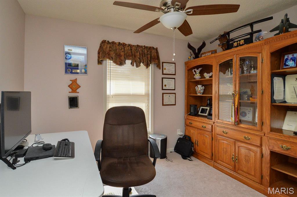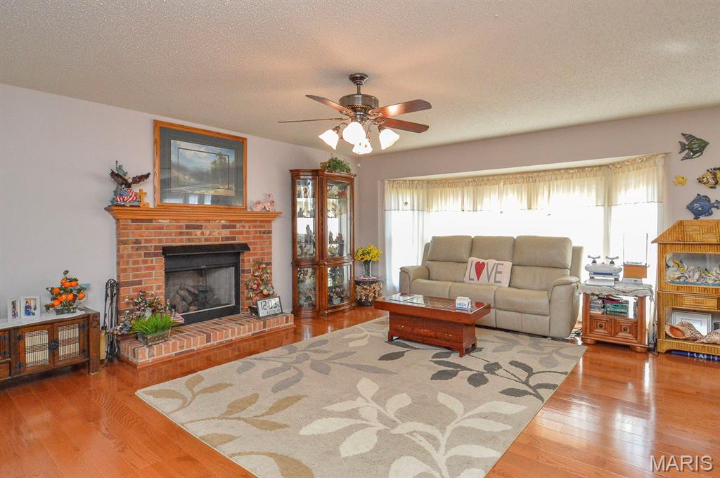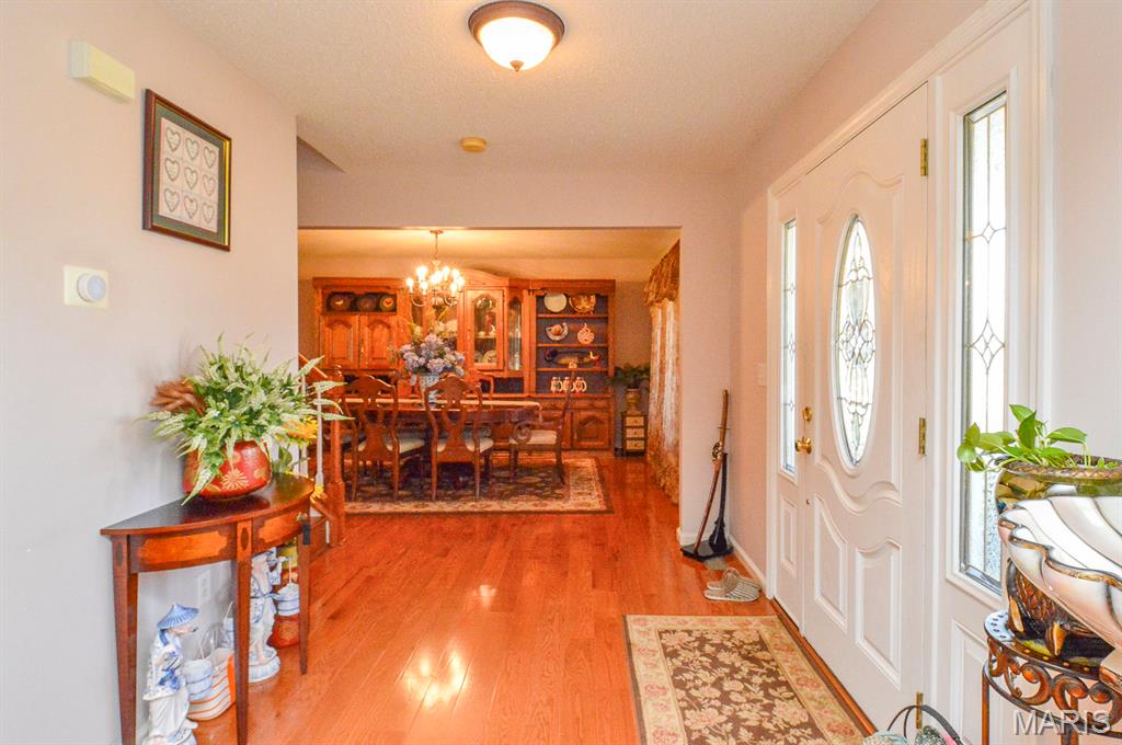 This elegant 4-bedroom, 3-bathroom two-story home offers timeless charm, and modern comfort is situated in Eagles Landing Subdivision of Shiloh, IL. From the moment you step through the stained-glass front door, natural light pours into the bright entryway, highlighting the rich hardwood floors and welcoming ambiance. A formal dining room highlights large windows, perfect for hosting memorable gatherings. Opposite is the cozy family room that flows seamlessly into the open-concept kitchen and living area, where stainless-steel appliances, granite countertops, and custom cabinetry create a space that is both functional and stylish. A casual dining nook adds warmth and convenience for everyday meals, while French doors lead to a spacious deck overlooking the backyard. Anchored by a gas-burning fireplace set in a classic brick mantle, the living room offers comfort and charm throughout the seasons. Upstairs, the four bedrooms are thoughtfully arranged around the central loft area. The primary suite features a walk-in closet, dual vanities, a whirlpool tub, and a standalone shower, creating a private retreat for relaxation. Three remaining bedrooms share a full bathroom just steps away, offering ample space for family or guests. The full, unfinished basement provides generous storage, utility access, and additional washer and dryer hookups. Outside, the beautifully manicured 0.57± acre lot includes a paved driveway and an oversized three-car garage, combining curb appeal with practicality. Located just minutes from I-64, Scott Air Force Base, and all major Metro East amenities, this home also offers access to a private community pool and is part of the Shiloh and O’Fallon School Districts. With its blend of classic design, modern updates, and unbeatable location, this property is a rare opportunity to own a piece of Eagles Landing’s finest. While unaware of any issues, Sellers are electing to sell the property as is.
