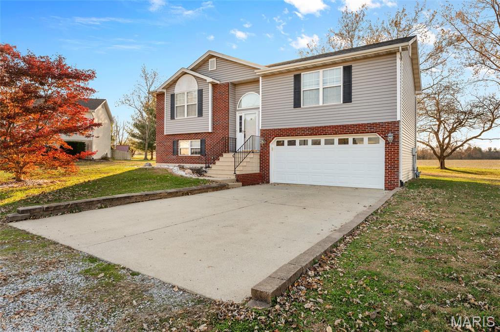 Move right in!! Triad School District. This cute 3 bedroom 2 full bathroom home is ready for you! Open floorplan great for entertaining. Kitchen, Living room with 2 bedrooms and a full bathroom up and 1 bedroom in the lower level with a family room 1 full bathroom and 2 car attached garage. Detached garage in back of the home. This garage is great for storage, work shop etc. Home is located on a cul-de-sac with a large yard with mature trees. New Roof in 2025 (on the home and detached garage) and Siding in 2025 (on the house).