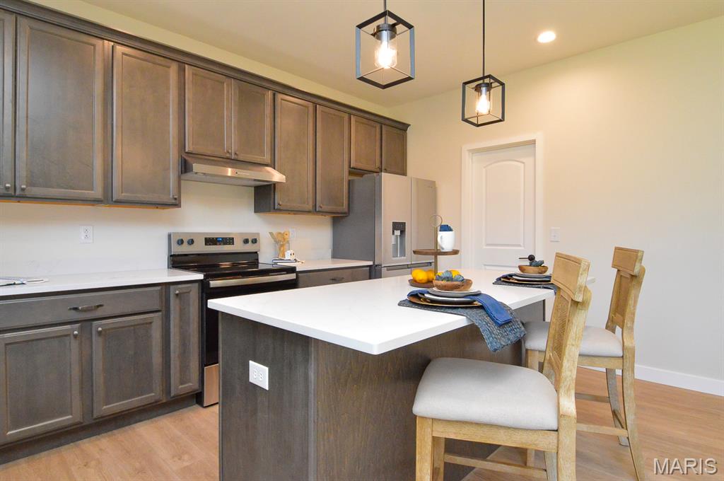 New construction in the highly desirable Hawthorne Hills Subdivision. This main level of the home boasts a spacious, open concept floor plan, formal dining space and 9 foot ceilings. The kitchen has beautiful custom cabinetry, quartz counters, stainless steel appliances and a large walk-in pantry. The home has LVP flooring throughout. Upstairs there are 4 large bedrooms. The master bedroom has a spacious en-suite with separate tub and shower along with a huge walk-in closet. The laundry room is also conveniently located on the second level. The unfinished basement has an egress window for a possible future bedroom and rough-in plumbing for a bathroom. All of this in a great subdivision with incredible amenities like walking trails, community pool and a 5 acre lake. Come check it out today!