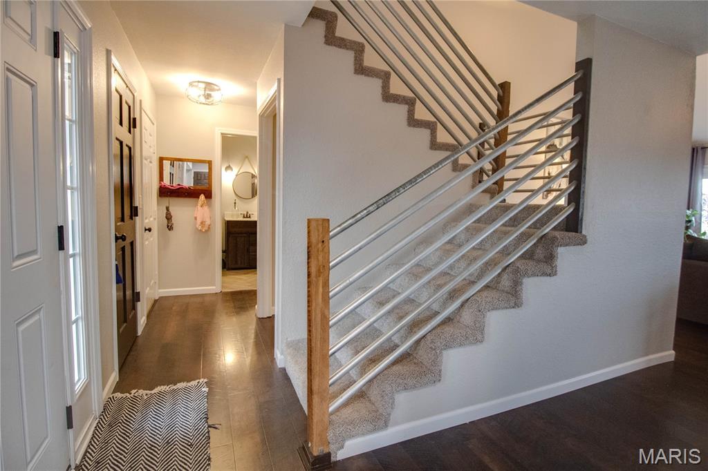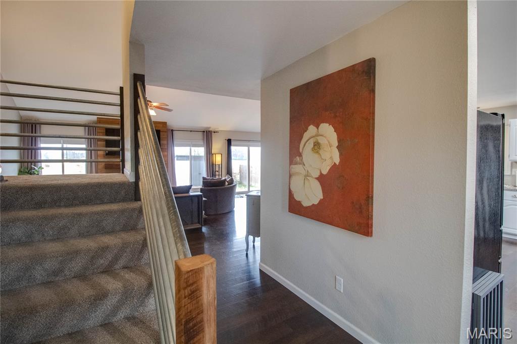 **Great news! The seller has indicated that they are willing to pay off the remaining solar panel financing balance with a reasonable offer** This updated 4 bedroom, 3 bathroom home in beautiful Glen Carbon is ready for its lucky new stewards! Sitting on a corner lot with a 2 car garage and a fenced in backyard that edges up to a serene pasture, this home offers great curb appeal and a comfortable layout. The main floor features an open floor plan with stylish finishes and low-maintenance modern laminate flooring throughout. Cozy up in the spacious living room, next to the beautiful fireplace. The living room opens directly to the dining area, which has direct access to the back patio, making it great for everyday living and entertaining. The spacious eat-in kitchen has granite counters, stainless steel appliances, plenty of cupboard space, and a pantry for extra storage. The main floor primary suite includes a large walk-in closet, an oversized bathroom, and outdoor patio access. The laundry room is located nearby for added convenience. Upstairs, there are three additional bedrooms and a full bath. The lower level offers a large finished space, perfect for a family room or recreation room, as well as additional storage space. The fenced backyard features a storage shed and a patio that is perfect for grilling and relaxing. Notable updates include a new water heater and dishwasher in 2024, new washer/dryer 2023, whole-house dehumidifier 2023, new furnace 2021, new roof and windows in 2017. Schedule your showing today!