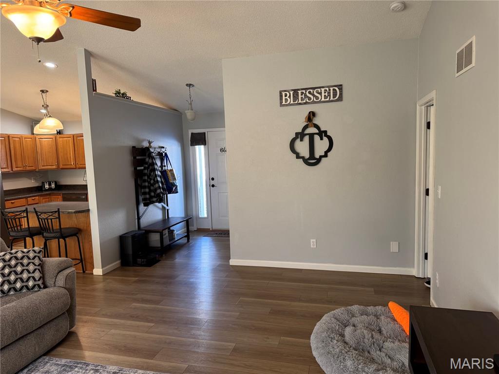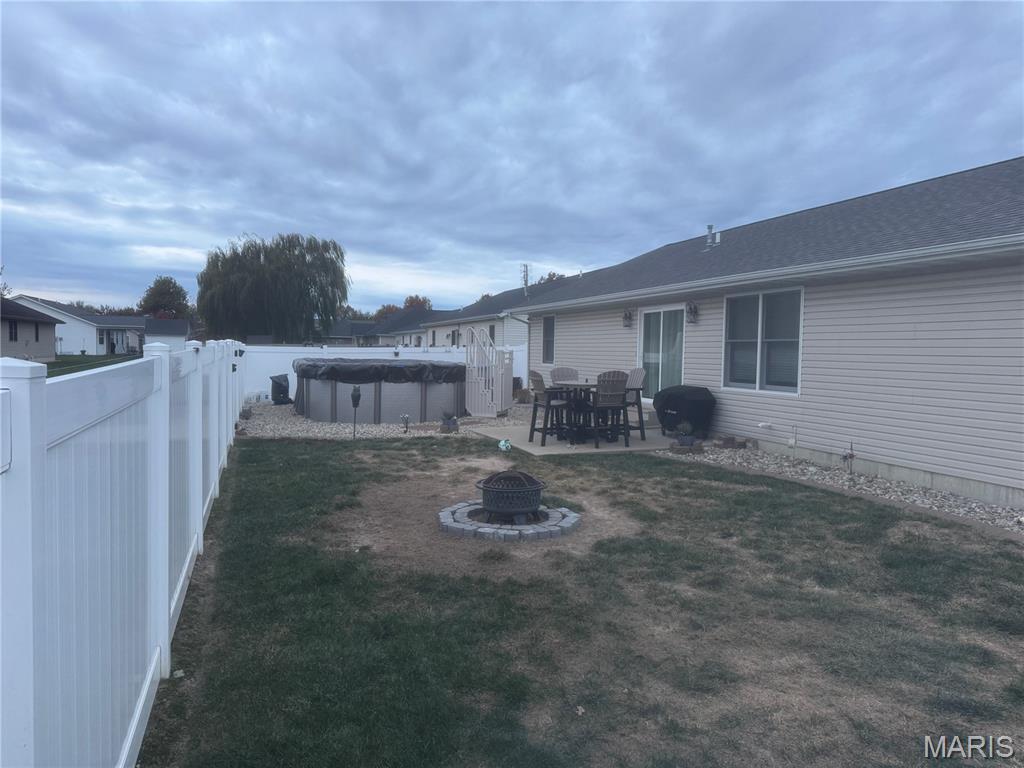 Keep Showing! Move in Ready! Spacious 4-bedroom, 3-bath home in desirable Cambridge Meadows! Enjoy an open-concept living/dining room and a bright kitchen featuring a breakfast bar and stainless steel appliances. Roomy Primary Bedroom with ensuite along with His and Her Walk in Closets – one with built in Wall Safe. The finished basement offers a large family room with wet bar, additional Bathroom plus a 4th bedroom with egress window and Walk in Closet. Backyard is perfect for entertaining with vinyl privacy fencing, fire pit, and an above-ground pool professionally installed July 2023. Quiet street, well-maintained home, and plenty of space to enjoy both indoors and out! Convenient main-floor laundry, Central Vac System, Anderson Windows, Ring Door Bell, Security Cameras, Oversized 2-car garage with side-door entry and additional parking pad, new roof installed in 2018, and new installation added February 2024 add to the value of this wonderful home! 35 minutes to Scott AFB. Quiet Street and Beautiful Sidewalks for Peaceful Evening Walks gives this a wonderful small town atmoshphere. This gem won’t last long.