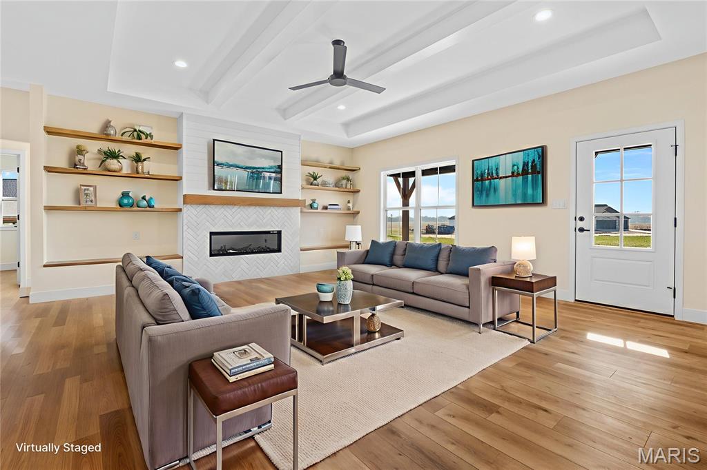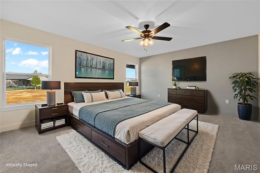 Penn Builders New Construction, located minutes from "I" Hwy access on a Premium Cul-De-Sac lot (.51+/- acre). Preliminary Specs/Subject to Changes~ 3 Bed/2 Bath; split BR/open floor plan; Craftsman Style Front Door; Sliding Doors from Dining Room to Oversized/Covered Patio with fan/light; farmhouse style interior trim; ZIP system sheeting on exterior framed walls; House insulation R-13 walls/R45 blown fiberglass in ceiling; Certainteed architectural shingles; Quaker Manchester low-e, tilt-wash, single-hung windows; Upgraded RigidCore LVP flooring in Kitchen; Pantry; Dining Room; Living Room; Laundry; Garage Entry & Hall Bath. Kitchen includes: Quartz countertops/tiled backsplash; 5-burner gas range; range hood; dishwasher & microwave; large island with counter seating; walk-in pantry. Homecrest Arbor cabinets in Kitchen & Baths with soft close dovetail drawers; Upgraded faucets throughout home. Cultured marble countertops in Baths. Double sinks; linen closet; window; large tiled shower with showerhead & rain can; and premium shower door with towel bar in Primary Bath. Linen closet in full hall Bath. Elongated electric fireplace with mantle; tile & wood accents; and custom shelving in Living Room. Basement includes an egress window and is roughed for a full bath. Finished/insulated (R11 walls/R19 ceiling) 3-Car Garage with hose spigot; belt driven openers & keypad. 2 additional hose spigots on exterior of home. Covered front porch. Hi-Eff HVAC; 50-gal commercial grade water heater; plumbed for water softener. Sodded front and side yards; landscaping; buried downspouts. 200 amp electric; Southwestern Electric for electricity. 1 yr builder warranty. C&Rs avail at: https://www.rlpdevelopment.com/subdivision/homes-of-liberty-place.
