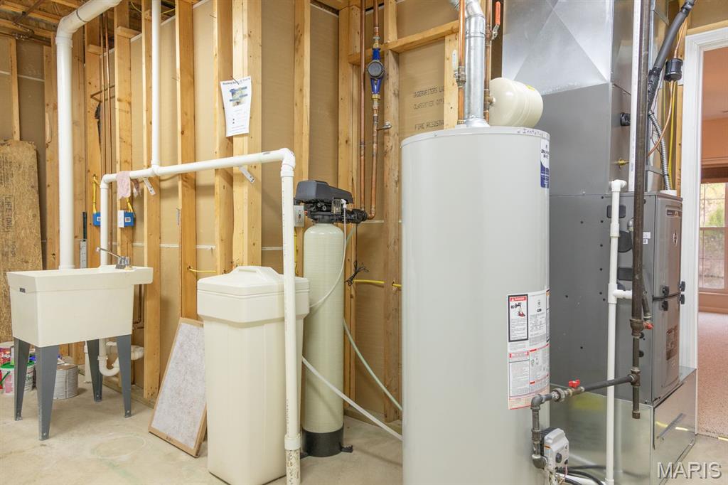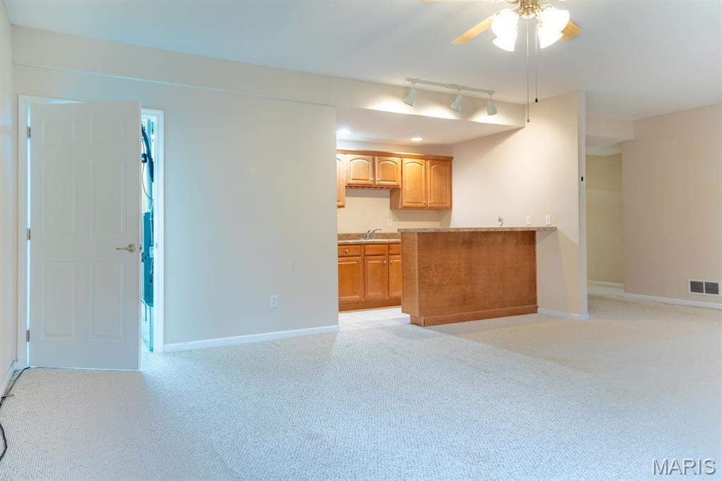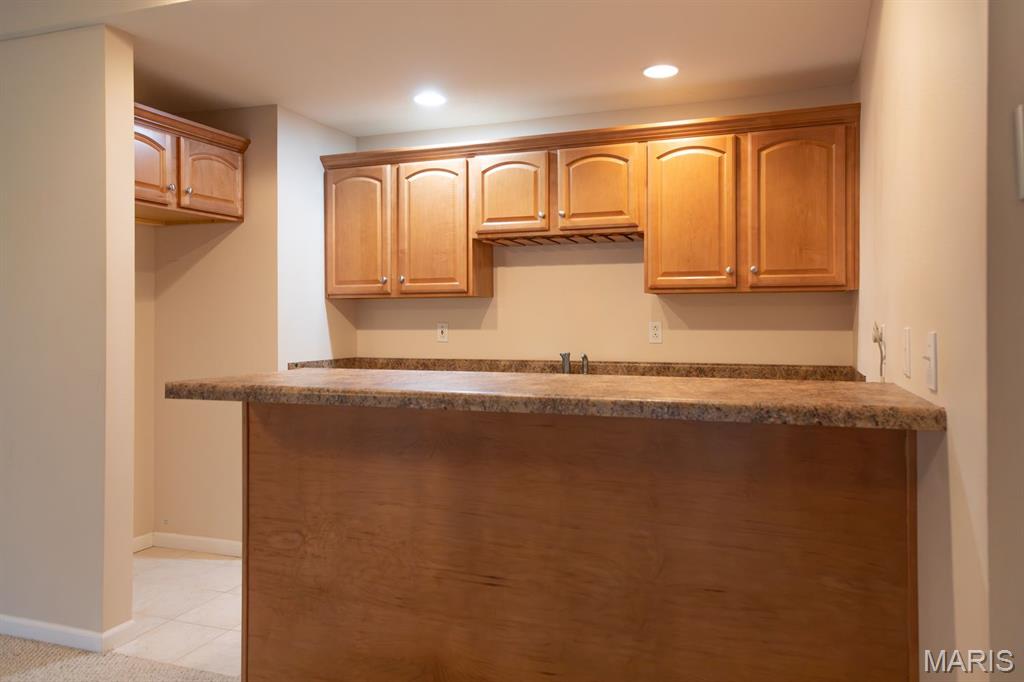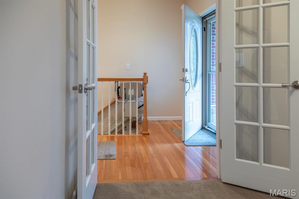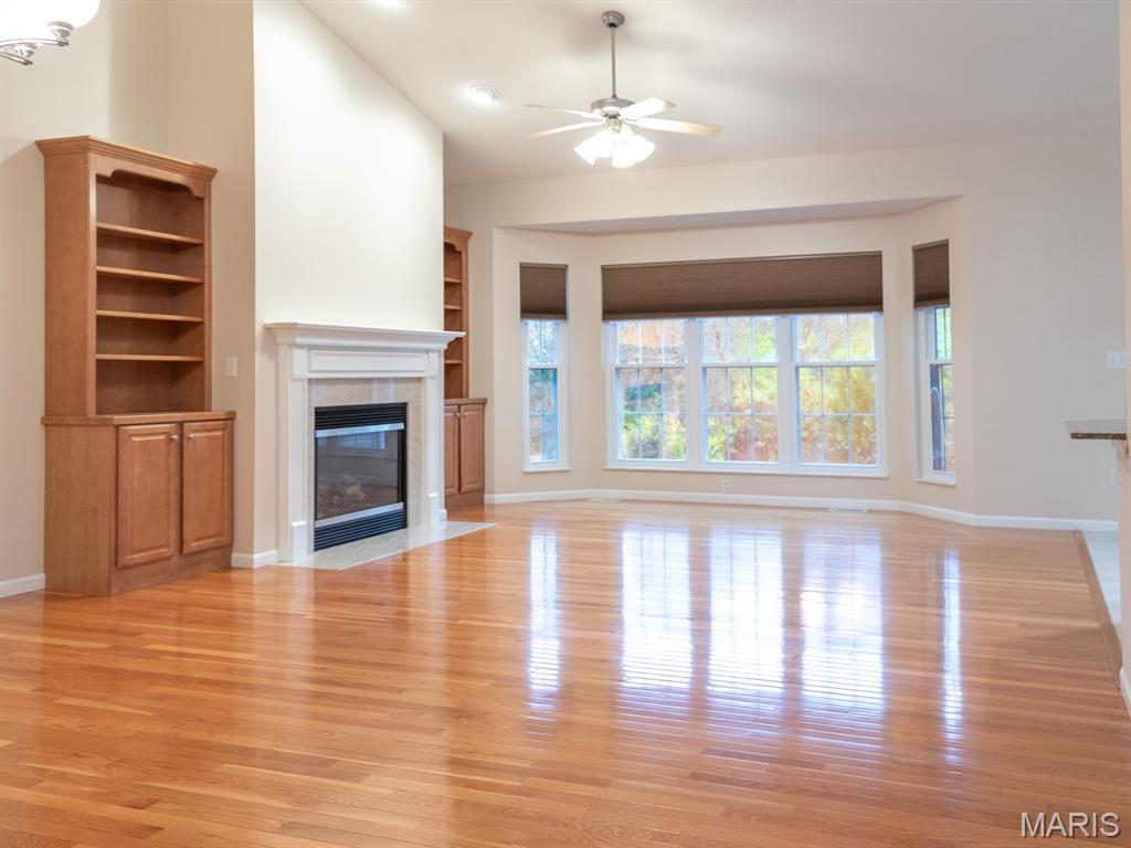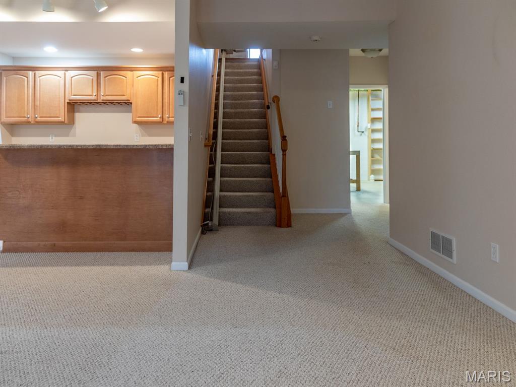 THE VILLAS OF STONEBRIDGE COMMUNITY OF MARYVILLE - This home features a large entry way, front guest bedroom with a full hall bathroom. You will love the beautiful dining room/living room with hardwood floors, bookcases and brick floor to ceiling gas log fireplace that opens to a lovely kitchen with granite countertops, ceramic backsplash, maple cabinets and gas stove. Relax in the cheerful sunroom and look out at the peaceful pond. Do not miss the large primary suite and bath with dual sinks, whirlpool tub, separate shower and walk in closet. There is a main floor laundry off the garage. In the lower level you will enjoy a third bedroom with large walk in closet, third full bathroom, large family room, second brick, gas log fireplace, wet bar area with space for a refrigerator, furnace room & workshop room. Walk out to the large patio (24' x 11') and enjoy the view of the pond. Some Updates: Furnace/ac & hot water heater 2023, Roof 2017 and updated windows. Call your favorite agent now for a showing. Close to walking/bike trails, interstates, shopping.
