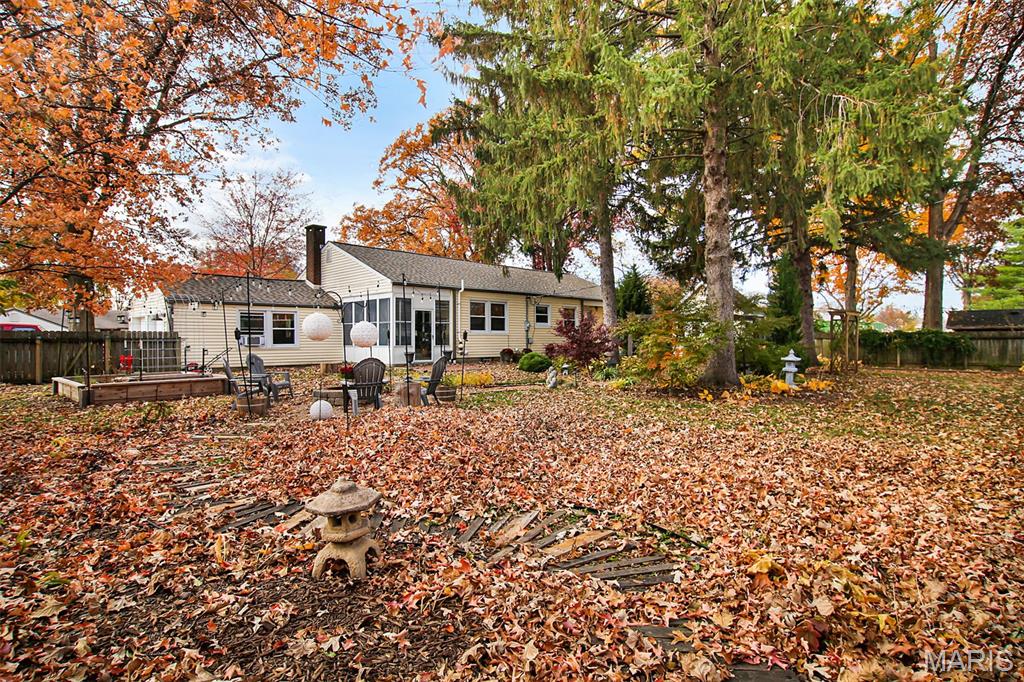 Charming newly painted 3-bedroom ranch with beautiful hardwood floors and a cozy fireplace. Enjoy extra living space in the full basement featuring a finished living room and office area. The home offers a new roof and a bright sunroom with warm wood pavers. Step outside to a stunning Japanese-inspired garden with custom raised cedar beds, a fire pit, and mature trees for added privacy. Two sheds provide great storage, including one with power—perfect for a workshop. A serene, well-kept property ready to enjoy.