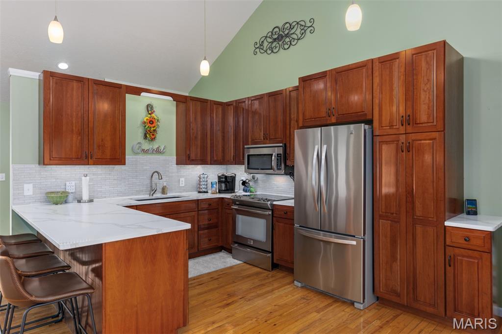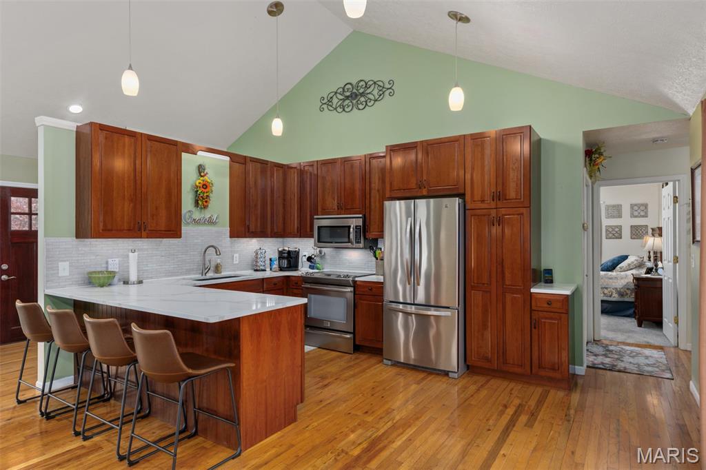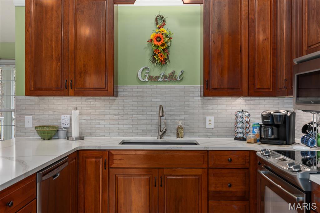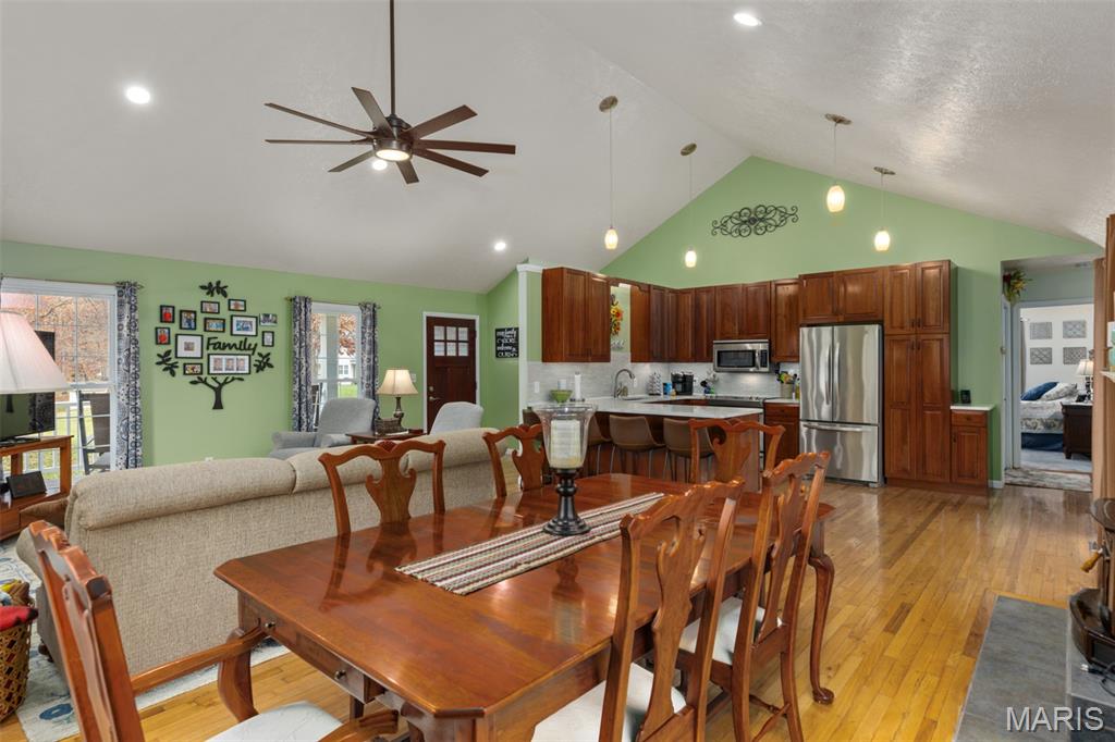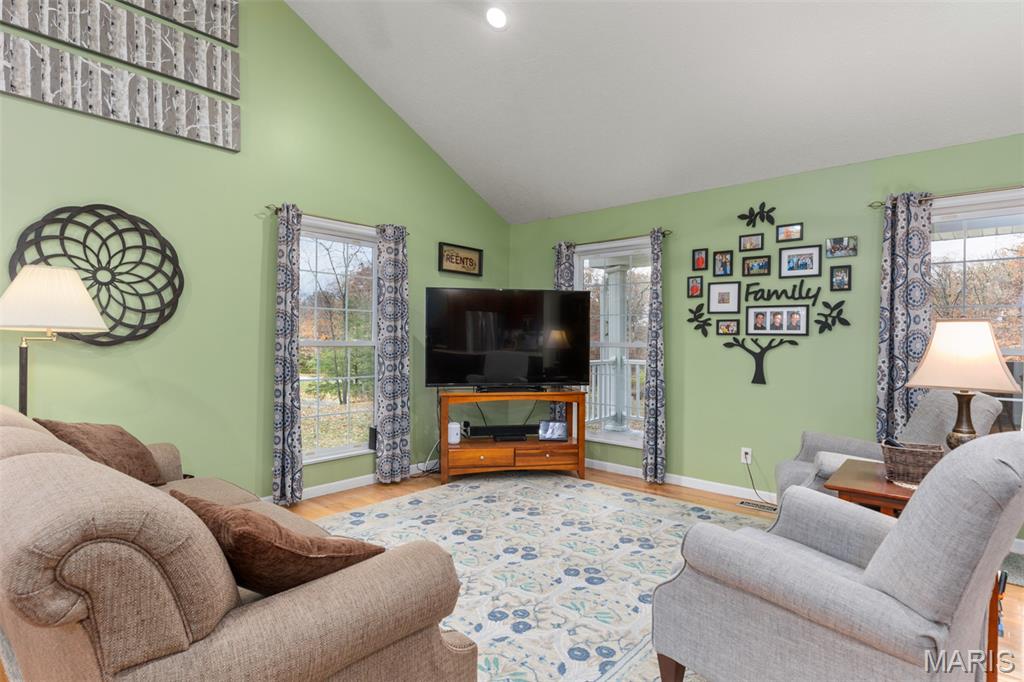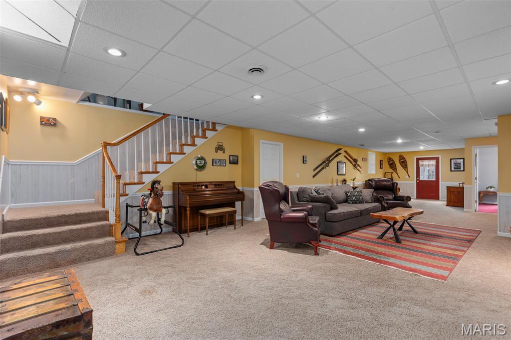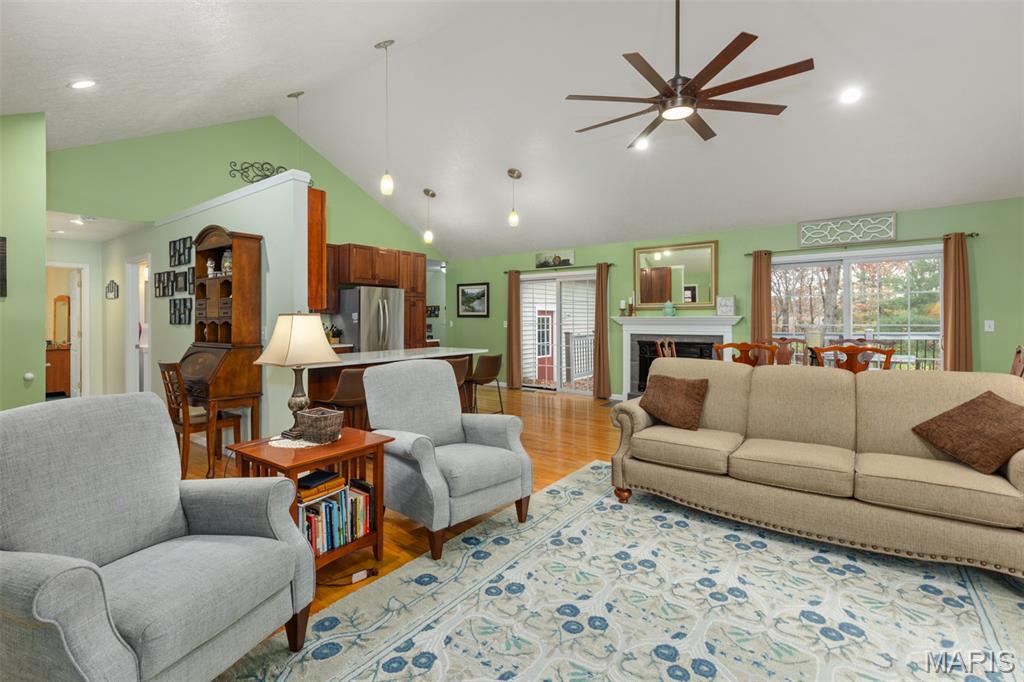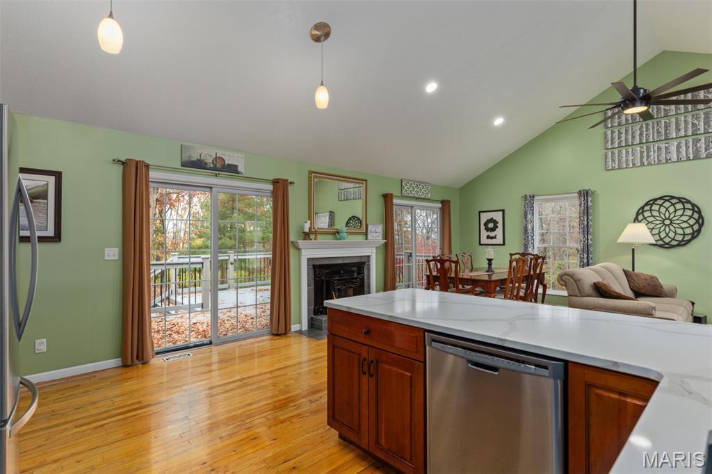 Comfort Meets Wooded Serenity Near Lake Lou Yaeger! Discover peace, privacy, and beautiful wooded views in this stunning home located in the desirable Day Spring subdivision - just moments from Lake Lou Yaeger. Thoughtfully designed and impeccably maintained, this spacious 4 bedroom, 3 bath home offers comfortable main level living with abundant space below. The main level features two bedrooms and a full bath, primary bedroom with en suite, and an updated, stylish kitchen with stainless steel appliances and quartz countertops, backsplash and sink that were replaced in 2024 that’s ready for entertaining. The bright living room and dining area welcomes you with natural light and a wood-burning insert perfect for cozy evenings at home. The walkout lower level is mostly finished and adds valuable living space, including a large recreation or family room, an additional bedroom, a full bath, and generous storage areas. Whether you need room to spread out or space for guests, this level offers tremendous flexibility. A major perk for storage lovers: the attached garage provides easy access to the attic for even more usable space. Outside, you’ll appreciate not only the natural surroundings but also the heated and cooled detached garage that's ideal for hobbies, a workshop, or extra parking. This property blends custom craftsmanship with modern updates and scenic views, all in a peaceful location near outdoor recreation and lake life.