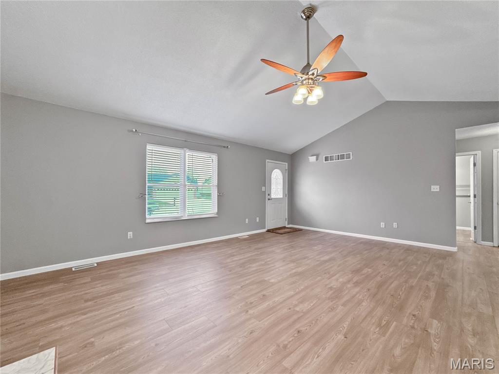 Welcome to Mockingbird – A Home That Feels Like Home! Nestled in one of Waterloo’s most sought-after and charming subdivisions, this stunning ranch-style has great curb appeal and offers nearly 3,000 square feet of beautifully maintained living space designed for comfort, convenience, and style. Step inside and you’ll immediately notice the open-concept layout and vaulted ceilings, creating a bright, airy atmosphere that feels both spacious and welcoming. The massive living room is the heart of the home, featuring a gorgeous picture window, a cozy gas fireplace, and durable LVP flooring throughout the main level (installed approximately 5 years ago). The eat-in kitchen is perfect for gatherings, boasting solid oak cabinetry, neutral high-definition countertops, a center island, and a cheerful breakfast area. Sliding glass doors lead to your composite covered, screened-in deck—an ideal spot for summer afternoons or crisp fall evenings. Beyond the deck, enjoy a flat, fenced backyard with puppy guard vinyl fencing and tasteful landscaping. Hosting dinner parties? The formal dining room offers plenty of space for entertaining and includes a large closet. Need flexibility? This room could easily be converted into a third main-floor bedroom or home office. The primary suite is a true retreat—spacious and bright with a walk-in closet, walk-in shower, single vanity with dressing area, plus linen storage. A second main-floor bedroom also features a large closet with built-ins, and the hall bath includes a tub/shower combo. For added convenience, the main-floor laundry connects to an oversized two-car garage, complete with epoxy flooring and R-38 insulation throughout the home, keeping utility costs low. Head downstairs to discover a huge family room with a wet bar, fireplace, and full egress window—perfect for game nights or cozy movie marathons. The lower level also offers a flex space for a workshop, craft room, or office, plus a large bonus room with epoxy flooring that could serve as a gym, playroom, or hobby area. Subdivision offers private clubhouse and lake privileges. High walkability. Recent updates include a new roof and HVAC system (2023), making this home truly move-in ready. Every detail has been thoughtfully maintained, from the epoxy-finished garage floors to the insulated spaces that ensure year-round comfort. This home combines modern updates with timeless charm, offering the perfect blend of functionality and warmth. Don’t miss your chance to make this Mockingbird gem yours—schedule a showing today and experience the lifestyle you’ve been dreaming of! This is one of Waterloo's favorite subdivisions!