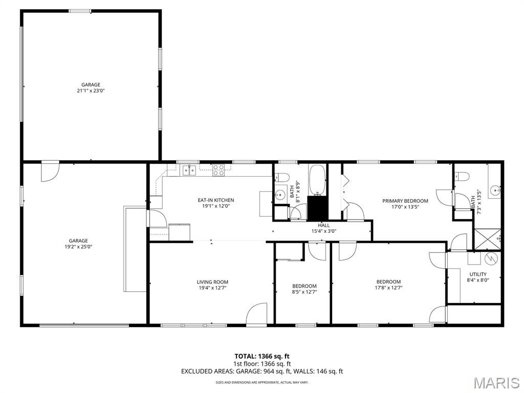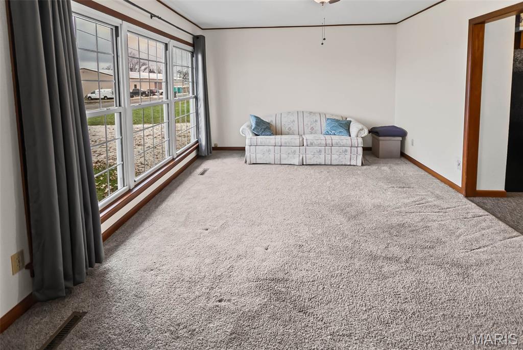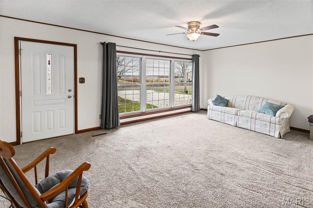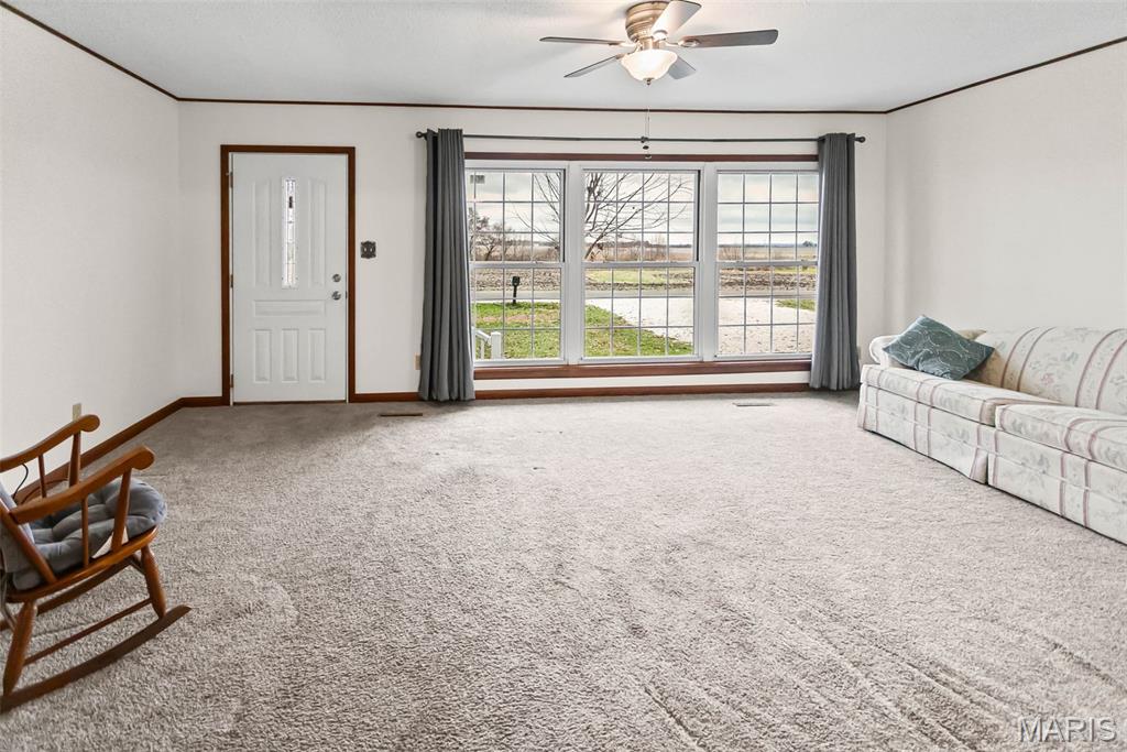 Welcome to this inviting three-bedroom, two-bathroom ranch perfectly situated in an ideal location, close to town while still offering peaceful country views. Enjoy the best of both worlds with convenience and serenity all in one place. This well-designed home features two double-car garages, both attached for easy access and added functionality. Step into the bright and spacious living room, where huge windows fill the space with natural light and create a warm, welcoming atmosphere. The open floor plan flows seamlessly into the eat-in kitchen, offering generous cabinet space and plenty of room for cooking, dining, and gathering. Two of the bedrooms are very large, providing ample space for furniture, relaxation, or a versatile setup to suit your needs. The convenience of main-floor laundry adds to the home’s practical layout and everyday ease. Whether you’re looking for comfort, convenience, or room to grow, this home checks all the boxes. Don’t miss your chance to make it yours!