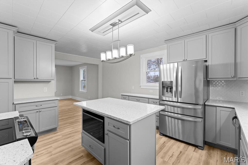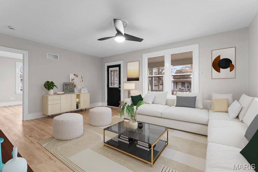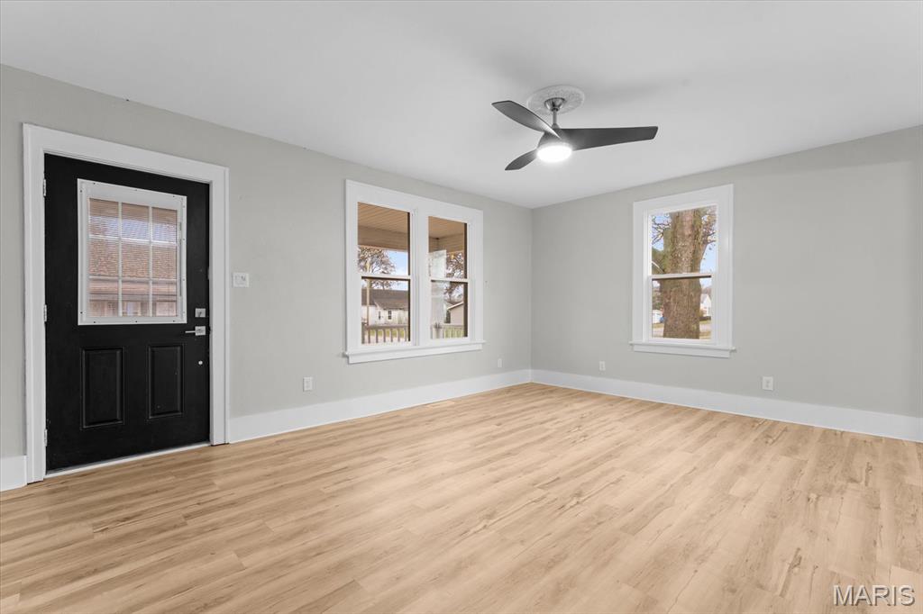****Back on the market no fault of the sellers.**** Don't miss your chance at this 3 bed 3 bath 1 1/2 story corner lot home in the heart of Trenton. The home went through a total makeover in 2023. Main and upper floor give a whole new flow. Main floor now has a primary suite with dual sinks, updated shower, water closet, & a walk in closet. The kitchen has a totally new look as well. All new cabinets, counters, & appliances. The island holds the microwave and has two sides set up for seating. Off the kitchen is a half bath and a closet that is set up for stackable washer/dryer. Upstairs you are welcomed to a foyer. From there you can get to the 2 other bedrooms, a bonus room, & a bath. Before the remodel there was a 3rd upper bedroom. This bedroom was split down to add a 3/4 bath in the upper floor and a borderline minimum size could almost be a 4th bedroom that would make a great office, game room, or maybe a hobby room. Downstairs is an unfinished space great for storage. There you will find the water heater and furnace that were both replaced in 2023. Next to the second set of laundry hookups there is door that leads to the backyard cellar style. Final boxed in room is home to a toilet and a sink. The bathroom doesn't appear to be finished up to code as it is. But with some updating it could make for the 4th finished bathroom. Outside the home you get a covered front porch, covered back porch, a raised deck patio area, fenced in back and side yard, even a working pump well. The electric was updated during the remodel along with the plumbing and new windows. Come see this one in for your tour to enjoy all these updates with your own eyes.