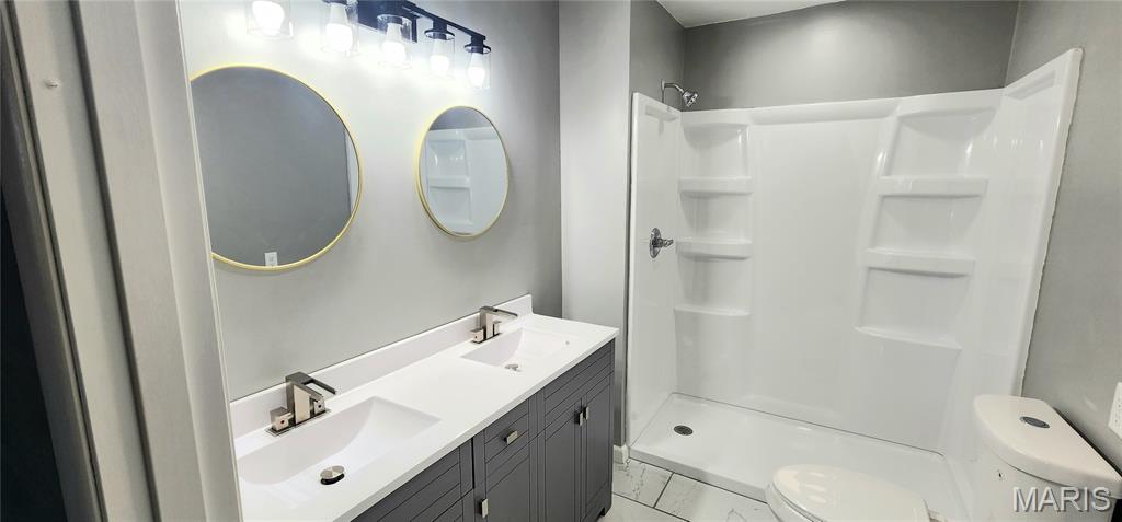 Move-in ready! Everything is shiny & new! This 3-bed, 2 1/2 bath home has been renewed and beautifully updated with modern colors and finishes. New lighting fixtures throughout and recessed lighting added in the open floor plan kitchen/dining/living room. New stainless appliances (never been used). The fireplace is decorative only but very well done as a great focal point. Check out the 3x9 walk-in pantry off the kitchen. Upstairs you have 3 updated bedrooms and 2 full baths. The primary bedroom has a walkout to the big covered front porch. Full partially finished basement with walk-out. Laundry room is in basement. A 24x40 pole barn sits on the 1/2 acre lawn. This one has rural privacy and within 10 minutes of downtown Marion. Call for a showing today! Don't let this one get away.