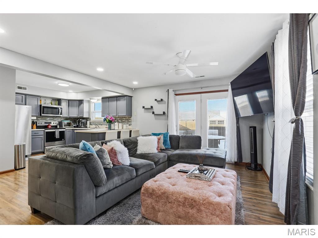 FABULOUS TOWNHOME IN VERY CONVENIENT LOCATION!! CLOSE TO SHOPPING, CHURCHES & SCHOOLS. CLOSE HIGHWAY ACCESS MAKES FOR EASY COMMUTE TO ST. LOUIS. UNDER 5 MILES AND 10 MINUTES TO SCOTT AFB. HOME HAS BEEN TASTEFULLY RENOVATED WITH NEUTRAL COLOR TONES. TRENDY NEW LIGHTING, RECESSED LIGHTING & CEILING FANS. ALL NEW LVP THROUGHOUT. OPEN FLOOR PLAN OFFERS MANY OPTIONS. LIVING ROOM BLENDS INTO FORMAL DINING AREA. **GAS FIREPLACE DOES NOT STAY.**WELL APPOINTED KITCHEN HAS LOADS OF COUNTERSPACE AND SS APPLIANCES. BREAKFAST BAR HAS SEATING FOR THREE. BREAKFAST AREA IS CURRENTLY USED AS FAMILY/TV ROOM. ATRIUM DOORS LEAD TO PATIO AND FENCED YARD WITH NEW PRIVACY FENCE. THERE'S ALSO A HANDY 1/2 BATH ON MAIN LEVEL, AS WELL AS MAIN FLOOR LAUNDRY. UPSTAIRS YOU WILL FIND 3 SPACIOUS BEDROOMS FRESHLY PAINTED W/NEW LIGHTING. HUGE PRIMARY SUITE WITH NEW SHOWER.. TWO REMAINING BEDROOMS ARE LARGE TOO. NEW ROOF IN 2023. HOME HAS TWO CAR ATTACHED GARAGE AND IS SITUATED NEAR THE END OF STREET WHICH AFFORDS A DEGREE OF PRIVACY AND VERY LOW TRAFFIC. BEAUTIFUL LANDSCAPING. THIS HOME HAS IT ALL!! START PACKING NOW!!