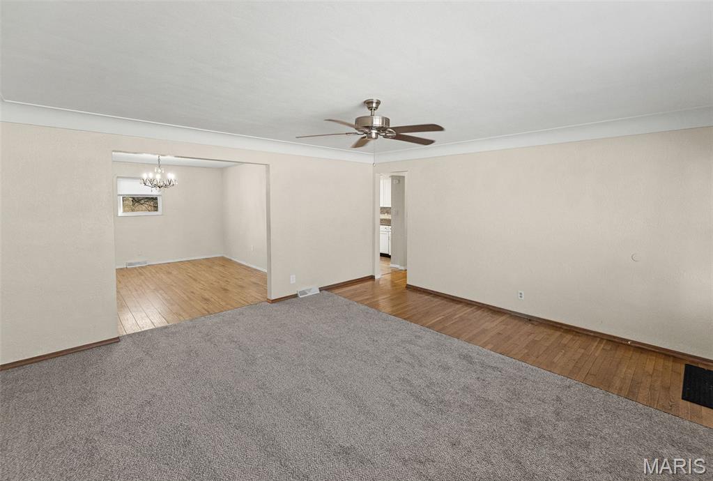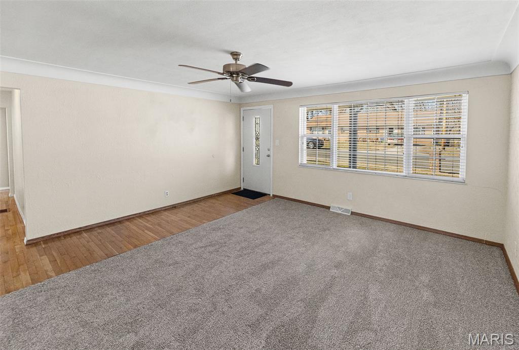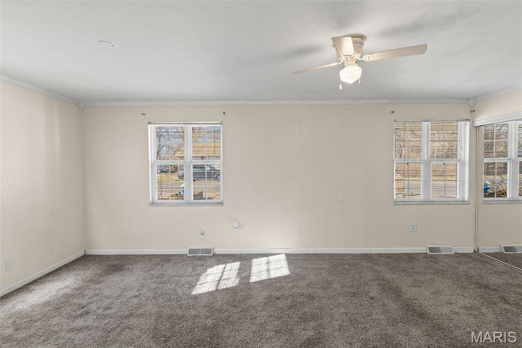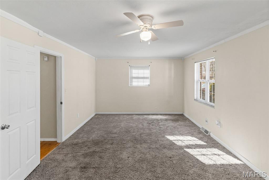 This charming 2 bedroom, 2 bath, brick ranch home, which beautifully sits on a double lot, blends comfort and style. A nice size den, which has new carpeting, and dining room create an open and inviting space. Down the hallway, you will enter into your oversized primary bedroom. The hall bathroom has been updated with a walk-in shower. Downstairs, you will find an additional room, a full bath, plenty of storage and a spacious recreational room. Enter outside from the walkout basement and enjoy peaceful surroundings with an oversized deck. Home has passed Occupancy. This property includes the lot next to the home as well as an additional lot across the street, offering exceptional value and space.