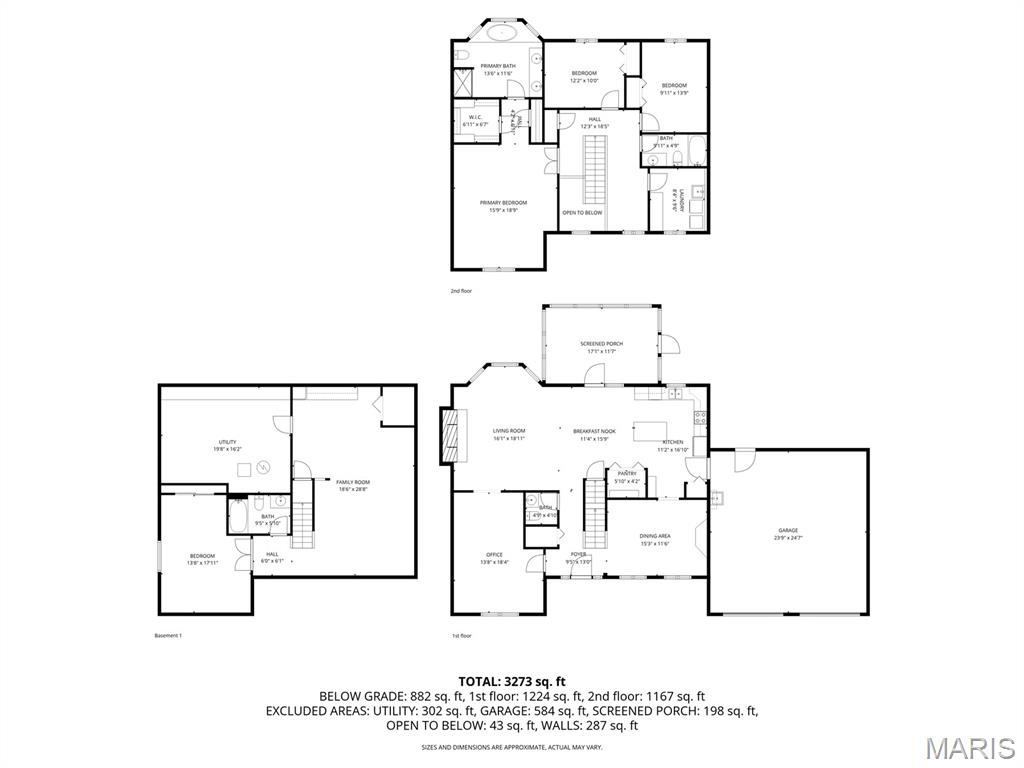 Welcome home to this beautiful 2-story with a finished basement and an incredible fenced backyard featuring a large inground saltwater pool. The bright, airy main level offers a 2-story entry, office/bonus room, and formal dining room. The open kitchen/living area includes custom cabinets, a walk-in pantry, island, kitchen appliances that stay, and a brick wood-burning fireplace. A screened porch off the kitchen is perfect for entertaining while enjoying the scenic backyard. Upstairs you'll find a spacious laundry room, two bedrooms, and a large primary suite with a walk-in closet plus an additional closet, double vanity, and separate tub and shower. The finished lower level provides even more living space and a 4th bedroom. Located on a quiet street with unique homes and just minutes from 159 for easy highway access. Oversized 2-car garage, no HOA, and a NEW furnace and AC in 2024!