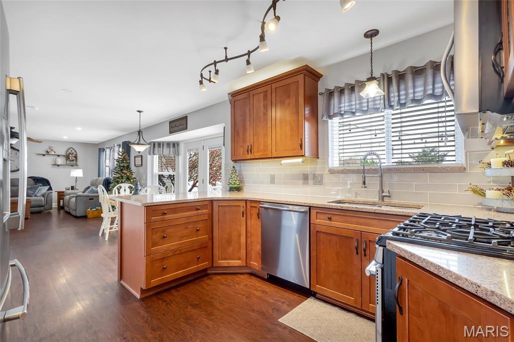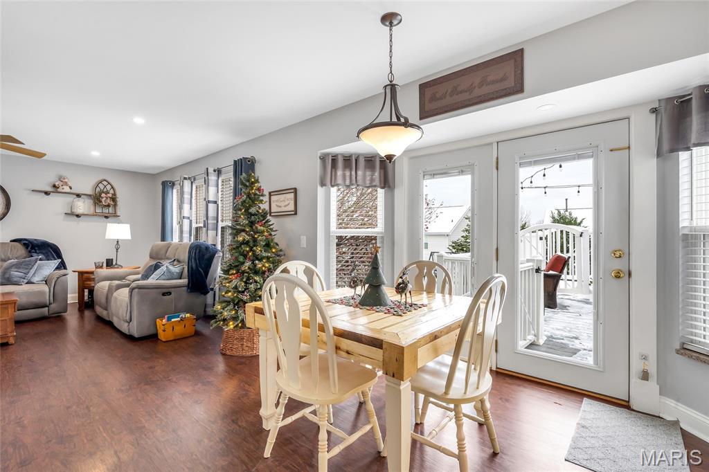 Step into WOW! This gorgeous 3-bedroom, 2.5-bathroom home got a full exterior glow-up this summer with modern vertical siding, a new roof and gutters, and custom vinyl shutters. Fresh porch posts complete the perfect farmhouse vibe. Out back, enjoy your own private oasis featuring raised garden beds, a koi pond, and a 12x14 deck leading to your personal pool—bursting with life and absolutely ready for new owners to fire up the grill and unwind. Inside, the kitchen was beautifully refreshed in 2017 with rich cabinetry, granite countertops, and a spacious walk-in pantry. Durable waterproof, pet-proof vinyl plank flooring runs throughout the entire main level and up the stairs, where you’ll find custom spindles adding an extra touch of charm. The upper level features a fabulously updated laundry room complete with a stacked washer and dryer and a utility sink. The lower level offers even more flexibility with a second full bathroom, a nonconforming bedroom, and additional entertaining space. This home is lovingly updated, move-in ready, and truly a must-see for all!