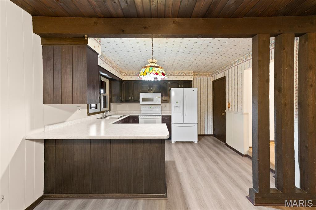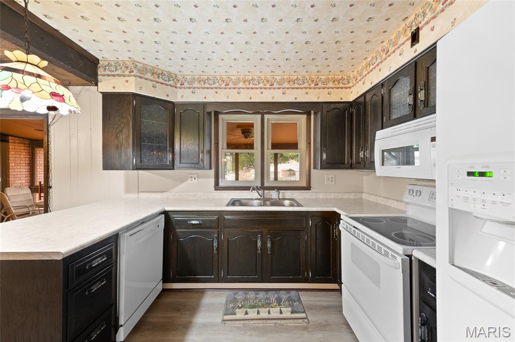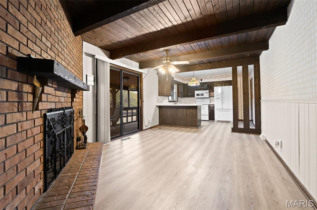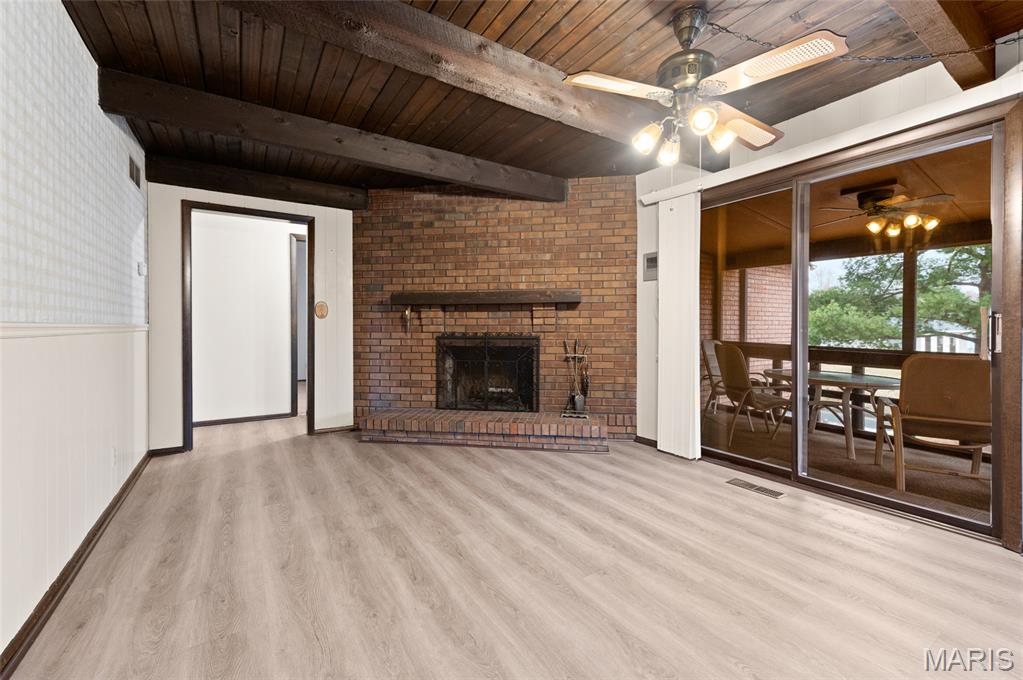 Just a block from the golf course ! Come take a look at this spacious 4 bed & 2 bath full brick home. It has a very large kitchen with a fireplace. Lower level walk out has a family room with a second fireplace. Large living room/dining room combo. Beautiful covered porch overlooking the lake, that you can access from the kitchen or master bedroom. The lower level walks out to a patio for you to enjoy. Definitely a great home to entertain your family and friends. Also it's close to the interstate. All appliances stay.