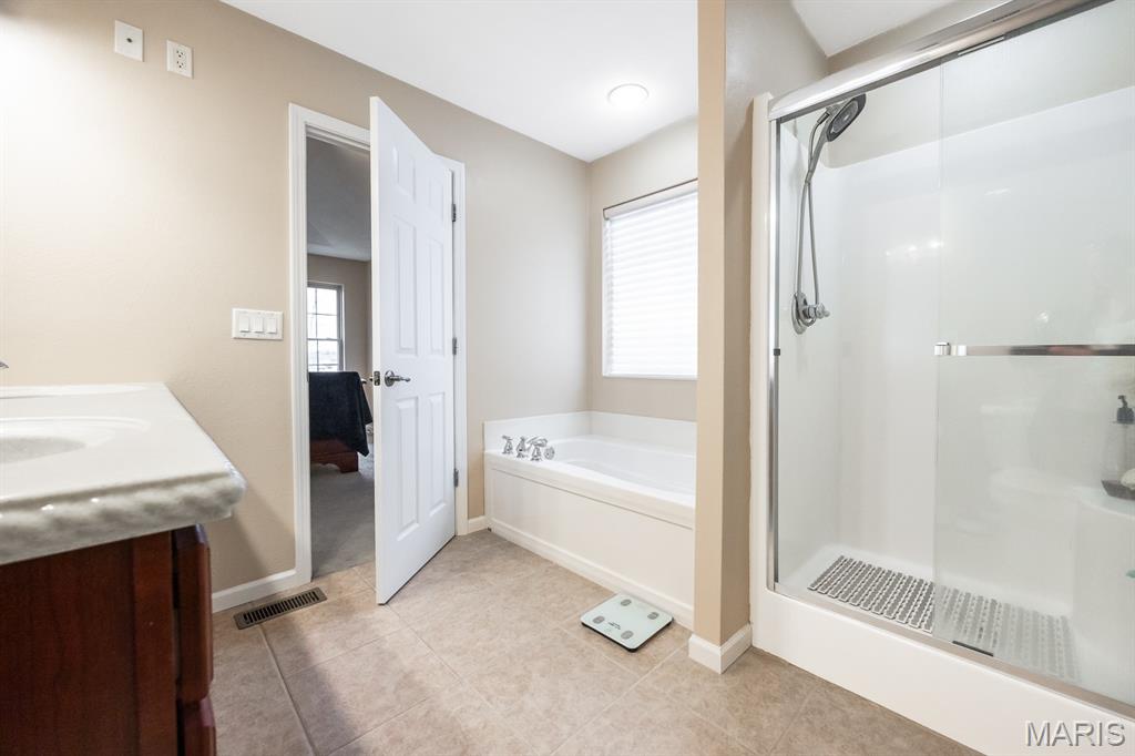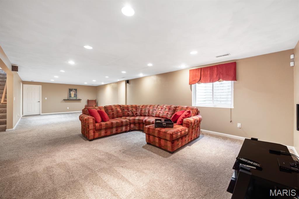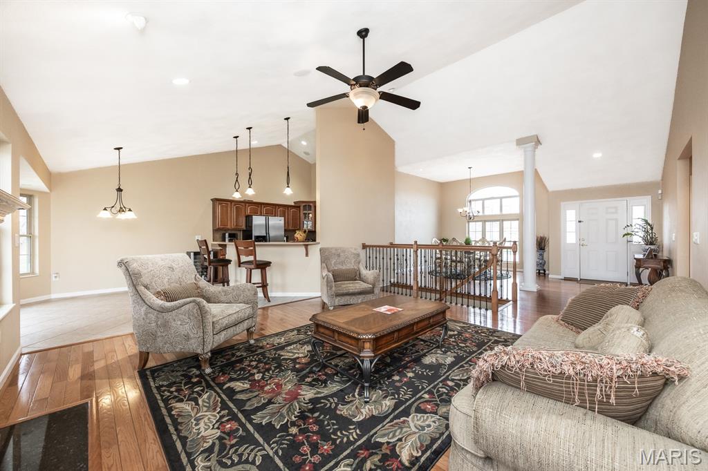 Spacious open floor plan ranch home in the Mascoutah School District! Featuring a vaulted great room with gas fireplace and a formal dining room - perfect for gatherings. The eat-in kitchen offers a tile backsplash, breakfast bar, pantry and patio door to the backyard! Enjoy the privacy of a split bedroom layout with the primary suite on one side of the home and the other two bedrooms on the opposite side. The primary suite offers a tray ceiling, walk-in closet and en-suite with dual sinks and soaking tub. The full basement is finished with a large family room, new carpet, a 4th bedroom and an additional full bath-ideal for guests, teens or a home office. There is still plenty of room for storage as well! Fresh paint throughout. MUST SEE!