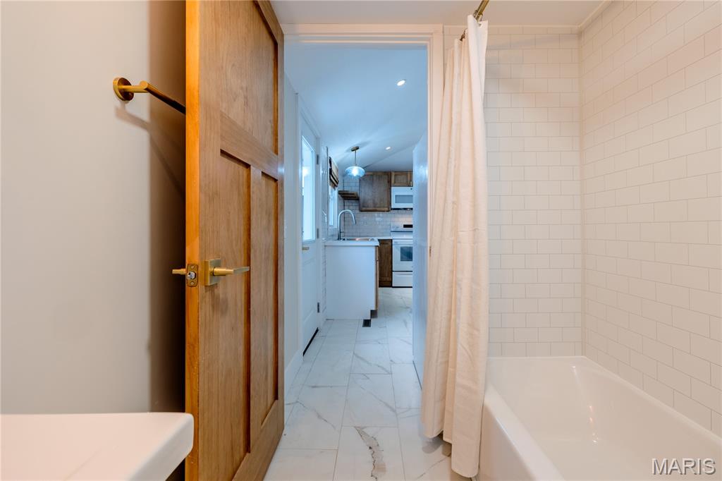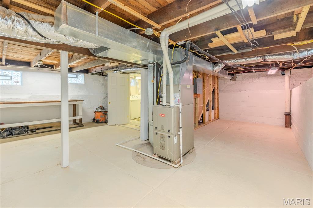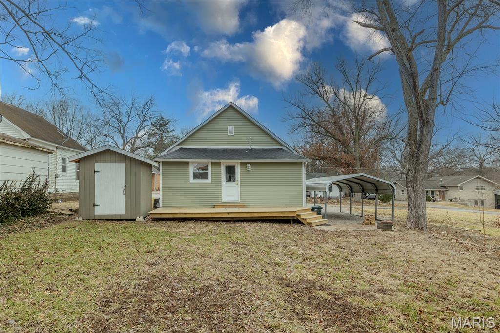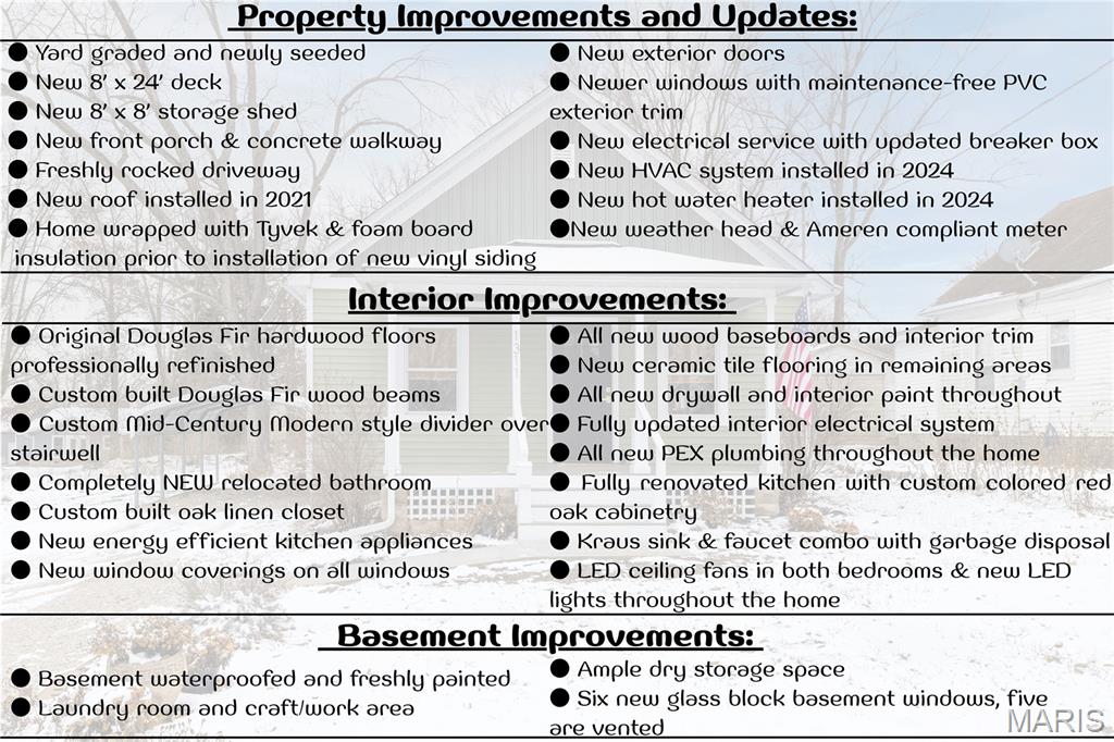 MOTIVATED SELLER made a PRICE IMPROVEMENT on this listing! Completely remodeled from the ground up, this stunning historic home with a Mid-Century Modern feel, lives like a brand new build. Every inch of the property has been thoughtfully renovated inside and out with high quality finishes and meticulous craftsmanship. Step inside to discover two bedrooms featuring original hardwood flooring that has been beautifully refinished and complemented by gorgeous gold cabinetry knobs, door hardware, and fixtures throughout. Modern styled lighting and ceiling fans enhance the clean, contemporary design. A beautifully relocated full bath improves flow and functionality while maintaining the home’s architectural character. The full bath features a maintenance free, custom surround designed shower that coordinates beautifully with the kitchen’s tiled backsplash, along with a custom linen closet that adds both style and storage. The gorgeous kitchen features a tiled backsplash, a large kitchen sink, and includes all appliances, leaving nothing left to purchase but moving in your personal belongings. The basement has been fully tuck pointed and waterproofed and now includes a newly designed laundry room along with a newly added interior entryway that provides modern convenience and everyday practicality. Outside, the transformation continues. The yard has been professionally graded and freshly seeded and is already showing new growth. Enjoy outdoor living on the newly constructed back deck or unwind on the completely rebuilt front porch deck, where a new concrete sidewalk creates an inviting approach to the front entrance. A new storage shed off the rear deck is perfect for yard and gardening items. Additional upgrades include new electrical, plumbing, water heater, HVAC, windows and roof. With every major system replaced and every detail refined, this home offers the comfort and confidence of new construction at an exceptional value. Move in ready, beautifully styled, and priced to sell, this is Mid Century Modern living at its finest.