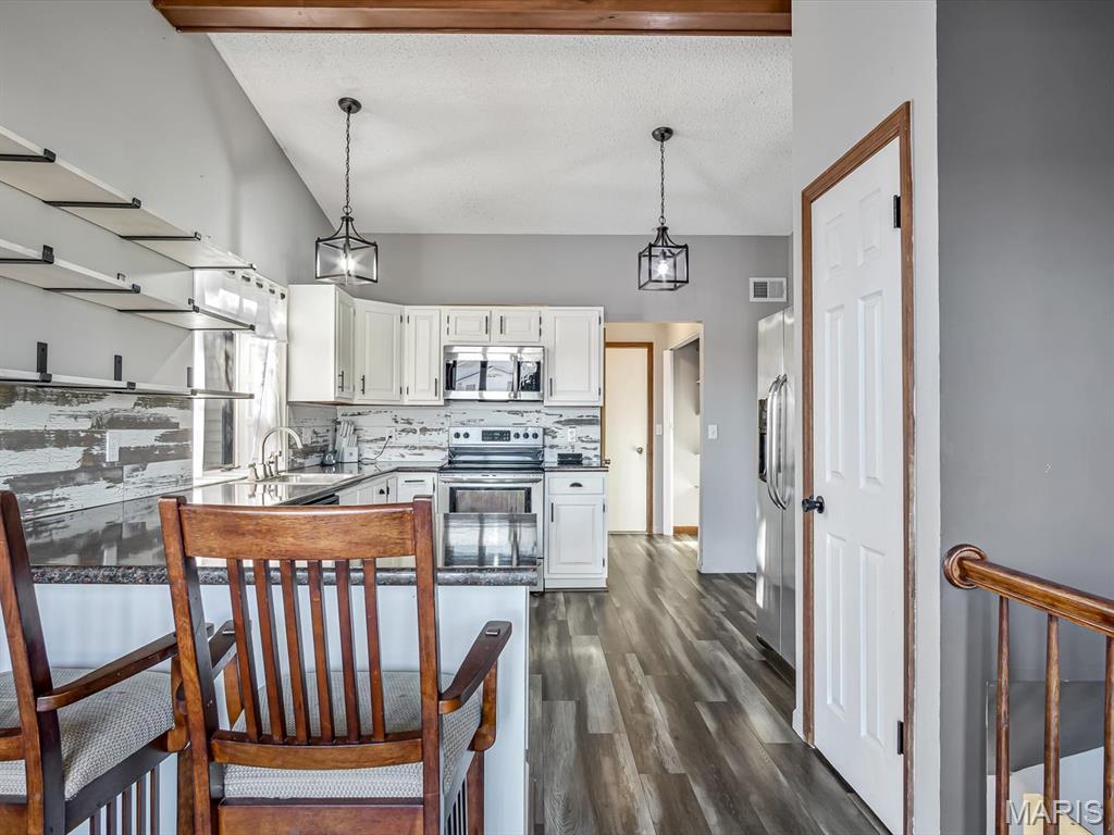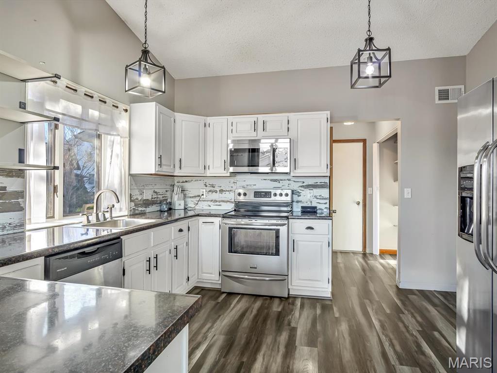 Welcome to this spacious and well-appointed 4 bedroom, 3 bathroom home offering 3,426 square feet of versatile living space, perfectly positioned on a quiet cul-de-sac in the Parkwood Estates neighborhood. From the moment you step inside, you’ll love the open feel of the large living room with vaulted ceilings and a brick wood-burning fireplace insert, ideal for cozy nights or entertaining guests. A formal dining area adds flexibility for hosting gatherings or holiday meals. The eat-in kitchen is both functional and inviting with a breakfast bar, wall shelving, and a pantry conversion that adds extra storage. An updated main-floor laundry room includes a washer and dryer that stay with the home. The walk-out lower level is a standout feature, offering a generous family room, entertainment space, a fourth bedroom, and a bathroom with a separate shower and jetted tub. Plenty of unfinished space provides excellent storage, and a utility shed adds even more convenience. Located in close proximity to Waterloo schools, some within walking distance, this home combines space, comfort, and a prime location!