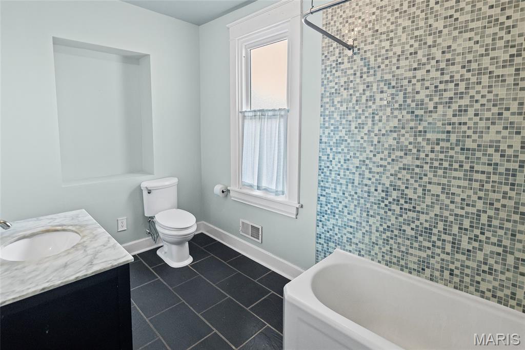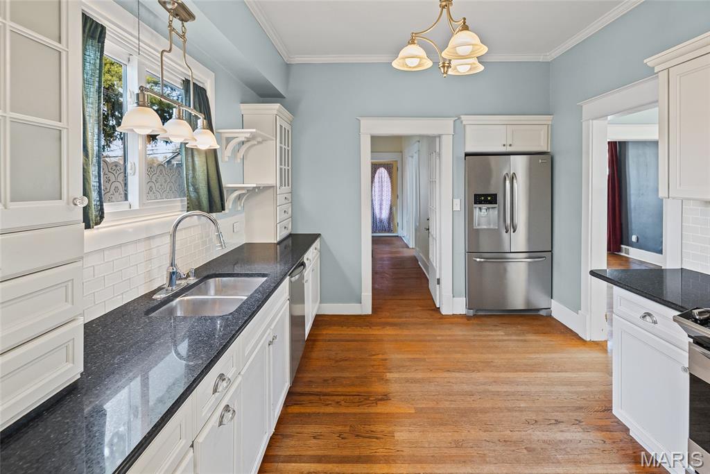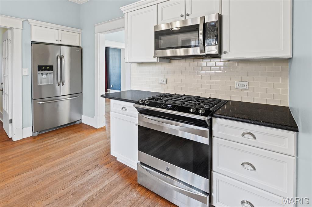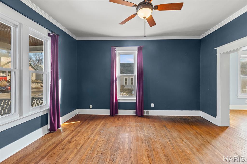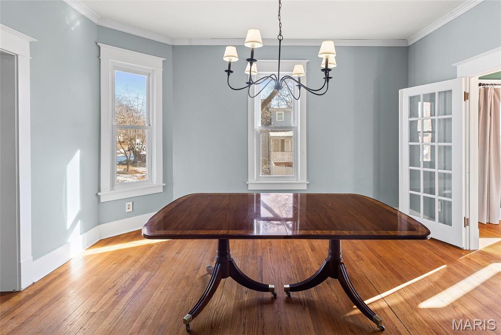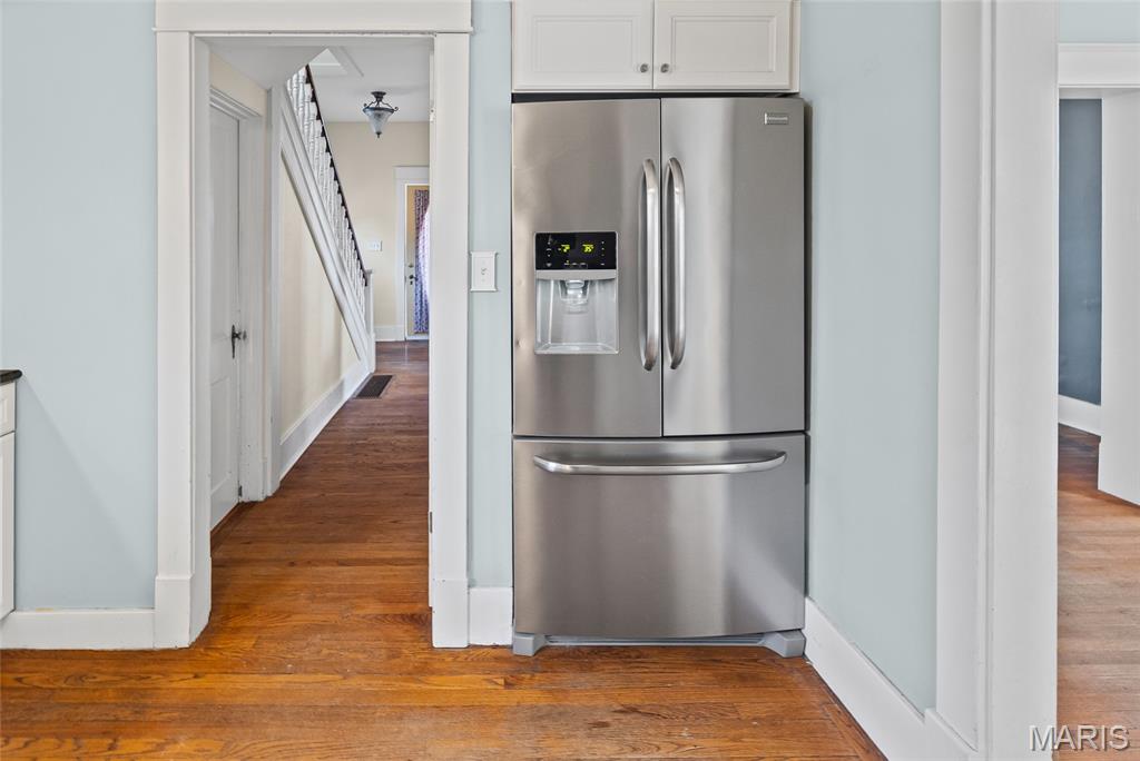 Step into timeless character and modern comfort in this beautifully preserved 1905 historic home in the heart of Alton. Featuring 3 bedrooms and 2 full bathrooms, this home blends original charm with thoughtful updates throughout. Stunning original hardwood floors flow through the home, complemented by large newer windows that flood each space with natural light. The updated kitchen is a true highlight, showcasing crisp white cabinetry, quartz countertops, stainless steel appliances including a gas range, and a classic subway tile backsplash. The main level offers a spacious living room with a cozy gas fireplace, formal dining room, updated kitchen, full bathroom, and a comfortable family room that opens directly to the expansive deck—perfect for entertaining or relaxing outdoors. Upstairs you’ll find three bedrooms, a second full bath, and a primary suite with an attached bonus room ideal for a home office, sitting area, or nursery. A large second-floor laundry room adds everyday convenience, with washer and dryer included. Outside, enjoy the rare 3/4-acre lot with a fenced backyard and oversized deck overlooking the peaceful setting. HVAC replaced in 2023. This is a special opportunity to own a historic home with modern upgrades, abundant space, and a beautiful outdoor retreat—don’t miss it!