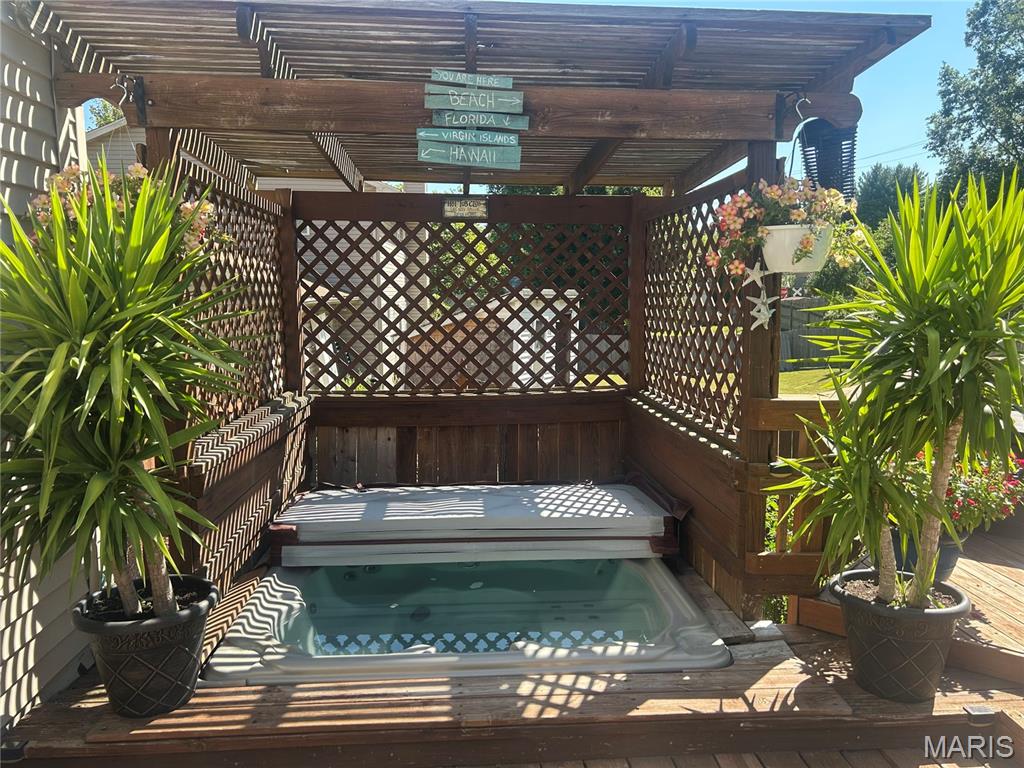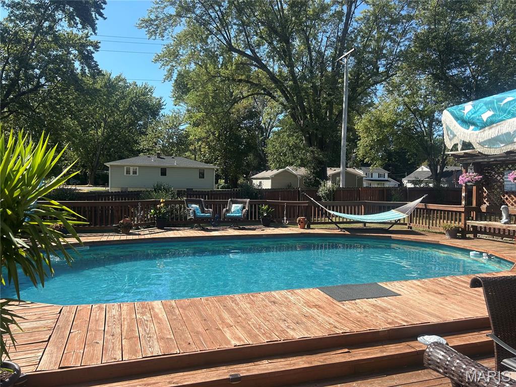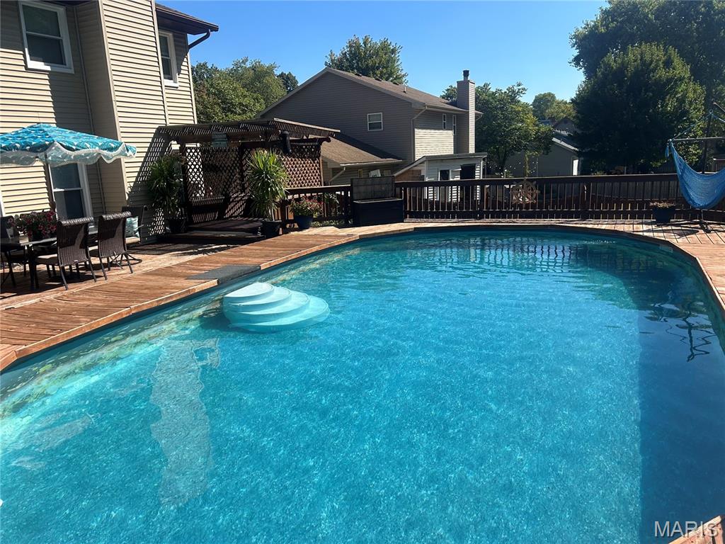 First time on the market in 31 years and this Collinsville 2-story with POOL, SPA, and FULL basement shows true pride of ownership throughout! Updates begin outside with a stamped walkway leading to an updated front door and a welcoming porch. Perfect for morning coffee! Inside, newer LVP flooring spans the main level. A formal dining room sits to the right of the entry, with a formal living/sitting room to the left. The family room offers a cozy wood-burning fireplace and the remodeled kitchen ~2019 features newer cabinetry, granite countertops, and all matching stainless steel appliances. Step out back to the standout entertaining space: a large deck that wraps around your private pool and hot tub. The pool liner and pump were replaced about ~2 years ago, and the hot tub is also roughly ~3 years old, with a recently replaced motherboard. The main level also includes a powder room, laundry room, and a HUGE oversized garage 29' deep 20' wide with a pull out ladder for additional attic space. Upstairs, the spacious primary suite offers vaulted ceilings, a walk-in closet, and an updated ensuite bath with double vanity, linen storage, and a newer shower. An additional updated full bathroom serves the remaining three bedrooms—one of which includes a walk-in closet. The full basement provides abundant flex space along with generous storage and a cedar closet. Major exterior and mechanical updates include a new roof, siding, soffit, fascia, and gutters with gutter guards in 2019, plus all new windows installed in 2023. Schedule your showing today!