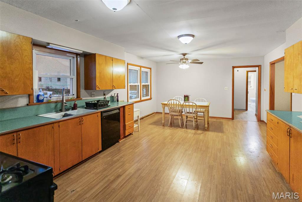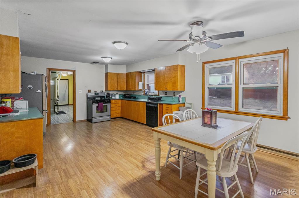 Charming Brick Ranch on a Corner Lot in Pleasant Hill! This well maintained brick ranch sits on two parcels and offers the perfect blend of character, updates, and easy main level living. Located on a spacious corner lot, this home features 2 bedrooms, 1 beautifully updated bathroom, and original hardwood floors that add warmth and charm throughout. You'll love the oversized kitchen and dining room combo, providing plenty of room for family gatherings, cooking and entertaining. Off the kitchen, the oversized one car garage is connected by a generous utility room complete with laundry hookups, utility sink, and a second shower - a great bonus for convenience. Recent upgrades include a new electric panel and new hot water heater, giving peace of mind to the next owner. Outside, the large yard offers room for a garden, pets, or outdoor relaxation. Home could pass for all loan types with minimal repairs. This solid brick home has been lovingly cared for and is move in ready. Don't miss your chance to own a great property on a large corner lot!