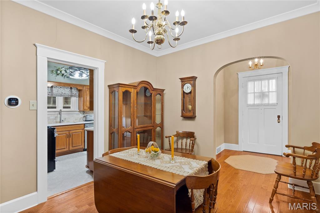 This meticulously maintained home on coveted S. Douglas Street in the McKinzie Place neighborhood offers timeless charm and thoughtful updates. Featuring three bedrooms and beautiful hardwood floors, arched doorways leading into a foyer, a unique fireplace, and glass doors that open to a stunning three-season room. The three-season room is surrounded by three walls of glass windows, creating a bright and relaxing space to enjoy throughout much of the year. The updated kitchen includes a cozy breakfast nook—perfect for morning coffee. Two bedrooms are located on the main floor, while the upper level offers two additional rooms that could be used as a bedroom and sitting area, home office, or flex space. Outside, the backyard includes a fenced area, a one-car garage, and a carport. The unfinished basement provides ample storage and includes a laundry area, canning room, and workshop. A wonderful opportunity to own a character-filled home in a highly desirable neighborhood. You don't want to miss this well maintained home.