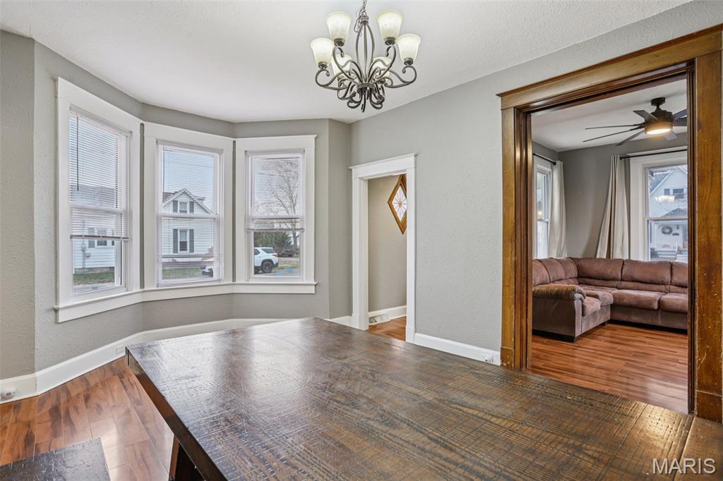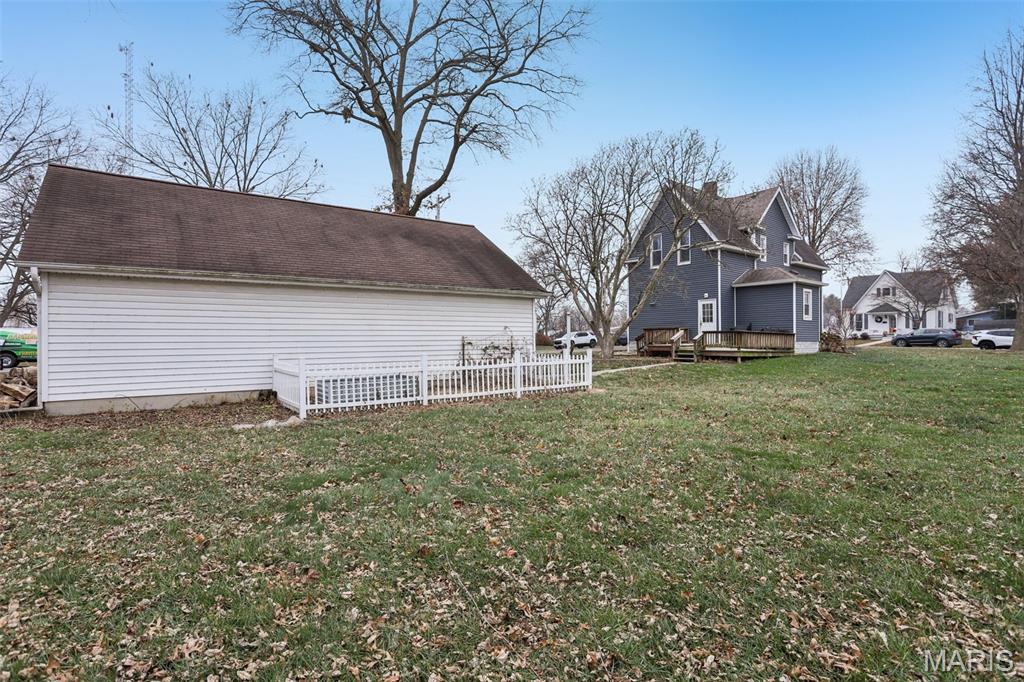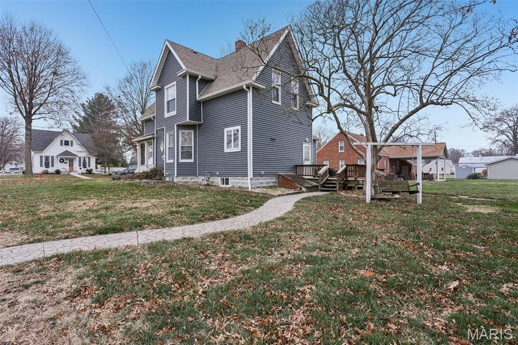 Full of character and everyday comfort, this affordable home blends original charm with practical updates throughout. A covered composite front porch sets the tone, while laminate flooring flows through the living and dining areas, complemented by original stained-glass windows that remain beautifully intact. A solid wood, full-size pocket door separates the living and dining rooms, offering a rare and timeless detail. The kitchen is both functional and inviting with a breakfast bar, gas range, dishwasher, pantry, and a dedicated coffee bar area. The updated bathroom features classic wainscoting and a linen closet, while hardwood flooring remains in select upstairs bedrooms. Major mechanicals include an HVAC system approximately 12 years old and a water heater just 2 years old. The walk-up stone cellar basement provides laundry, storage, and a functional half bath. Outdoor living includes a rear deck overlooking stamped decorative concrete walkways and a backyard highlighted by a mature magnolia tree. The standout feature is the three-car detached garage with electric, offering exceptional space for vehicles, storage, or hobbies. A well-rounded home with character, function, and value—ready for its next chapter.