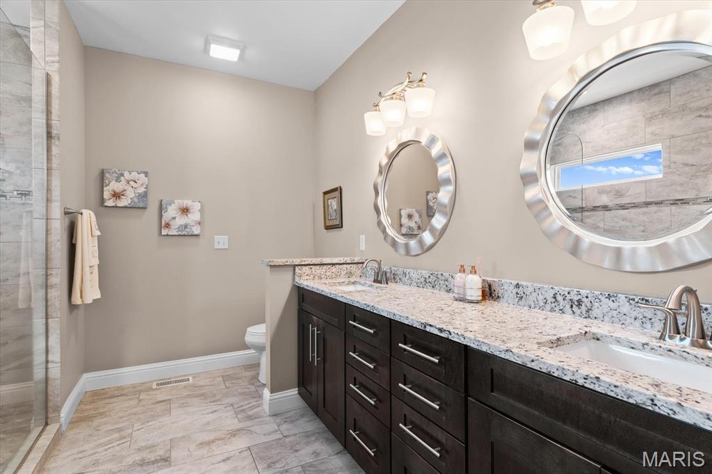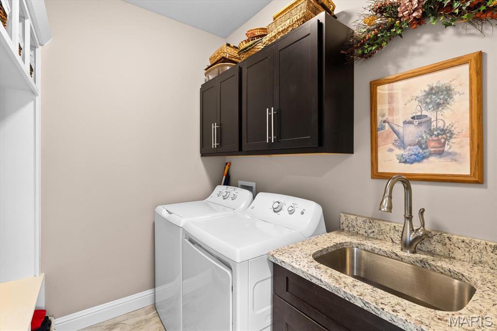 Well planned 4 bedroom, 3 bath one story home with 3 car garage and attractive curb appeal in Stone Gate Estates. This home features a very pleasing color palette in paint, cabinetry, counters, stainless appliances and flooring. Main floor laundry offers ever popular and convenient drop zone, sink and cabinetry. Primary suite boasts coved ceiling, walk in closet and en-suite bath with dual vanity and step in shower. Partially finished walkout lower level offers generous size recreation/family room, bedroom with walk in closet, full bath and plenty of storage space. Before making an offer on any property, buyer should independently verify all MLS data derived from various sources and not warranted accurate.