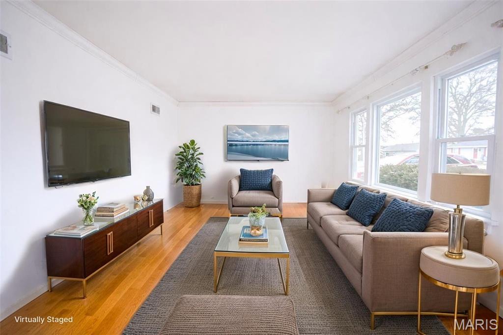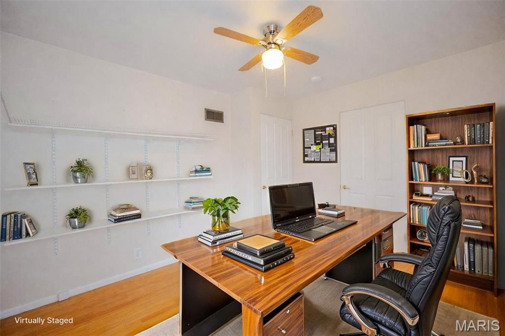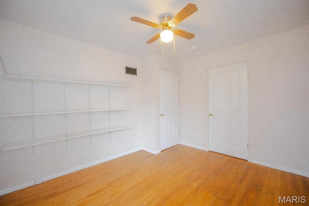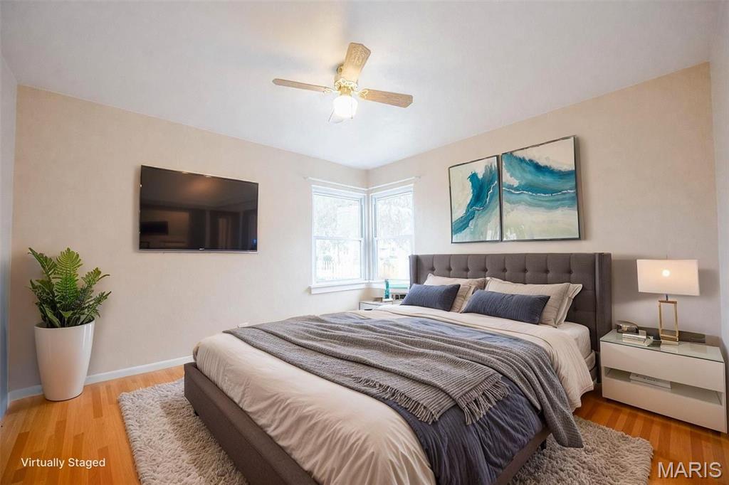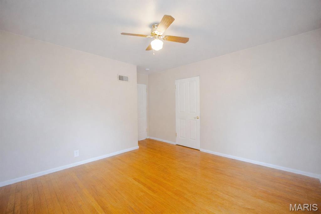 BACK ON MARKET AT NO FAULT TO SELLER!! Charming 2-bedroom, 1-bath home featuring a 1-car garage and a desirable level yard. The interior offers hardwood floors throughout, ceiling fans, and a large living room filled with natural light from oversized windows. One bedroom includes built-in shelving, adding both character and functionality. A great opportunity with comfortable living spaces and classic features.