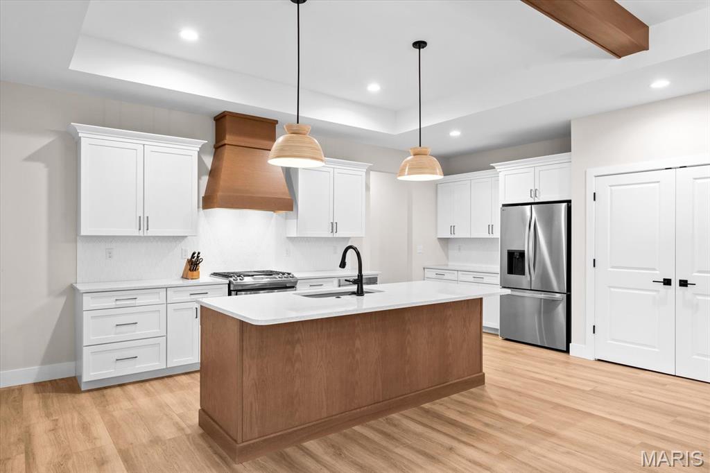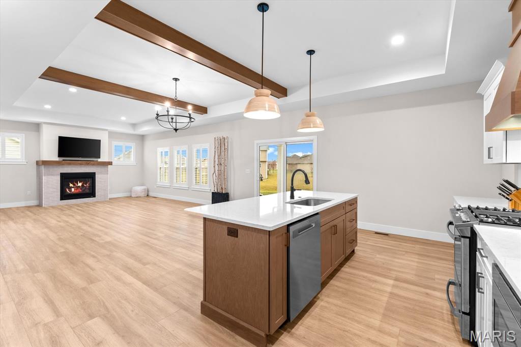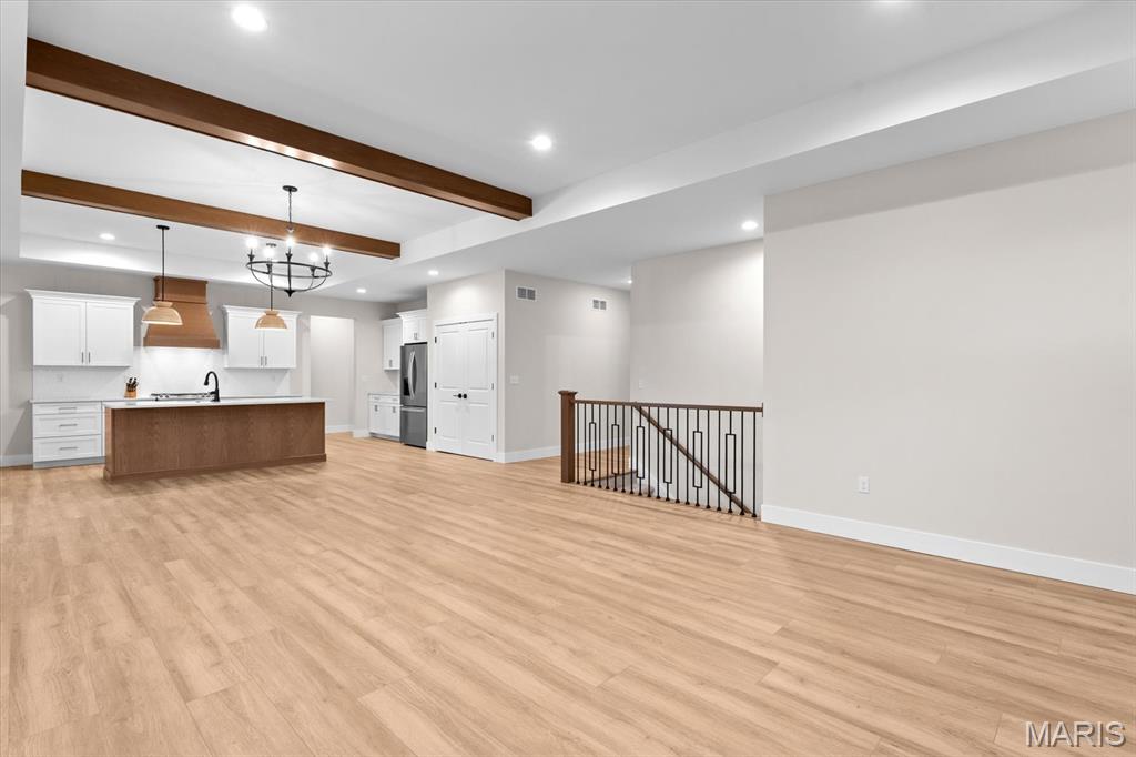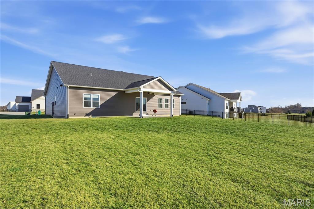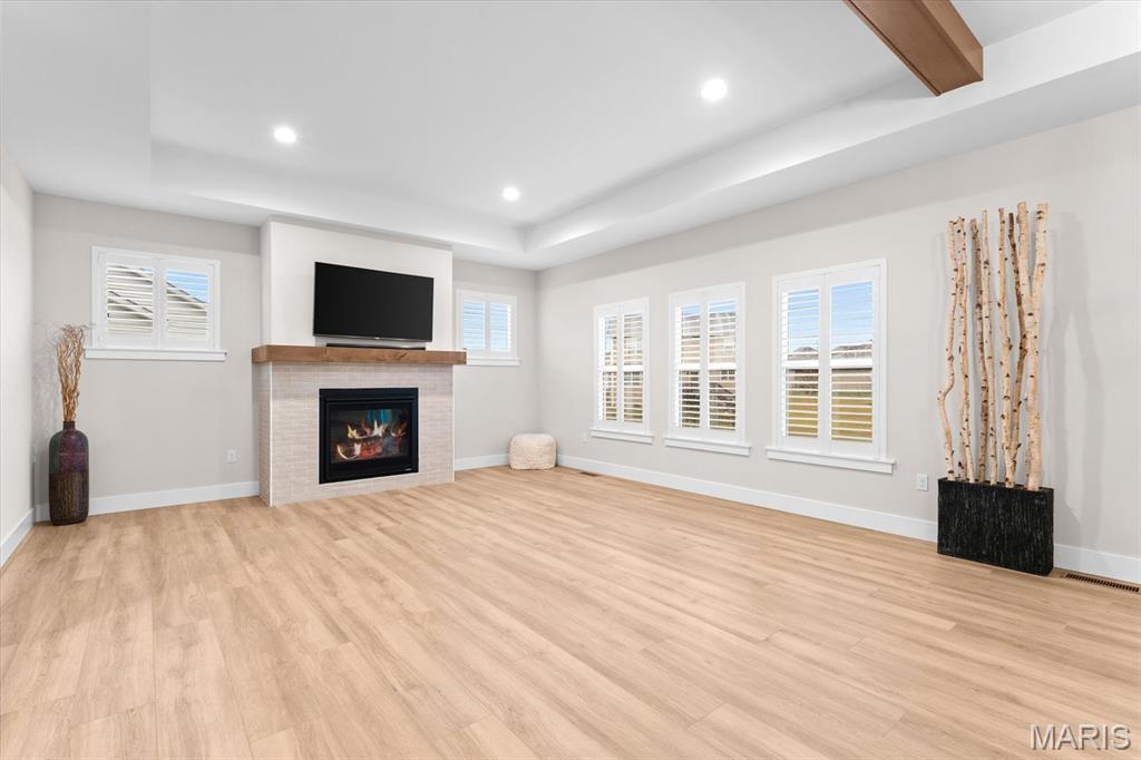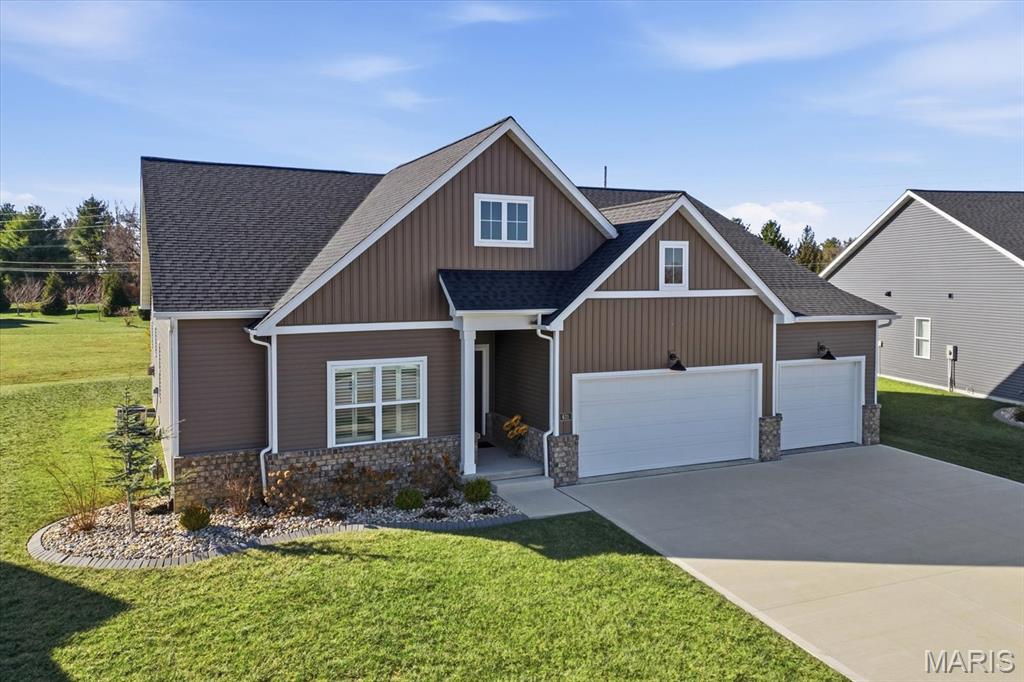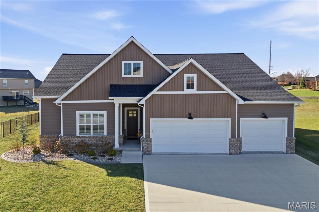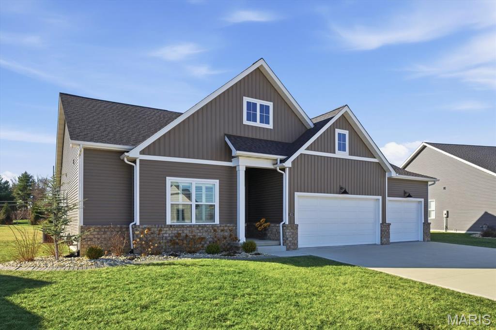 Property will be available again August 1, 2026. Designed for comfortable modern living, this beautifully appointed home offers a spacious open-concept layout that seamlessly blends style and functionality. The inviting living room features a gas fireplace and wood beam accents and flows effortlessly into the gourmet kitchen—ideal for everyday living and entertaining. The kitchen boasts quartz countertops, high-end appliances, a center island, gas range with vent hood, and a walk-in pantry. The primary suite provides a private retreat with a walk-in closet and an en-suite bath featuring a double vanity and tiled shower. Secondary bedrooms are generously sized. The finished lower level adds valuable living space with a large family room, fourth bedroom, full bath, and ample storage. Conveniently located near interstates, shopping, dining, and Scott AFB.
