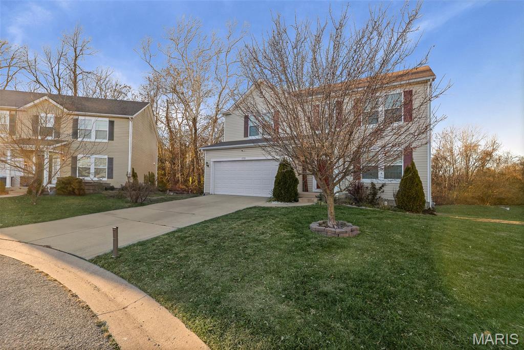 Welcome to 1733 Lombardi Court, located in the sought-after Willow Walk subdivision! Ideally situated near shopping, highway access, public transit, and Scott Air Force Base, this home offers space, comfort, and exceptional value—all tucked away on a private cul-de-sac lot with natural tree-lined views. Move right into this spacious 3400 square foot, two-story home offering 4 bedrooms and 4 baths, thoughtfully designed with plenty of room to live, work, and play. The inviting front foyer opens to a private office/den and a formal dining room; both filled with natural light and ideal for everyday living or entertaining. These spaces flow seamlessly into the fully equipped eat-in kitchen featuring a pantry, center island, and breakfast area, which opens to the expansive family room with a cozy gas fireplace and access to the back deck—perfect for gatherings. The main level is complete with a powder room and a large laundry room for added convenience. Upstairs, the generous primary suite features an exceptionally large walk-in closet—sizes they simply don’t build anymore—and a private ensuite bath with double vanity, separate shower, and garden tub. Additional bedrooms offer walk-in closets, while the spacious loft provides flexible space for a second family room, lounge, or play area. The fully finished walkout lower level adds even more versatility, offering additional gathering space, a bonus room ideal for a guest bedroom, home gym, or office, a full bath, and access to a covered patio—perfect for relaxing or entertaining. You’re getting so much home for the value—features that would cost thousands to build today. Photos don’t do this space justice; you truly have to see it to believe it. Call your favorite REALTOR® and experience the value for yourself—EVERYONE in this home has their own space.