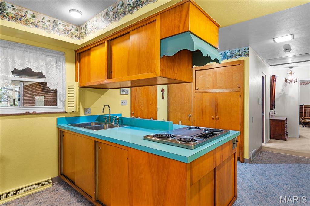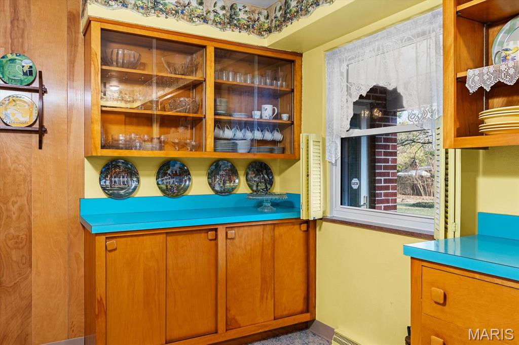 Appreciate the charm and character of this full brick Mid-Century Modern home, featuring a kitchen that proudly showcases its original components. From the warm wood cabinetry and distinctive island to the vintage color palette and retro details, this kitchen is a true time capsule—perfect for those who appreciate authentic design or dream of restoring a classic to its full glory. The home offers 2 large bedrooms and 1 full bath, a spacious living room with a fireplace, and a large sunroom filled with natural light, creating inviting spaces for both relaxing and entertaining. Situated on a double lot, the property also includes a 2-car garage and ample outdoor space with endless potential. With all original features intact, this solid full-brick home provides an incredible opportunity—with a little work, it could be absolutely stunning. Whether you choose to preserve the Mid-Century character or blend it with modern updates, the possibilities are endless. Located in the desirable east end Chenot Place neighborhood, you’ll enjoy convenient access to shopping, dining, and Scott AFB.