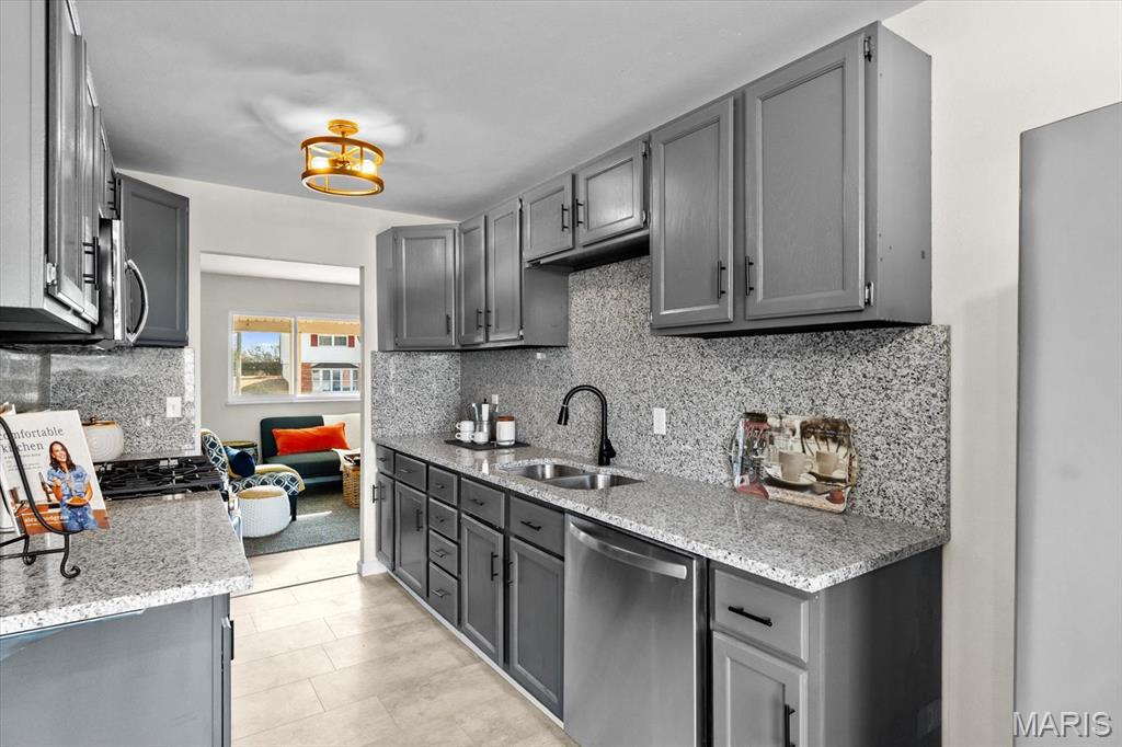 Welcome to 33 Potomac Drive in Fairview Heights! A well-maintained and thoughtfully updated residence offering both functionality and charm. The main level features a spacious living room, three comfortable bedrooms with hardwood flooring, and an updated full bathroom. The kitchen has been refreshed with new appliances, granite countertops, and a coordinating backsplash, providing a clean and modern feel. The unique shotgun-style garage includes exterior access doors and is ideal for a workshop or hobby space while still accommodating a vehicle. The basement expands the living space with finished areas, a large recreation room with bar area, and a refinished bathroom, along with additional unfinished space for storage. Outdoor living is enhanced by a refinished deck overlooking a large backyard, complemented by excellent curb appeal. New light fixtures throughout the residence add a polished touch. The seller is offering a home warranty and will bring the residence to code prior to closing, making this offering truly move-in ready. This is a solid opportunity in an established Fairview Heights neighborhood with convenient access to local amenities and commuter routes.