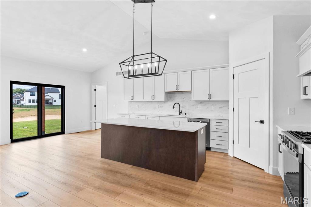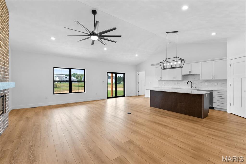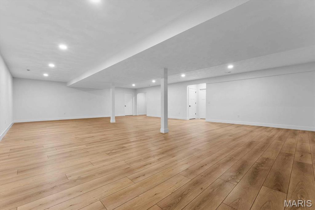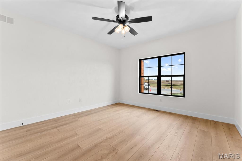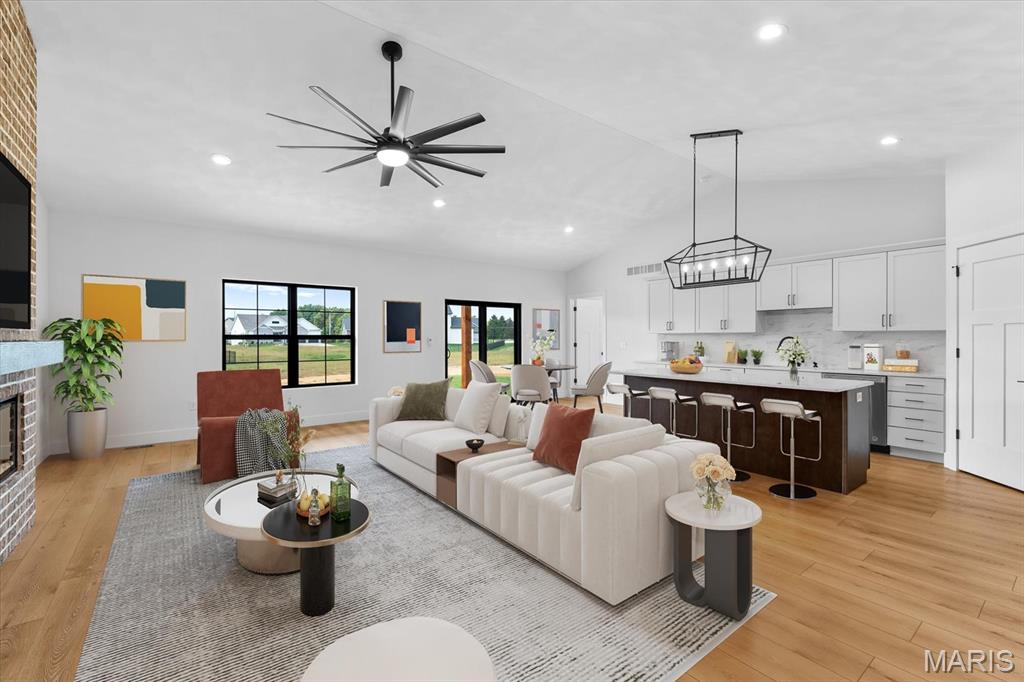 This stunning custom FIR floor plan Built by MJ Holland blends top-tier craftsmanship with premium finishes throughout. The split master suite boasts vaulted ceilings, an oversized walk-in shower, massive closet, and stack linen storage. The open-concept kitchen flows into a spacious family room—ideal for entertaining—with a cozy breakfast nook that leads to an extended covered patio. The main level also offers two guest bedrooms, a full bath, a generous laundry room, and a 3-car garage with 8-ft doors. The full, partially finished basement features 9-ft ceilings, a full bath, a large 4th bedroom, and an oversized entertainment space. Thoughtful upgrades include the massive kitchen island with quartz counter, full brick fire place, 7 ft solid core doors, commercial-grade windows, high-efficiency HVAC, LVP flooring, 8lb carpet pad, and sound insulation in all bedrooms and baths. Nestled in the highly desirable Augusta Greens Subdivision and O'Fallon School District, this home is perfect for modern living and effortless entertaining. Schedule your showing today!