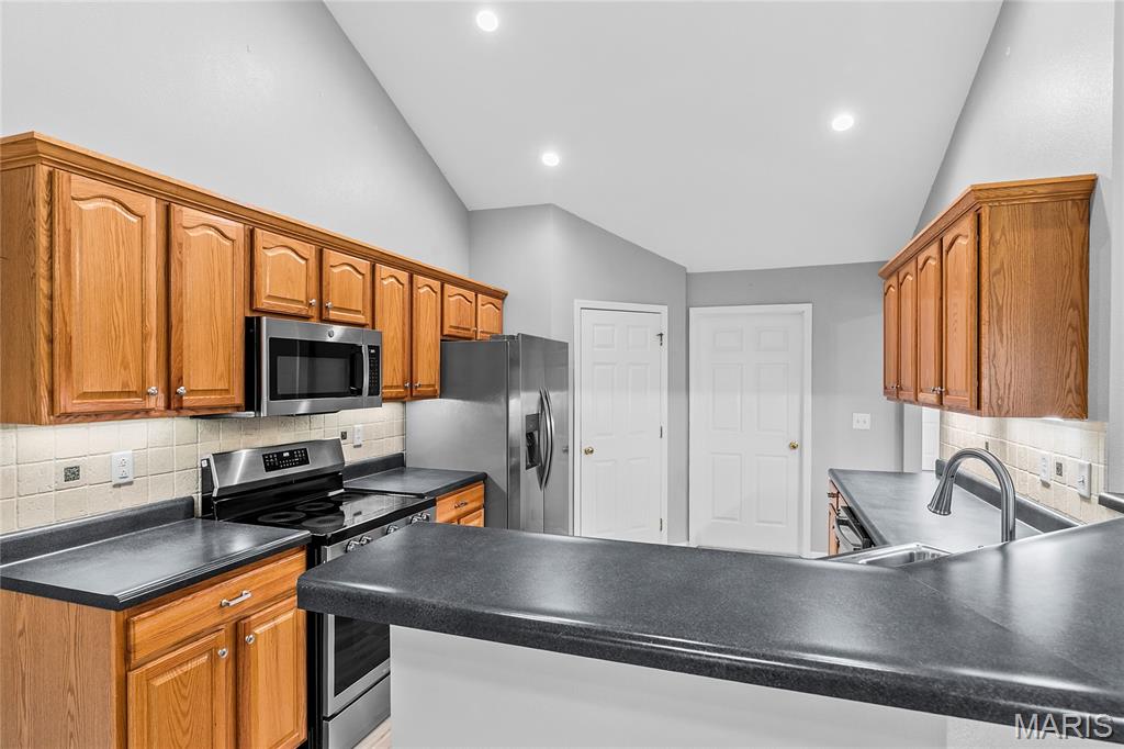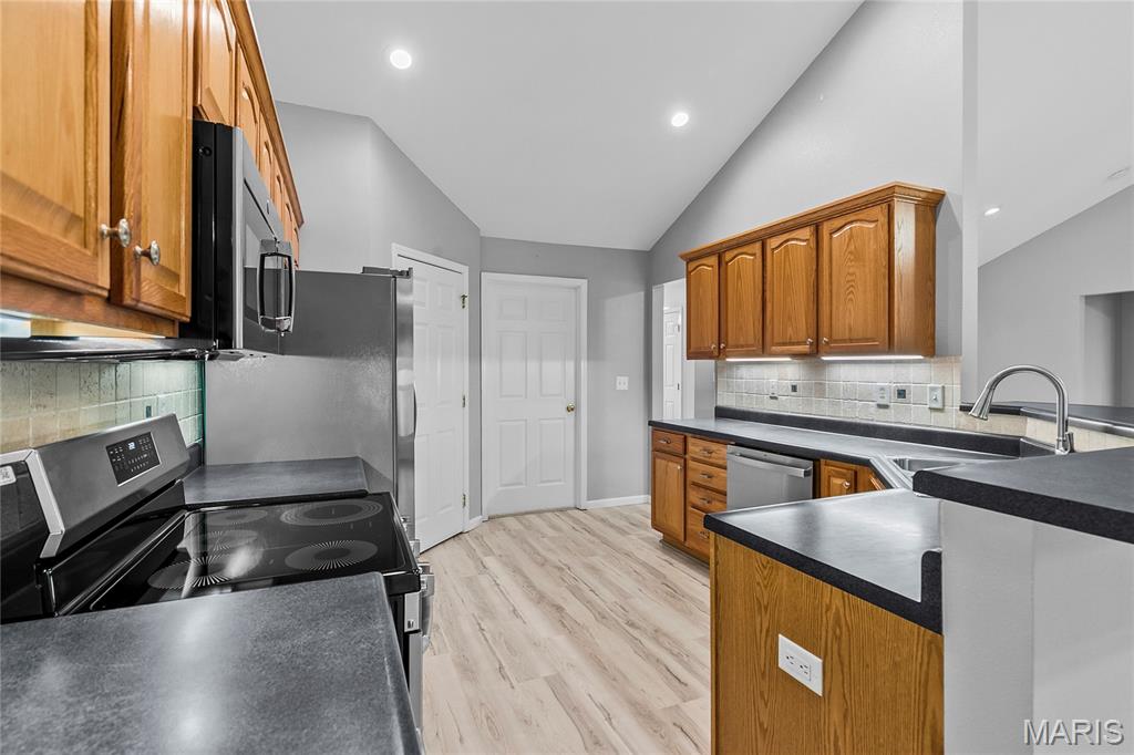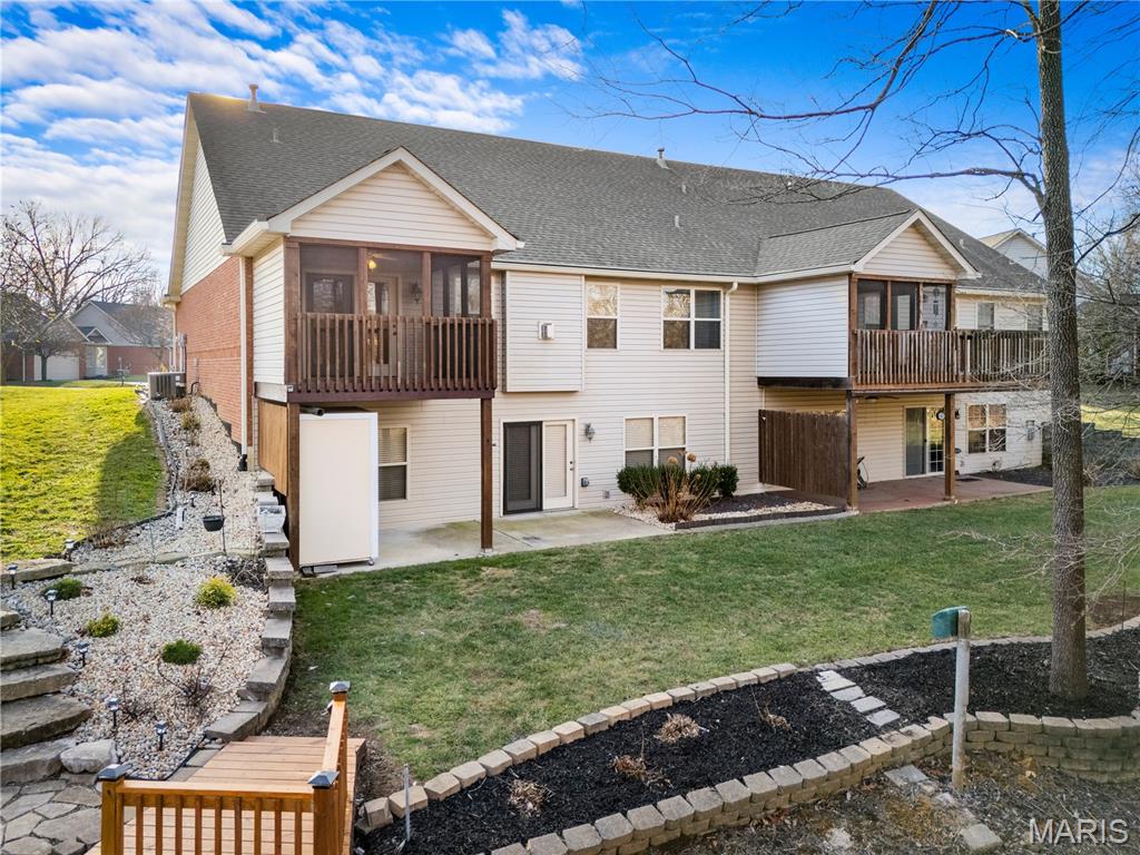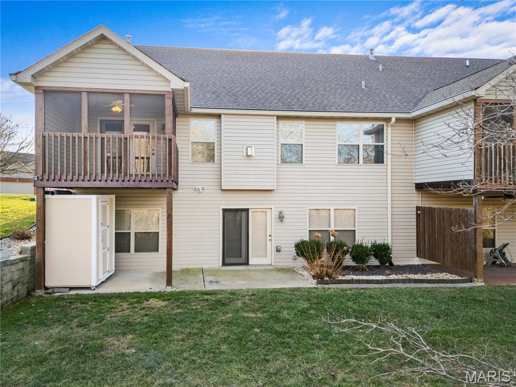 COMING SOON w/ Showings to begin this Friday! This beautiful END UNIT villa offers all of the things you will love about easy living! Situated in Turtle Creek Subdivision on a cul de sac lot w/ a wooded backdrop & convenient access to St. Louis, SAFB, shopping & highway systems. You will FALL IN LOVE the moment you enter the front door w/ a welcoming 2 story high entry which allows tons of natural light to flow in. The open floor plan provides a family room with gas fireplace, vaulted ceilings, sitting area, recessed lighting and new LVP flooring. The kitchen includes new stainless steel appliances, walk-in pantry, wood cabinetry, recessed lighting & breakfast bar offering the perfect space to entertain your family & friends. The main level also includes a Primary Suite with a walk in closet & full bathroom, a secondary bedroom (this is also an ideal office space), hall bathroom, first floor laundry with cabinets and direct access to the finished 2 car garage. The lower level walk out boasts extensive additional living space w/ a huge family room, bedroom with walk-in closet, bathroom, bonus room & mechanical space. You will love the exterior of this home which features a screened deck, large patio, rake cabinet and wooded park-like setting....the PERFECT spot to enjoy some peace and quiet with a good book or your morning coffee. Just a few of the major updates include: appliances (2025), repainted interior (2024), LVP flooring (2025), HVAC (2024), water heater (2023), whole house water filter (2024), stair case rebuild (2024), additional bonus room with LVP added to the lower level (2025), Chamberlain garage door opener( 2025), landscaping (2025), deck landing at wood entrance (2025), refinish bathroom vanities (2024), added attic insulation (2025), sealed the screened deck (2025), upgrades to primary closet, added recessed lighting on the main level and lower level, gas fireplace was serviced (2025), retaining wall (2023) and many miscellaneous items throughout. This home has already passed the Belleville occupancy! Gas is available for both dryer and stove if the Buyer would prefer gas to electric. HOA monthly fee of $220 mows and trims lawn, maintains front landscaping (owner takes care of side and rear), snow removal, roof replacement on a scheduled rotation, sprinkler system and entrance.