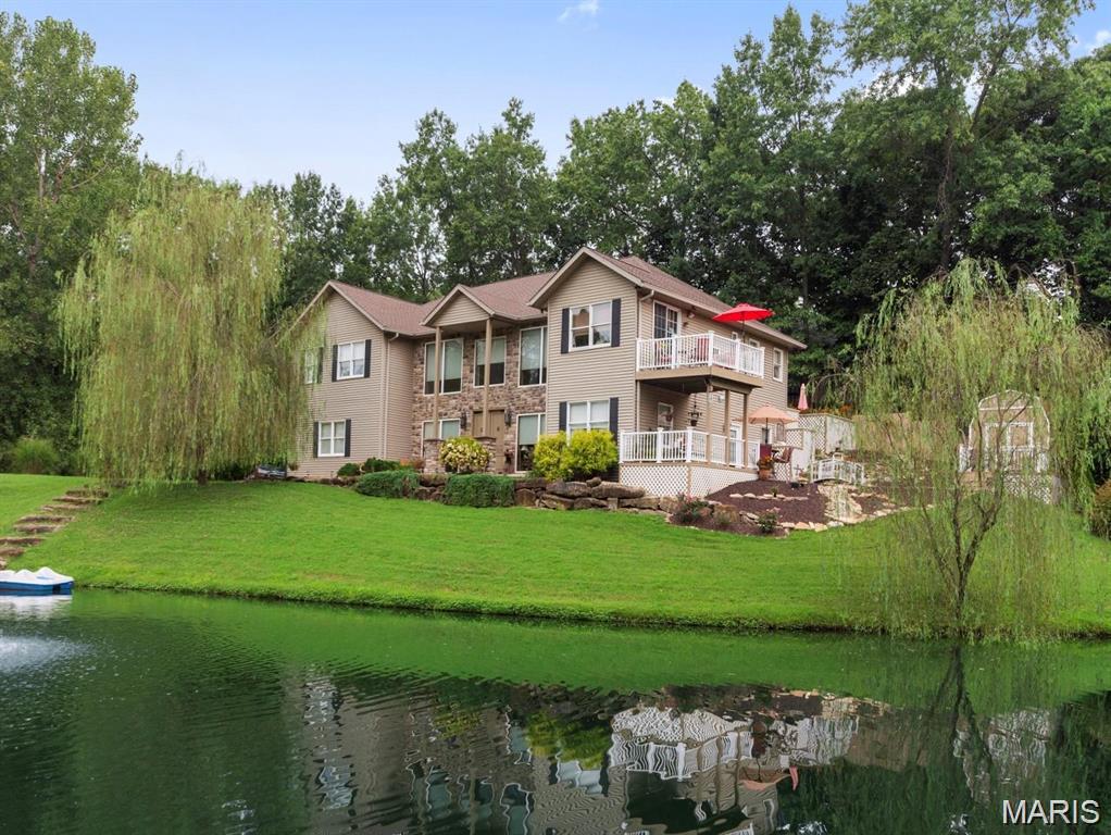 Three Bedroom Raised Ranch Style Home in Sunny Hill Lakes Subdivision with Walk Out Basement and Beautiful Secluded Setting, 1.23 Acre Lot with Stocked Private Lake, Hardwood and Ceramic Tile Flooring, Main Floor Includes 12 x 12 Dining Room, 14 x 12 Sitting Area with Balcony Access, 16 x 15 Kitchen with Staggered Maple Cabinetry, Stainless Steel Appliances Include Island Cooktop, Dishwasher, Double Wall Oven, Garbage Disposal and Refrigerator, Granite Counter Tops, 15 x 8 Adjacent Breakfast Area Walks Out to Back Concrete Patio, Master Bedroom Measures 16 x 15 and Includes Double Walk In Closets, 16 x 10 Private Master Bathroom with Tiled Walk In Shower and Garden Tub, 13 x 10 Second Bedroom Includes Private Bathroom and Walk In Closet, Two Story 27 x 16 Living Room Features Gas Fireplace and Spiral Staircase, 12 x 12 Media Room, 23 x 14 Recreation Room, Double Tier Decks Overlook Stocked Lake with Lighted Fountain Feature, 11 x 9 Main Floor Laundry Room, Wet Bar Area Includes Walk In Wine Cooler, Home Theater Area, Walking Distance to McKendree University and Historic Downtown Lebanon, O'Fallon School District, Expanded Three Car Garage, Tenant Responsible for Septic System and Pond Maintenance, Available Now.
