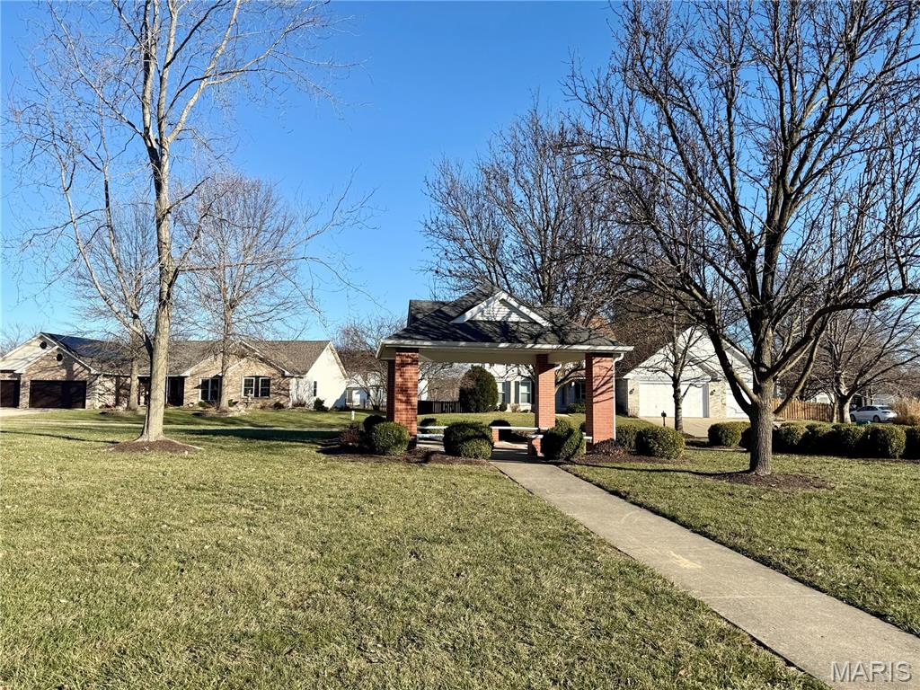 Well-cared for Ranch in ideal location with great curb-appeal! Common ground across the street with Gazebo. Fenced-in flat backyard with a few trees and patio. Open concept living right when you walk in. Formal dining room with coffered ceiling. Living room and kitchen has vaulted ceilings making the open space feel very large. White cabinets with center island and skylight. Split bedroom layout with main bedroom on one side of the house and other 3 bedrooms on the other side. Main bedroom has walk in closet. Main bathroom has soaker tub, dual vanities and walk-in shower. Other 3 bedrooms are nicely sized with full bathroom off of hallway with additional skylight. New roof and siding. Don't miss out on this hard-to-find Gem in an ideal OFallon neighborhood. Schedule a showing today!