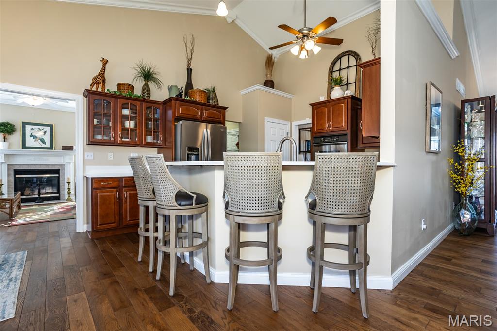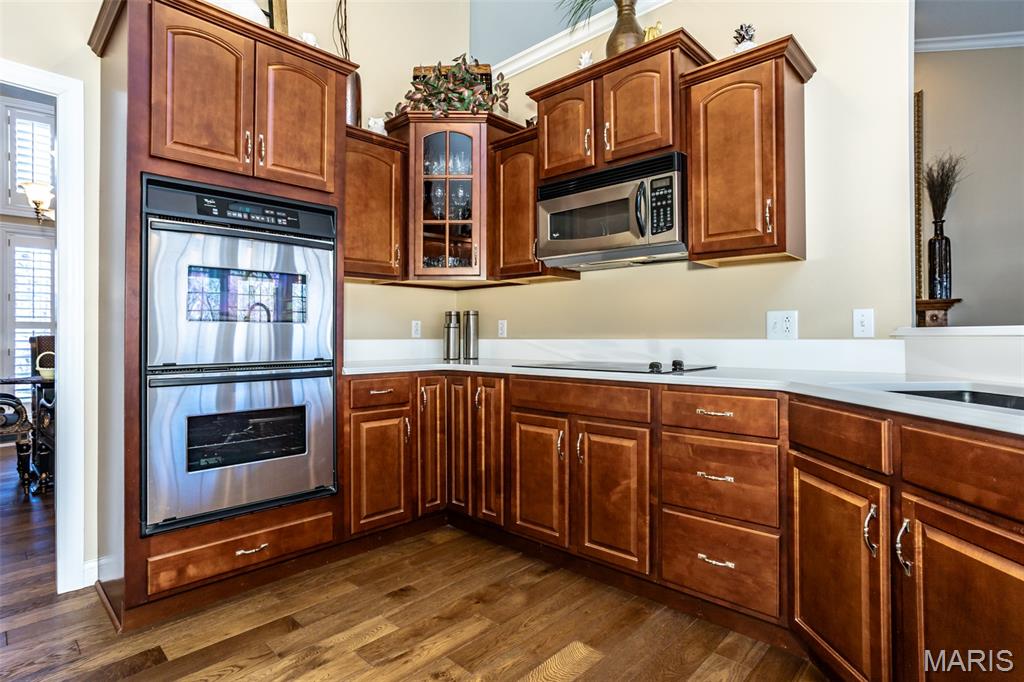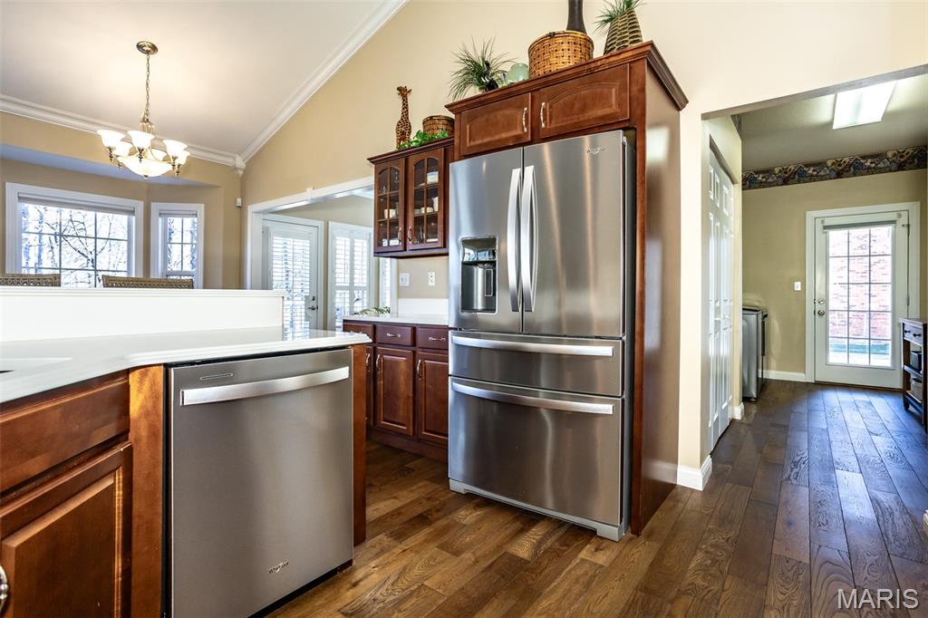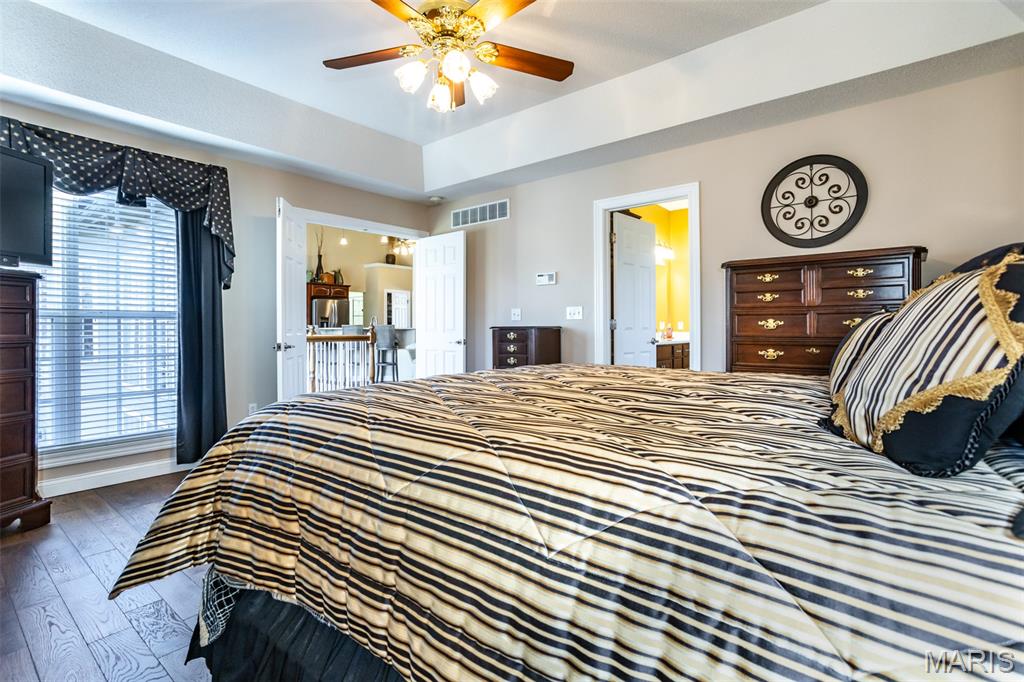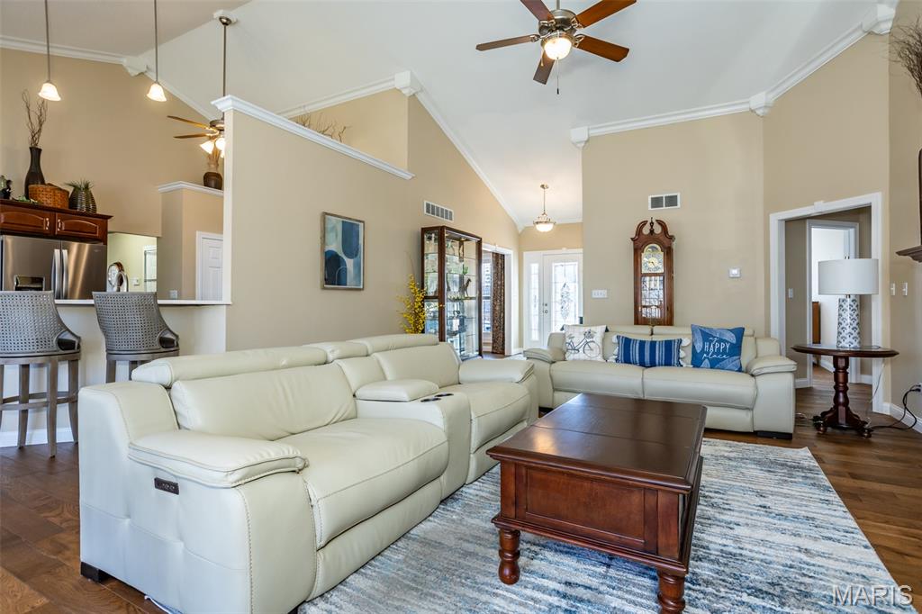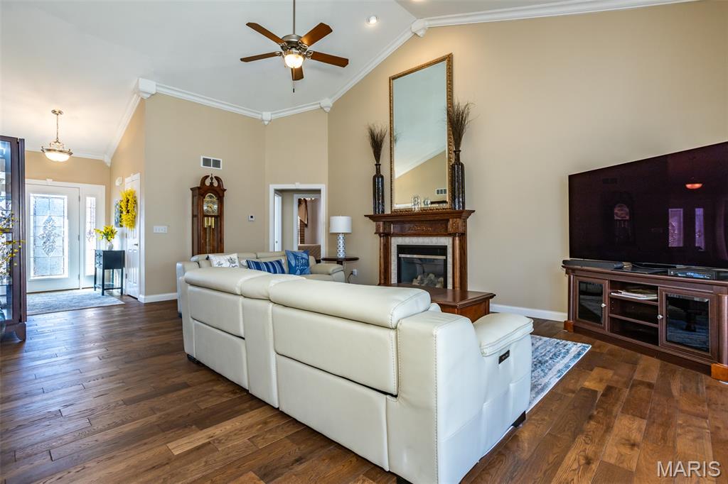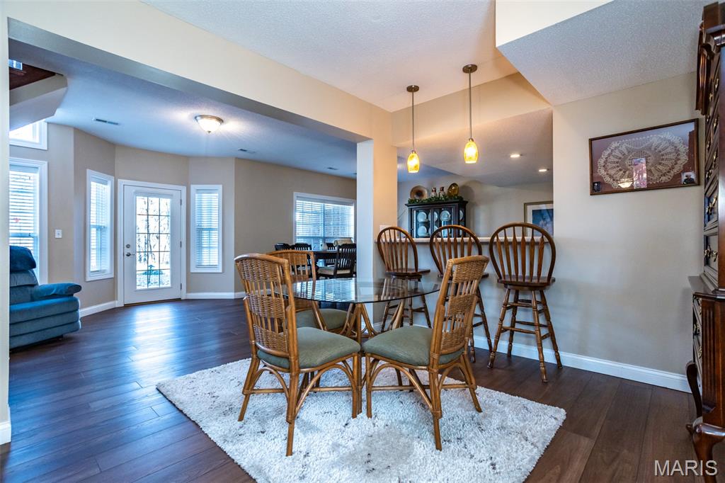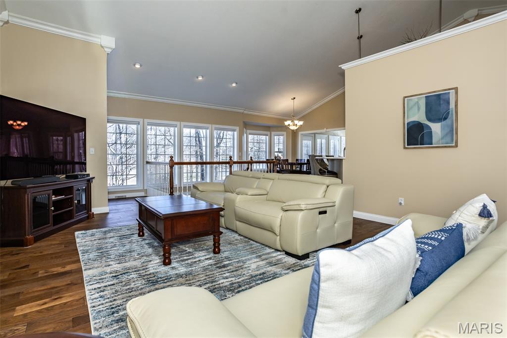 Step inside this gorgeous ranch-style home where thoughtful design, quality craftsmanship, and tasteful updates come together to create an exceptional living experience. Offering 4 spacious bedrooms and 3 full baths, this home is beautifully upgraded throughout and showcases stunning hardwood flooring that flows seamlessly across the main level. The inviting great room is anchored by a striking fireplace, creating a warm and welcoming focal point for everyday living and entertaining alike, while a separate dining area provides the perfect setting for hosting family gatherings or special occasions. Beautiful custom tiered cabinetry adorns the kitchen along with SS appliances that include a double oven, microwave, refrigerator & a cook-top electric stove. A versatile hearth room adds even more flexibility—ideal for a home office, reading retreat, or relaxing space filled with natural light. The well-designed light & bright split-bedroom floor plan ensures privacy, with the primary suite tucked away as a true retreat featuring a luxurious en-suite bath complete with a walk-in shower & separate tub designed for comfort and relaxation. A convenient main-floor laundry enhances everyday ease and functionality. The impressive walkout lower level significantly expands the living space, boasting a large wet bar area with a refrigerator, dishwasher & microwave, as well as an expansive recreation space. The family room boasts a gas fireplace—perfect for entertaining, movie nights, or hosting guests. Step outside onto the composite deck overlooking the lush, professionally landscaped yard, where a wonderful backyard offers privacy and serenity. Or, enjoy the patio of the backyard while overlooking a wooded backdrop that opens toward a soon-to-be-completed pond, a tranquil view & setting for years to come. This home effortlessly blends elegance, comfort, and lifestyle appeal, making it a truly special opportunity not to be missed. Call your favorite realtor today to schedule a tour!