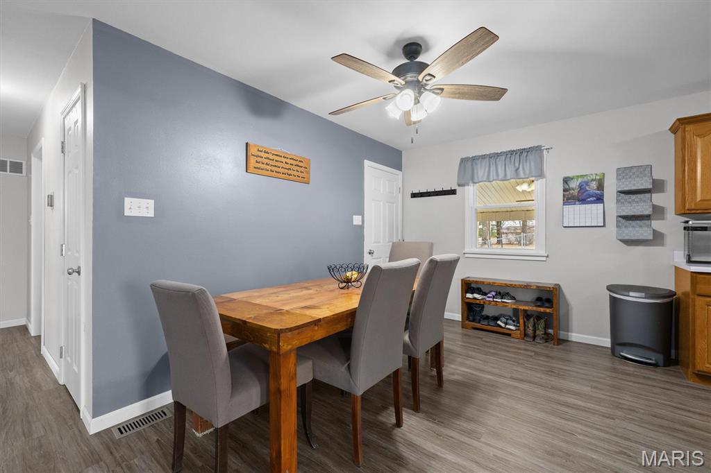 Welcome home to this well-maintained 3-bedroom, 2-bath ranch offering comfortable one-level living with added space to spread out. The partially finished basement provides a versatile area ideal for a family room, home office, or hobby space, along with a dedicated laundry room and ample storage. Enjoy outdoor living under the covered patio added in 2017—perfect for relaxing or entertaining. large backyard for playing or for pets, shed and playset will stay. A convenient carport offers sheltered parking and easy access to the home. Recent updates include a newer front door, new sidewalk, and fresh landscaping, creating a welcoming main entrance (previously accessed only through the carport). Situated on a quiet street, this home features a functional layout, flexible living spaces, and plenty of potential to make it your own. Inspections are welcome, seller to do no repairs with exception of loan predications.