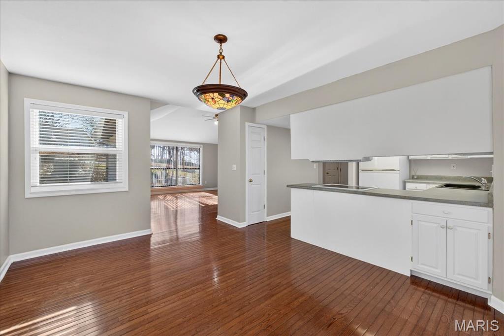 Nestled on a beautifully wooded .66-acre lot, this home offers peaceful privacy, scenic views, and the feeling of being surrounded by nature. The natural landscape creates a serene setting that can be enjoyed year-round from the expansive new deck or through the home’s many windows. This charming home features a brand new roof, ensuring years of worry-free living. Step inside to a bright, open-concept living space ideal for entertaining or relaxing in style. Great room with soaring vaulted ceiling, wood burning stone fireplace, and skylights that let in a natural light and hardwood floors. The well designed eat-in kitchen offers all appliances that are included, a breakfast bar, pantry & adjoining dining room with a bay window opens to the new wood deck—perfect for entertaining or relaxing in the natural setting. Open staircase leads you to the upper level where you will have an open feel as you can see into the great room. Spacious Primary suite offers a private escape with plenty of room to unwind w/vaulted ceiling, walk-in closet & full bath. The finished walkout basement offers even more living space—ideal for gatherings—with direct access to the outdoors. It also includes a laundry room (washer and dryer stay!) dedicated office area, rough-in for a future bathroom and patio doors that lead to the private backyard. Recent updates include a brand-new roof, a spacious new deck, and block retaining wall. Quick access to I-255 for an easy commute to St. Louis or Scott AFB. If you're looking for comfort, privacy, and natural beauty in a friendly neighborhood, then don’t miss the chance to own this beautiful blend of comfort, privacy, and convenience!