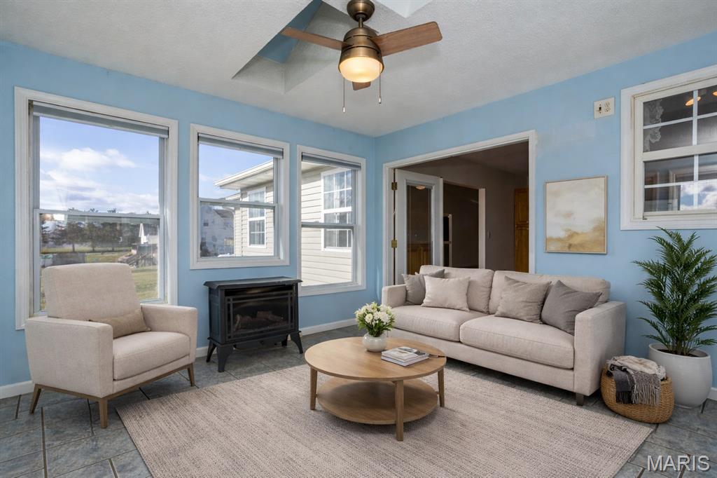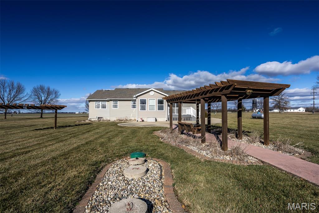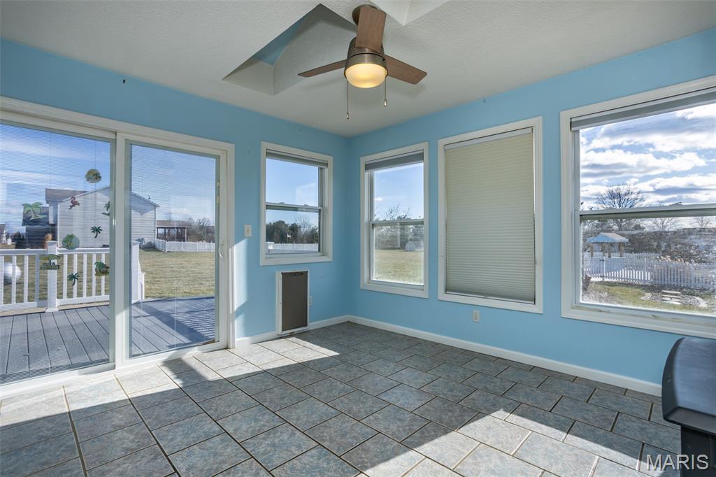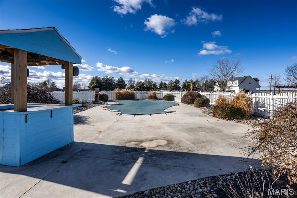 Nestled on a picturesque 2-acre setting in the peaceful community of Moro, Illinois, this beautifully ranch-style home offers the perfect blend of comfort, functionality, and outdoor enjoyment. Featuring 3 bedrooms and 3 full baths, the home welcomes you with a thoughtfully designed layout enhanced by stylish luxury vinyl plank flooring throughout much of the main living space. A bright and inviting sunroom serves as a true retreat, highlighted by a cozy freestanding fireplace—ideal for relaxing year-round while enjoying views of the surrounding property. The spacious primary suite offers privacy and comfort, complete with a walk-in closet and an updated en-suite bath showcasing a modern walk-in shower. The lower level expands the living space with a large family room, three additional rooms that can be customized to suit your needs—home office, fitness room, or hobby space—along with a full bath and abundant storage. Step outside to your own private oasis where an inground pool is enclosed by a vinyl fence and surrounded by a composite deck (2024), patio, and walkway leading to the pool, creating the perfect space for entertaining or unwinding on warm summer days. Additional outdoor amenities include a charming cabana, covered swing, and shed, providing both enjoyment and storage. Practical updates bring peace of mind, including HVAC (2022), hot water heater (2022), and roof (2019). The property includes a 2-car garage equipped with a heating unit, making it functional year-round. This well-maintained home offers country-like tranquility with nice updates—an exceptional opportunity to enjoy space, privacy, and lifestyle all in one remarkable property.